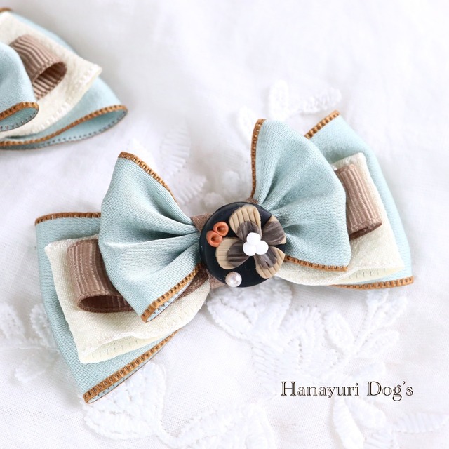 フレンチシック ブルーグレー 犬バレッタ キッズ・子供リボン ペット ぬいぐるみ ヘアアクセサリー 髪飾り 誕生日 記念日 プレゼント オフ会 うちの子記念日 イベント 撮影