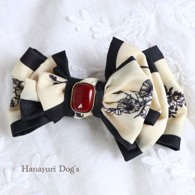 昭和レトロファッション スカーフリボン 花柄 犬バレッタ キッズ・子供リボン ペット ぬいぐるみ ヘアアクセサリー 髪飾り 誕生日 記念日 プレゼント オフ会 うちの子記念日 イベント 撮影