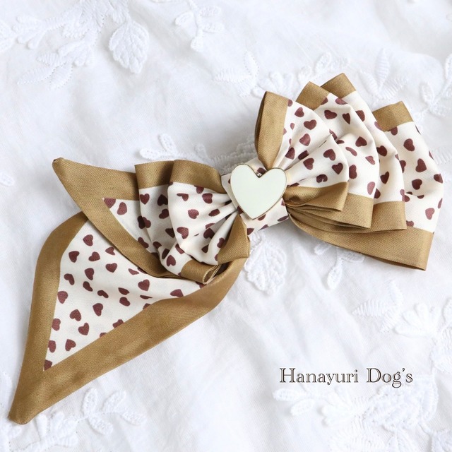 昭和レトロファッション スカーフリボン 花柄 ハート 犬バレッタ キッズ・子供リボン ペット ぬいぐるみ ヘアアクセサリー 髪飾り 誕生日 記念日 プレゼント オフ会 うちの子記念日 イベント 撮影