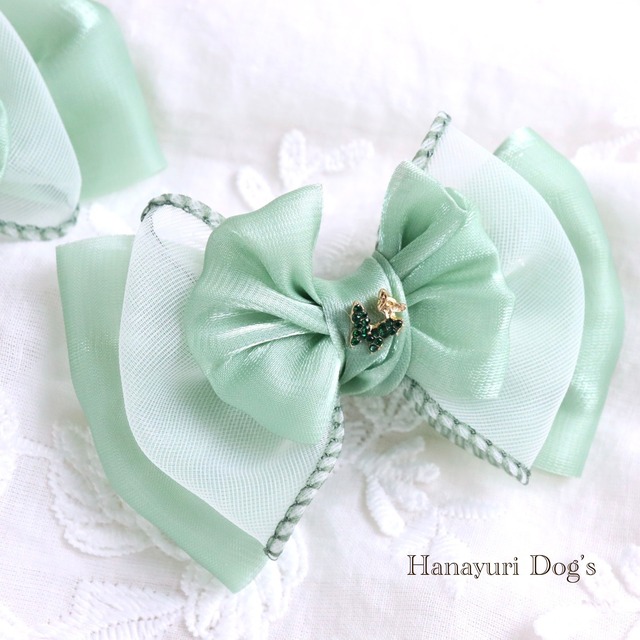グリーングラデーション 蝶ビジュー 犬バレッタ キッズ・子供リボン ペット ぬいぐるみ ヘアアクセサリー 髪飾り 誕生日 記念日 プレゼント オフ会 うちの子記念日 イベント 撮影