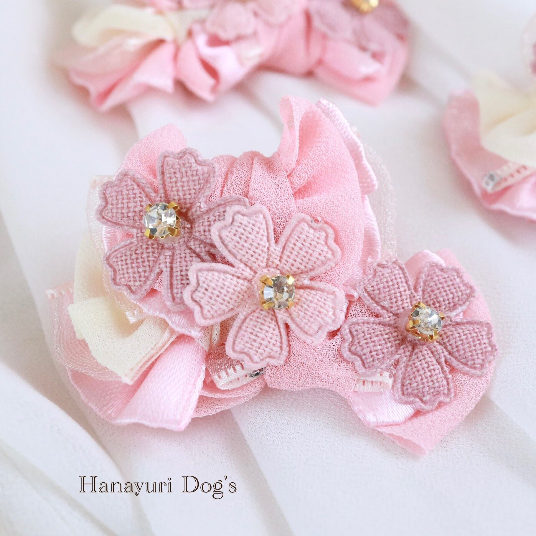 サテンとオーガンジー ピンクの花 No,5 犬バレッタ キッズ・子供リボン 猫 ペット ヘアアクセサリー 髪飾り 普段着 うちの子記念日 誕生日 プレゼント オフ会 撮影 | Hanayuri Dog’s