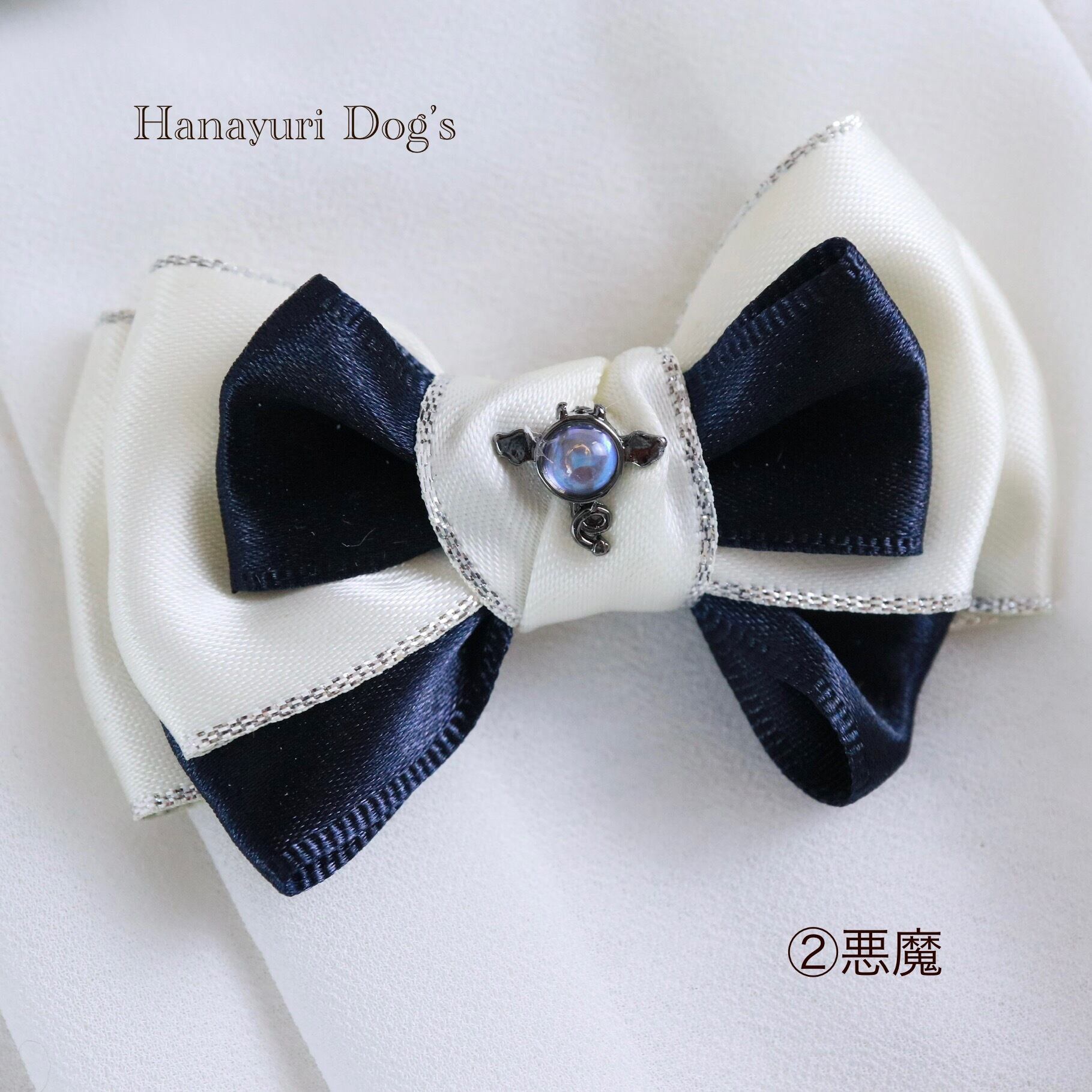 ホワイトとネイビーの優等生のような色の組み合わせに、天使と悪魔のユーモラスなビジュー。