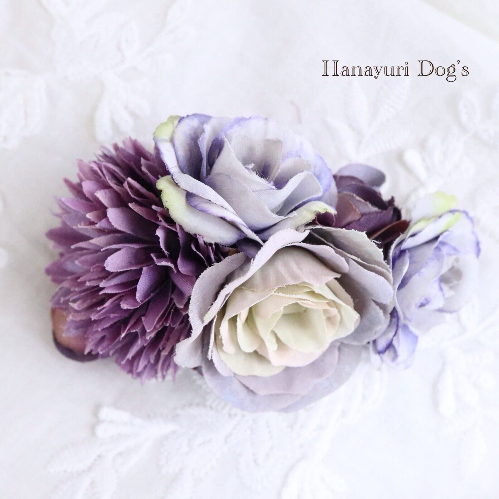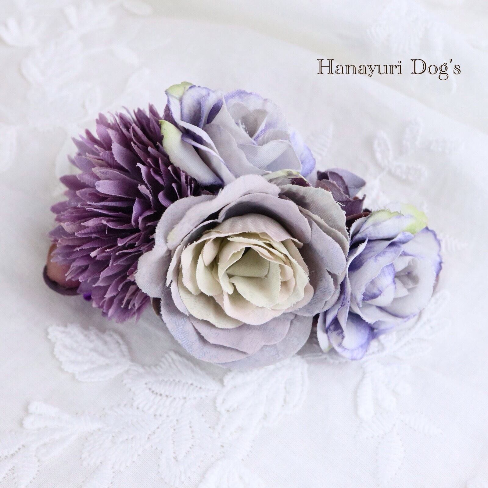 クラシカルパープルグラデーション(小)花飾り 犬バレッタ キッズ・子供リボン 猫 ペット ヘアアクセサリー 髪飾り 普段着 うちの子記念日 誕生日 プレゼント オフ会 撮影 | Hanayuri Dog’s