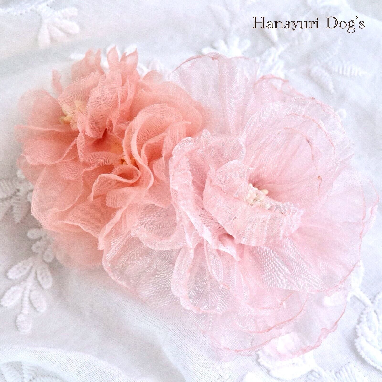 淡い2色のピンクが愛らしい花の髪飾りです。