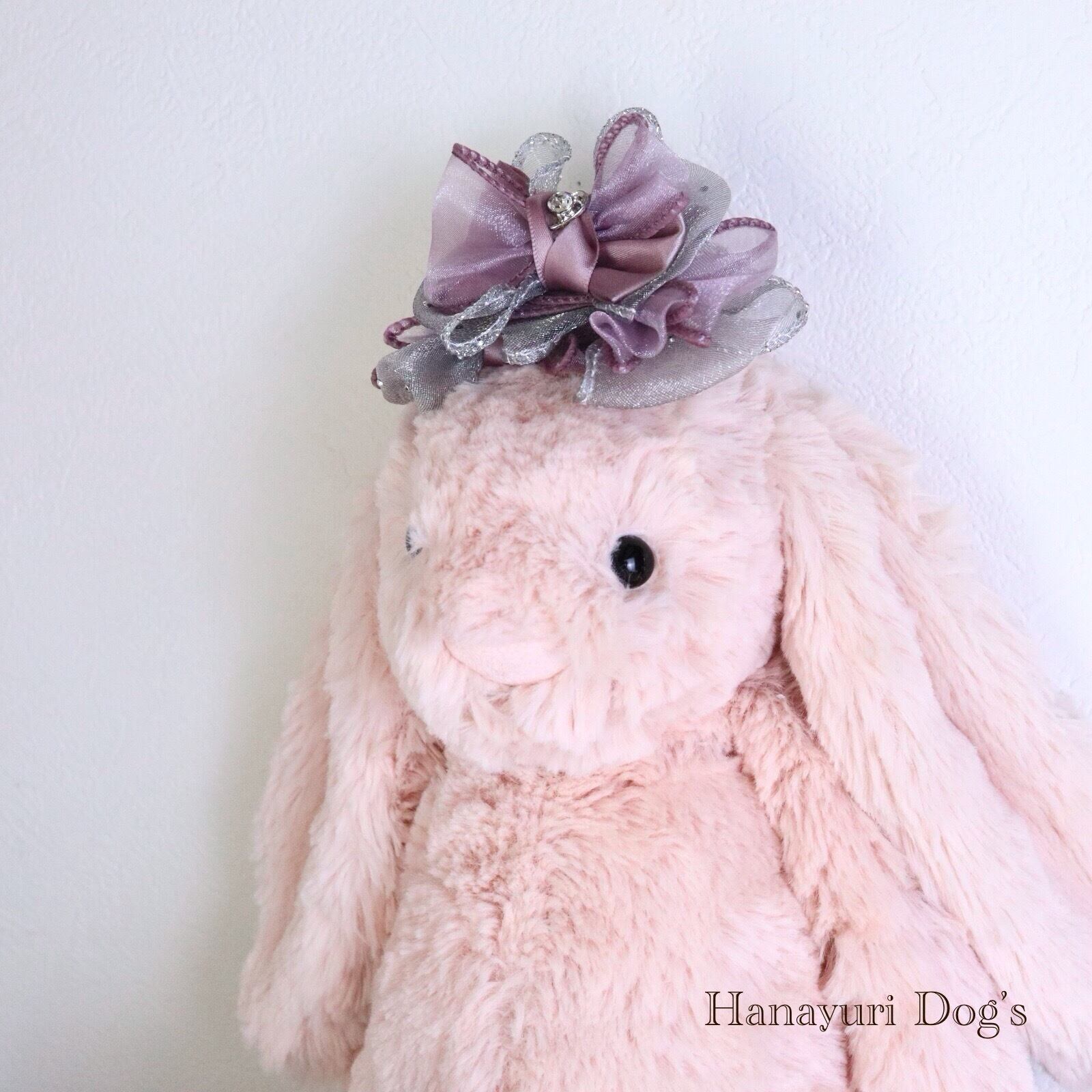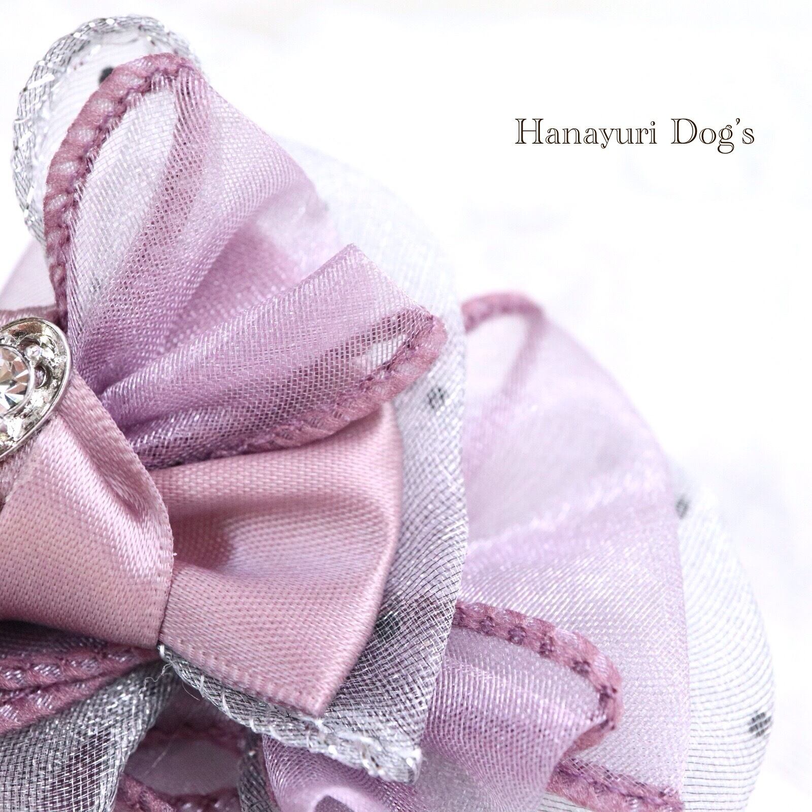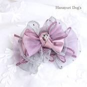 紫×シルバーグレー ラインストーン ハートビジュー 犬バレッタ キッズ・子供リボン 猫 ペット ヘアアクセサリー 髪飾り 普段着 うちの子記念日 誕生日 プレゼント オフ会 撮影 | Hanayuri Dog’s