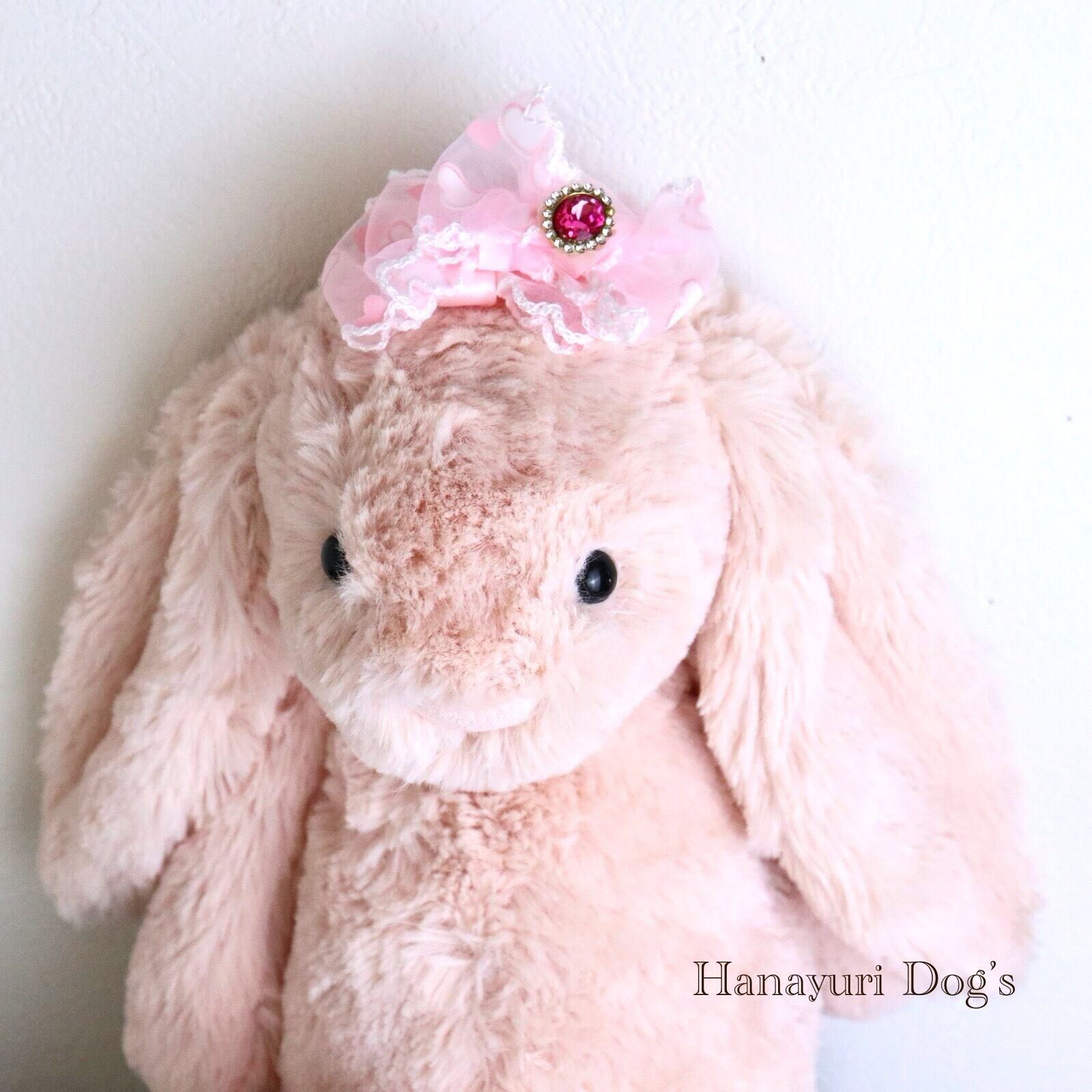 クリーミーピンク ハートのチュール 全2種類1P 犬バレッタ キッズ・子供リボン 猫 ペット ヘアアクセサリー 髪飾り 普段着 うちの子記念日 誕生日 プレゼント オフ会 撮影 | Hanayuri Dog’s