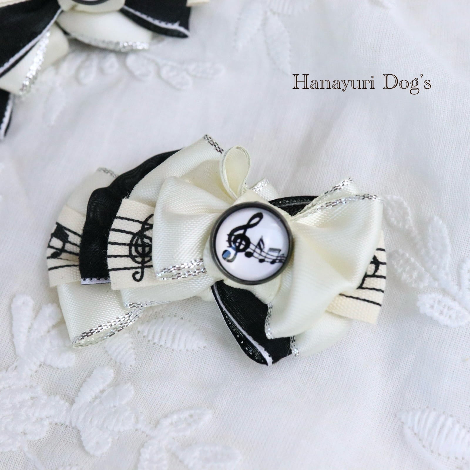 サテンとオーガンジーと五線譜リボンを合わせたバレッタリボンです。