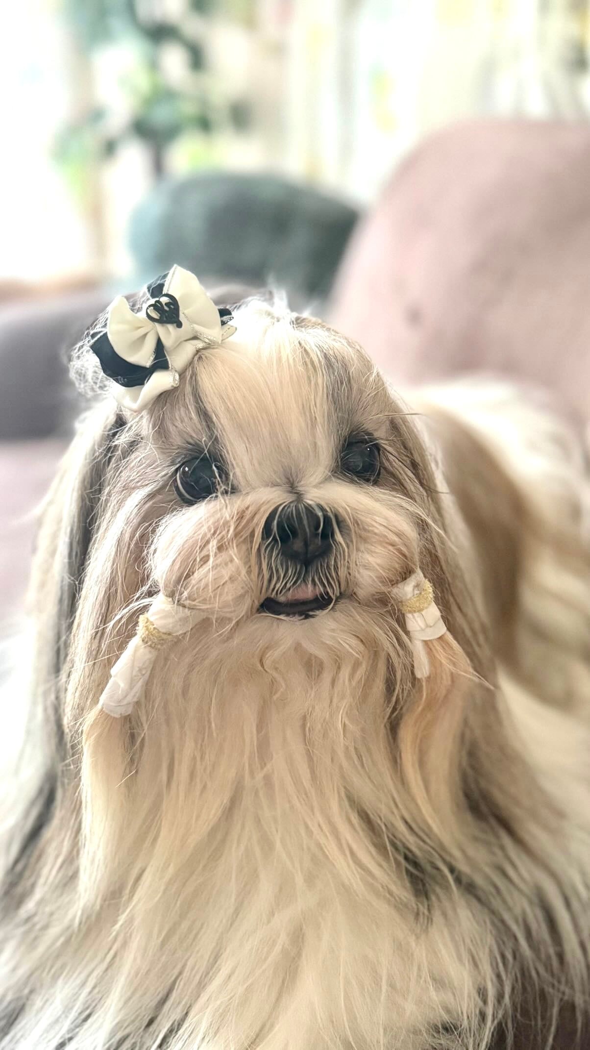 仕様バレッタ:特許取得の日本製、毛が絡まりづらく取り外しの際痛くない、わんこのプルプルにも耐えるしっかり固定、安心プラスチックバレッタを使用しています。