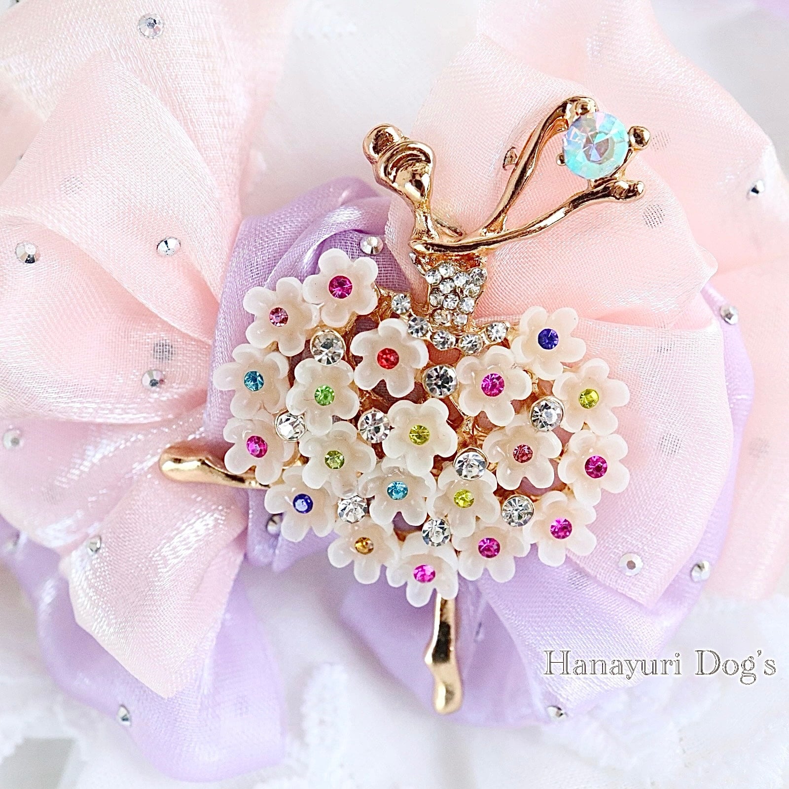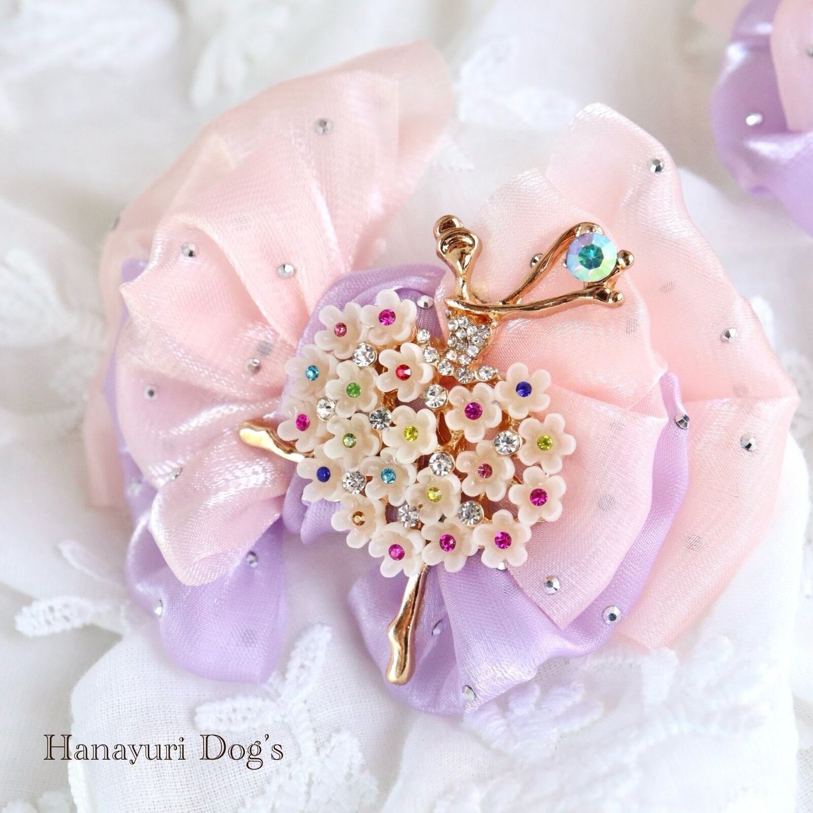 バレリーナ ラインストーンオーガンジー ピンク×紫 カラフル 犬バレッタ キッズ・子供リボン 猫 ペット ヘアアクセサリー 髪飾り 普段着 うちの子記念日 誕生日 プレゼント オフ会 撮影 | Hanayuri Dog’s