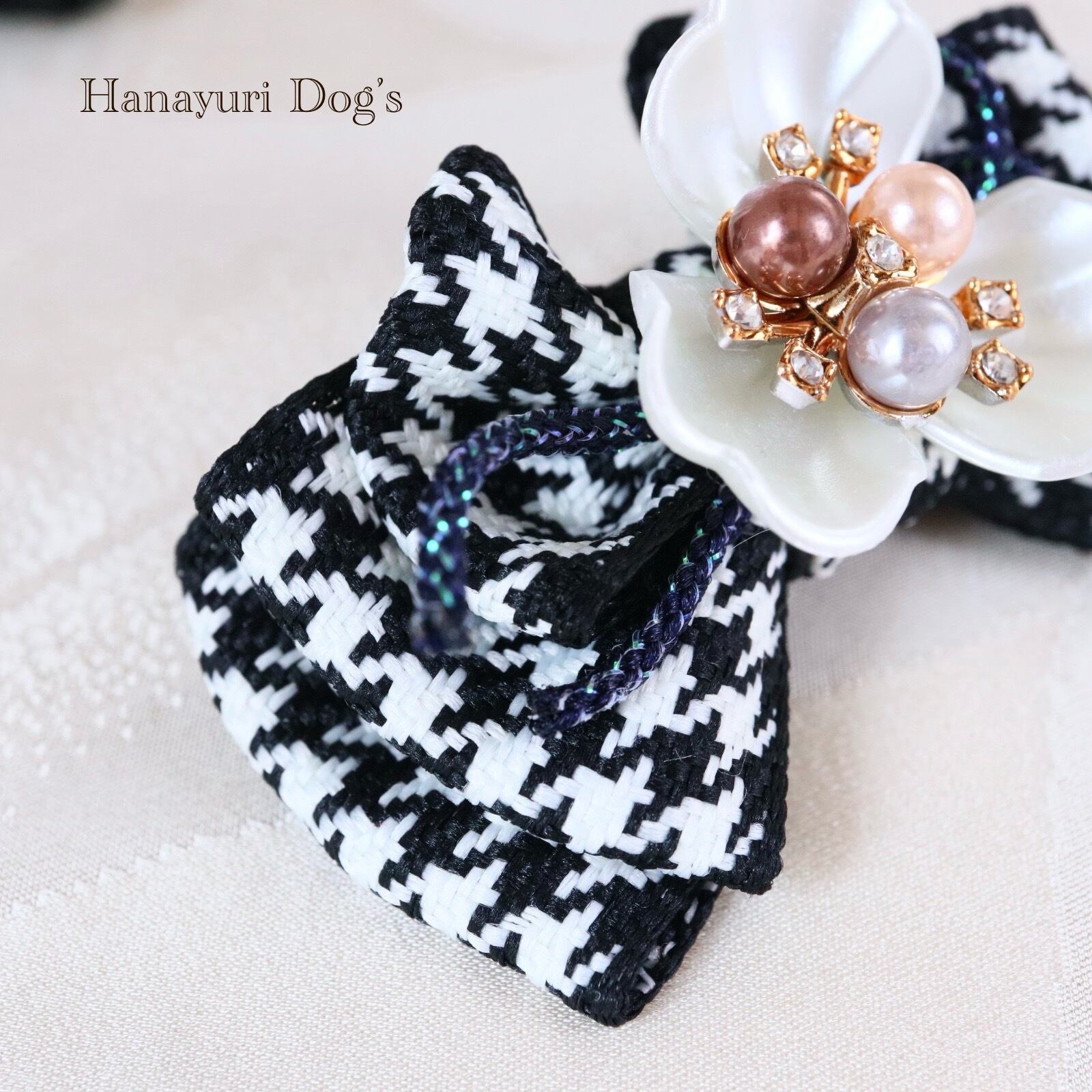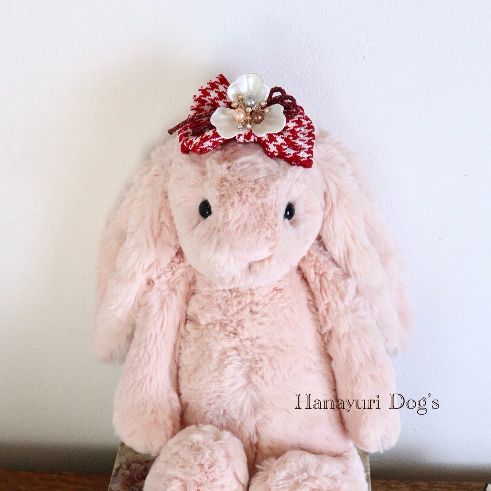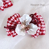 千鳥格子 ブラックまたはレッド1P パールビジュー 和風 七五三 古典 犬バレッタ キッズ・子供リボン 猫 ペット イベント パーティー 撮影 ヘアアクセサリー 髪飾り | Hanayuri Dog’s