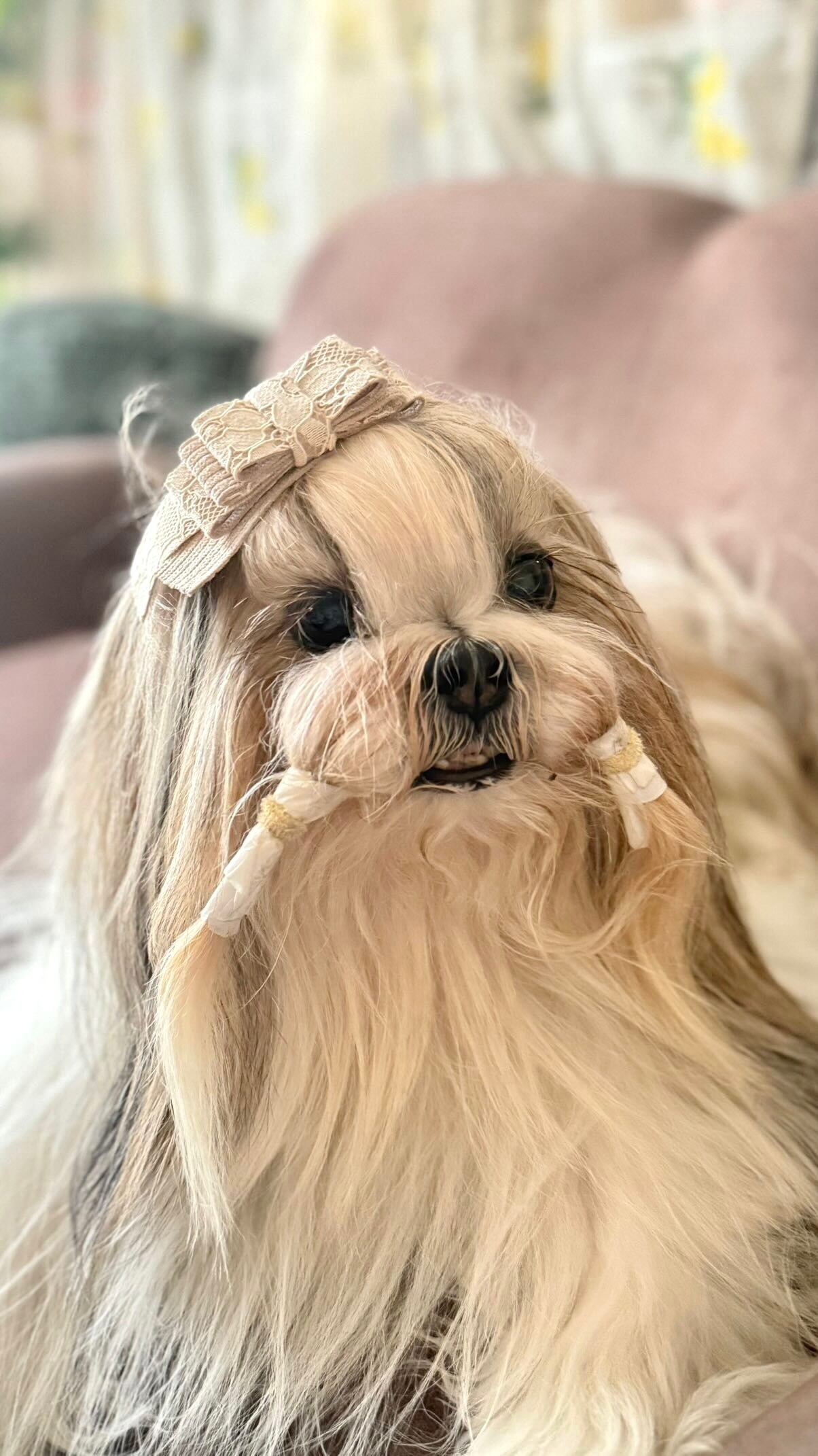 毛色が白の子にはよく馴染み、黒色の子はベージュが際立ち、茶色の子にはホワイト味に。