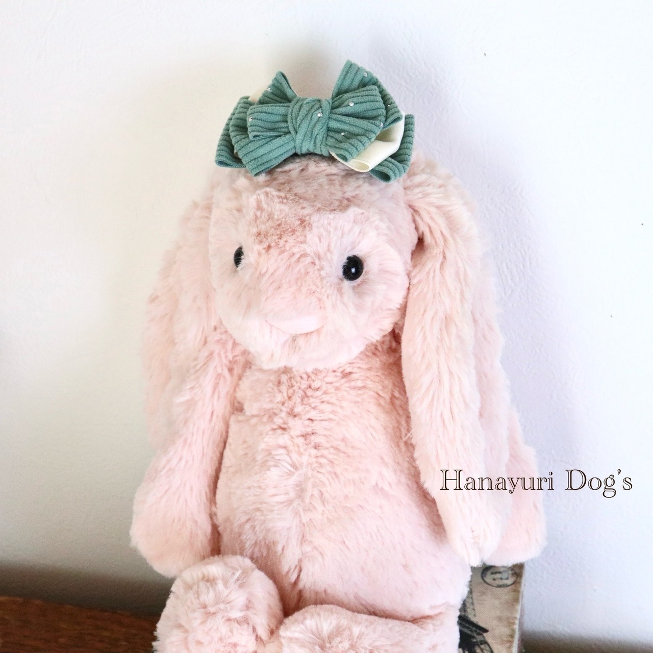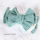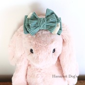 コーデュロイ セージグリーン ラインストーン 犬バレッタ キッズ・子供リボン 猫 ペット ヘアアクセサリー 髪飾り 普段着 うちの子記念日 誕生日 プレゼント オフ会 撮影 | Hanayuri Dog’s