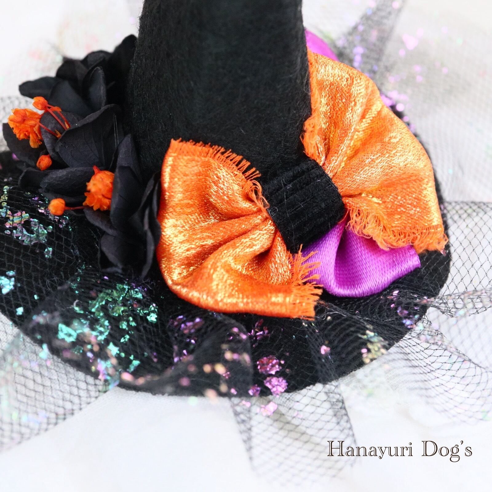 ハロウィン 魔女の帽子ブラックチュール ミニ帽子 仮装 プリザーブドフラワー 犬バレッタ キッズ・子供リボン 猫 ペット イベント 撮影 パーティー ヘアアクセサリー 髪飾り | Hanayuri Dog’s
