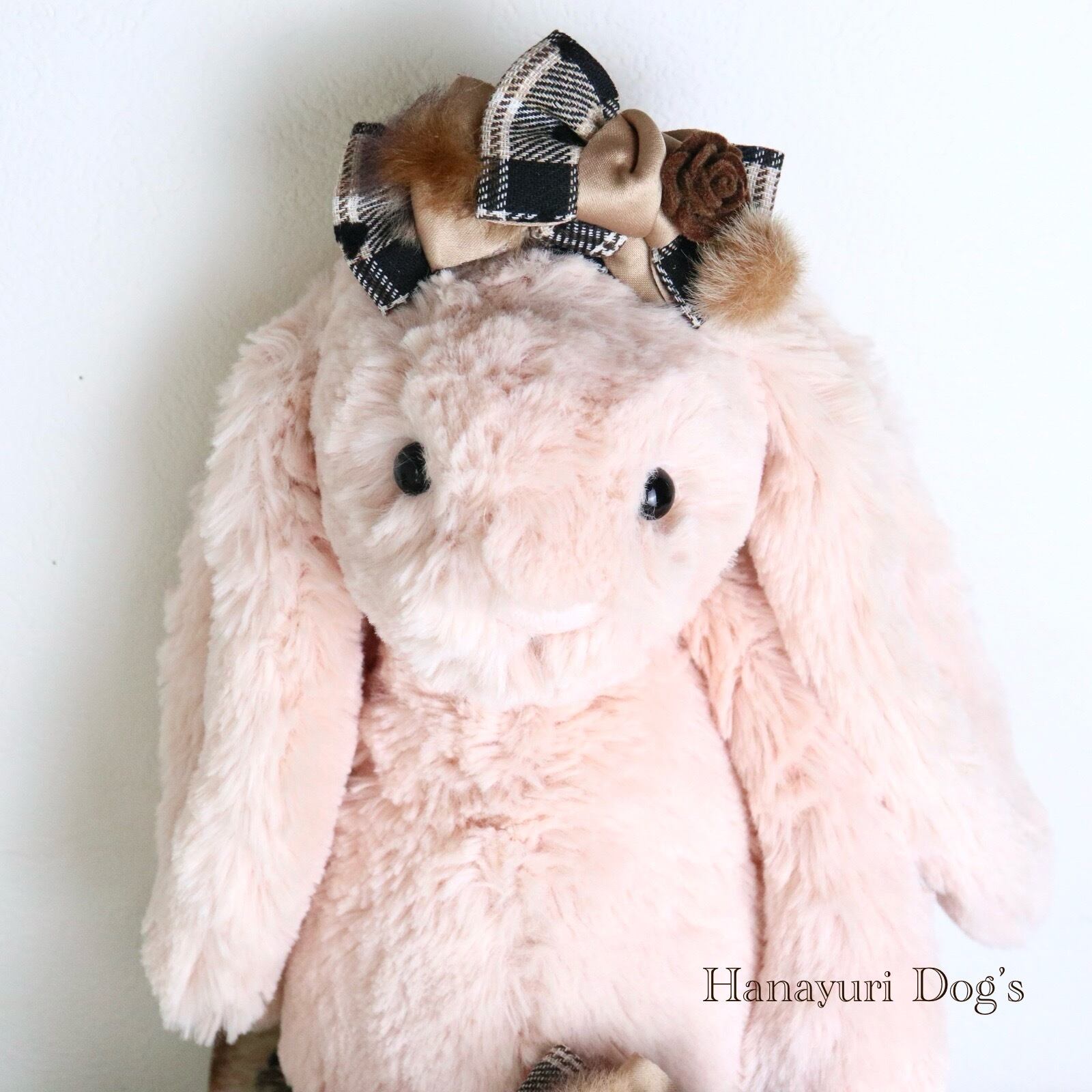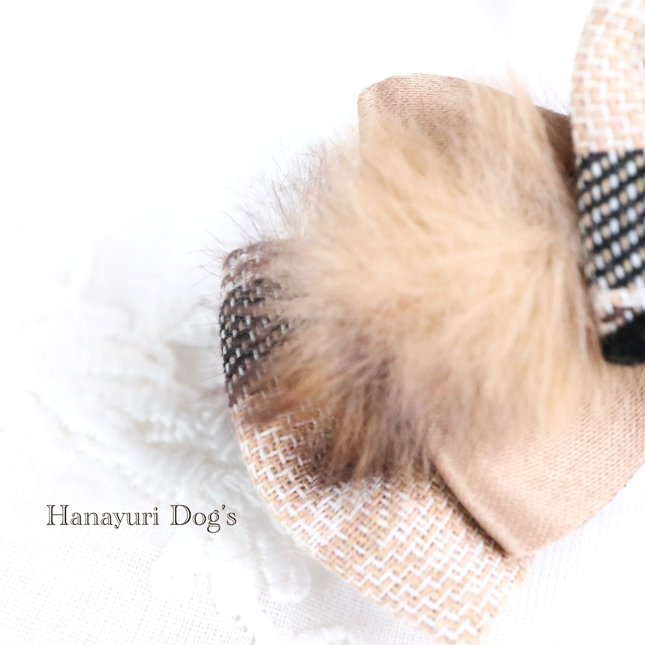 チェックとハート ブラウンローズポンポン 秋冬トレンド 犬バレッタ キッズ・子供リボン 猫 ペット ヘアアクセサリー 髪飾り 普段着 うちの子記念日 誕生日 プレゼント オフ会 撮影 | Hanayuri Dog’s