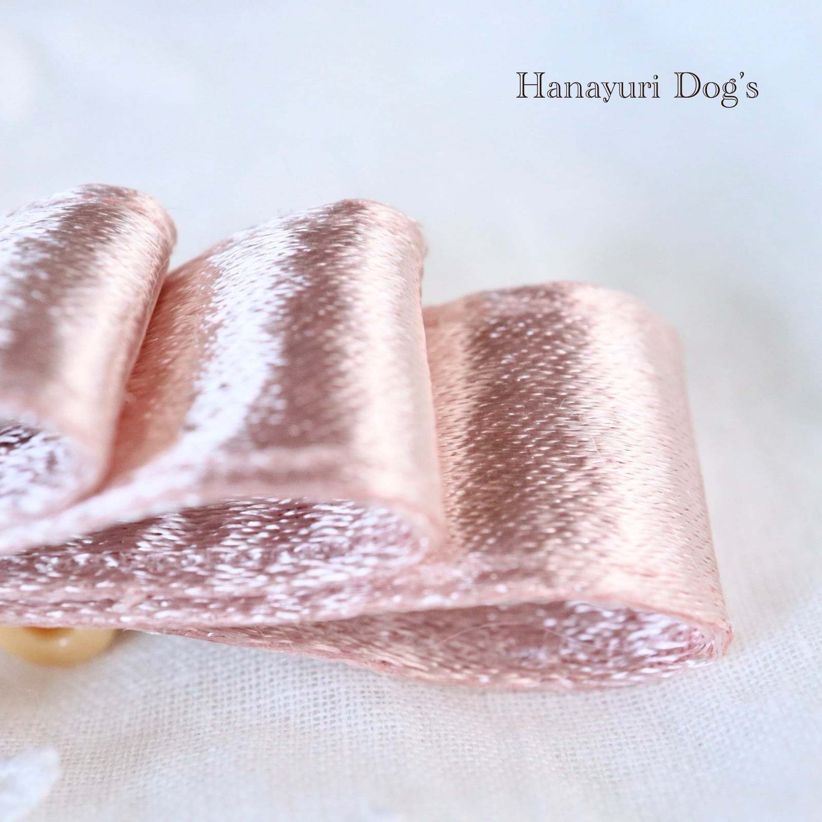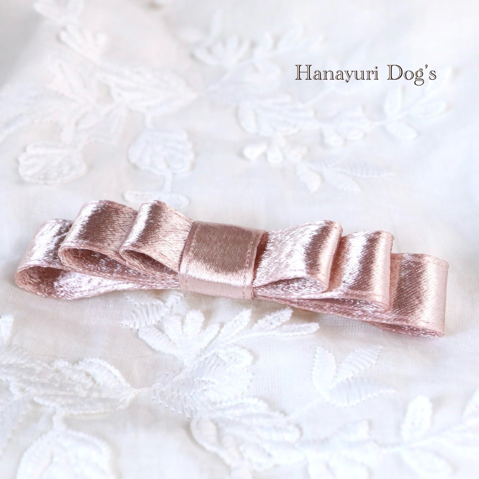 優しいピンクにメタリックな輝きが個性を感じるバレッタリボンです。