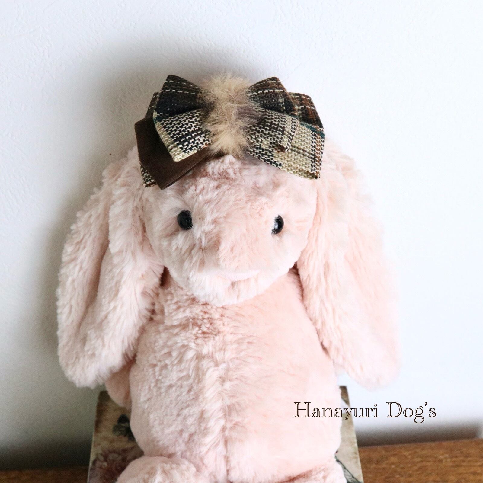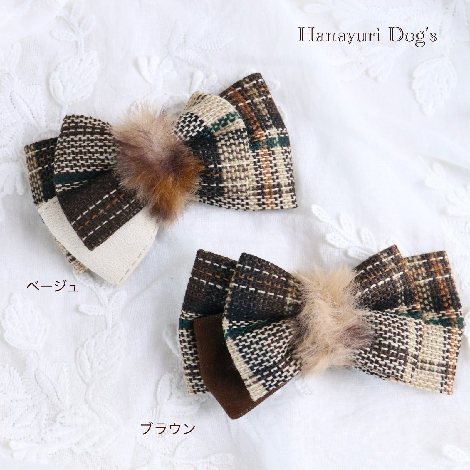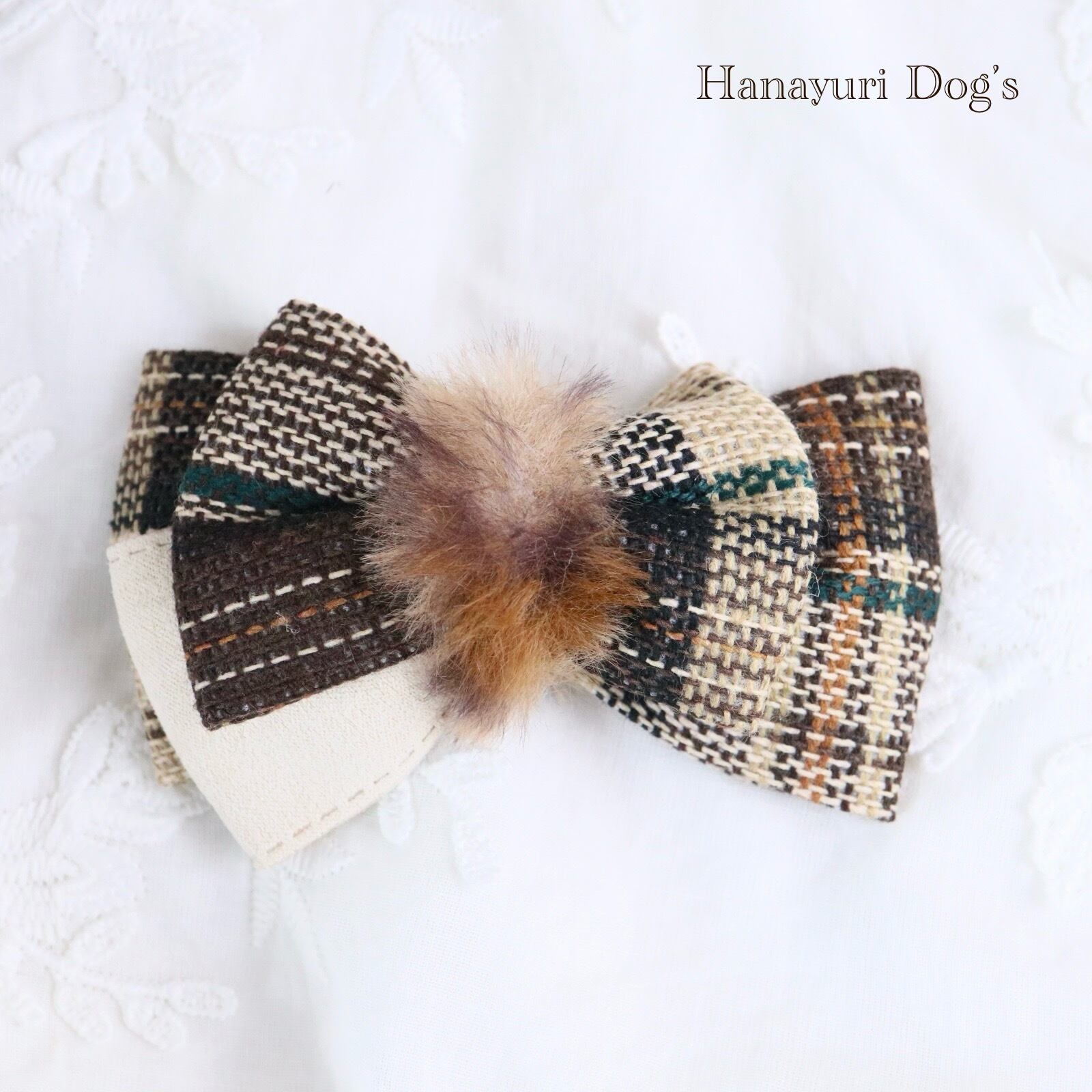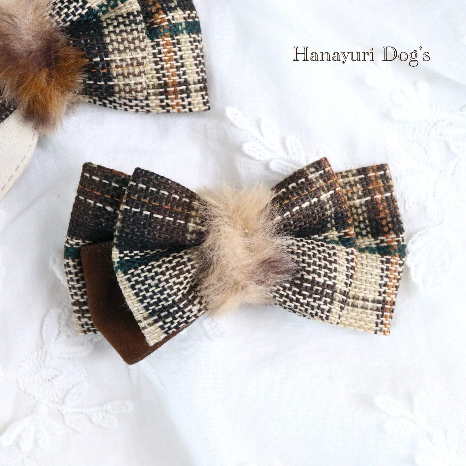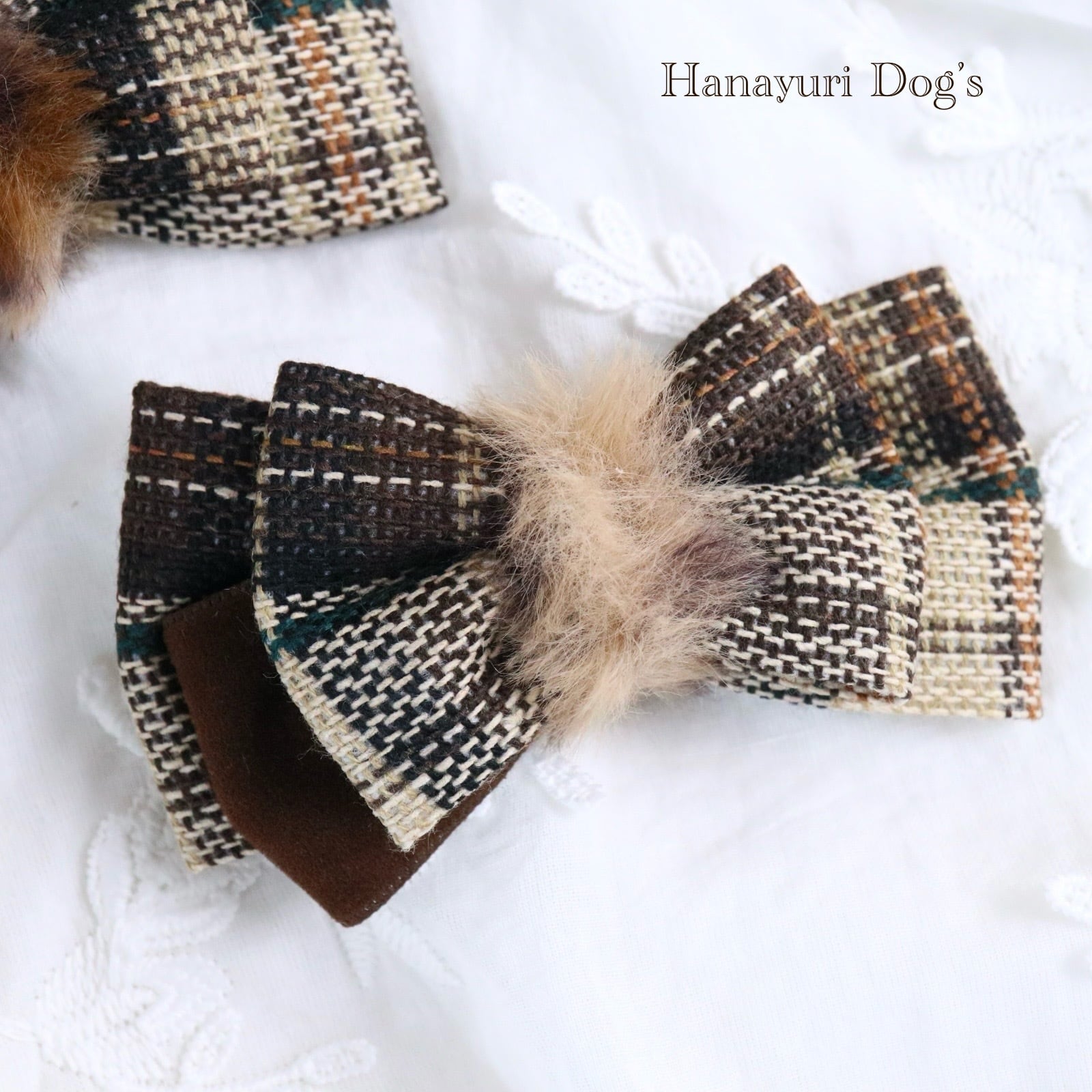 スコティッシュチェック大 2種1P 異素材 秋冬トレンド スエード ベルベット ファー 犬バレッタ キッズ・子供リボン 猫 ペット ヘアアクセサリー 髪飾り 普段着 うちの子記念日 誕生日 プレゼント オフ会 撮影 | Hanayuri Dog’s