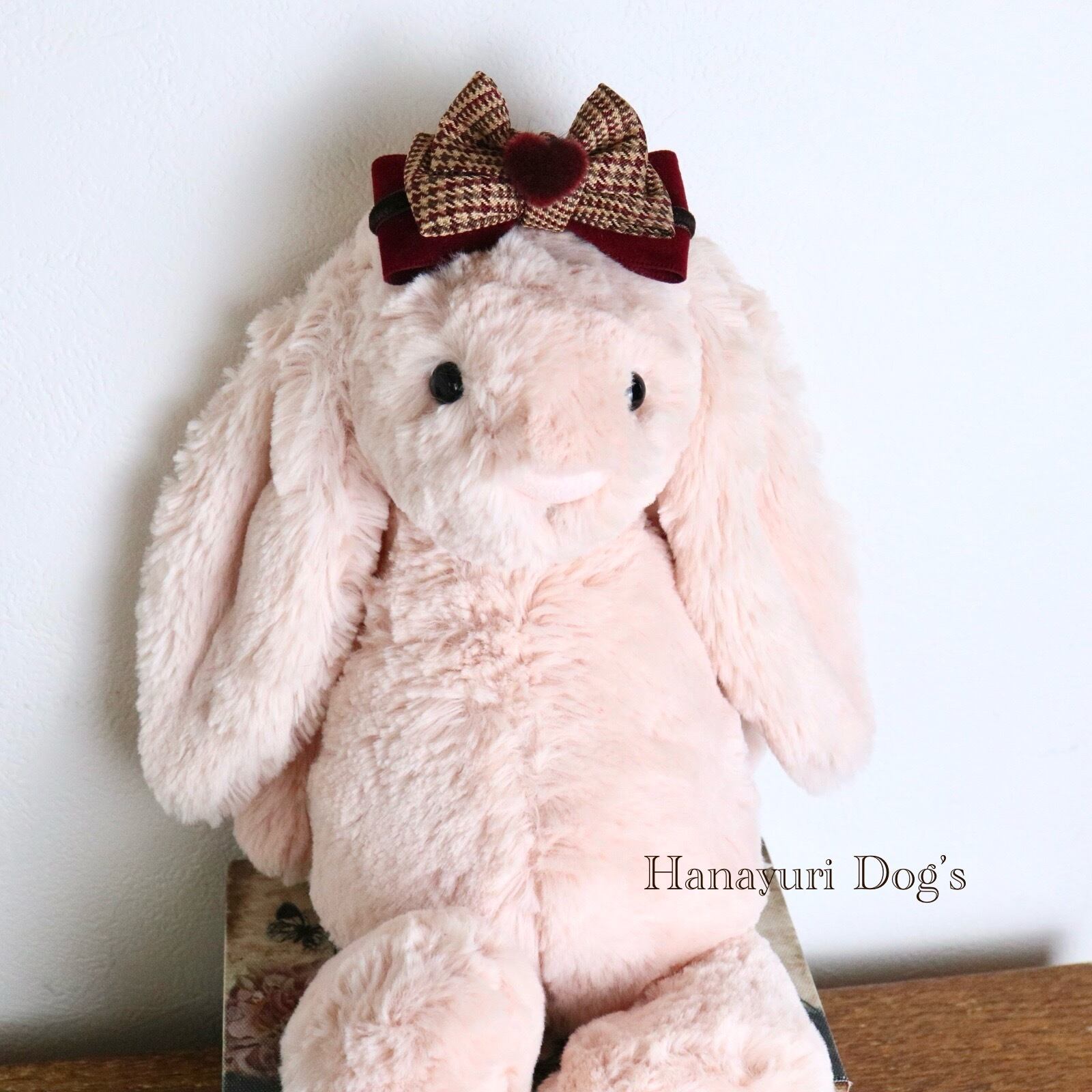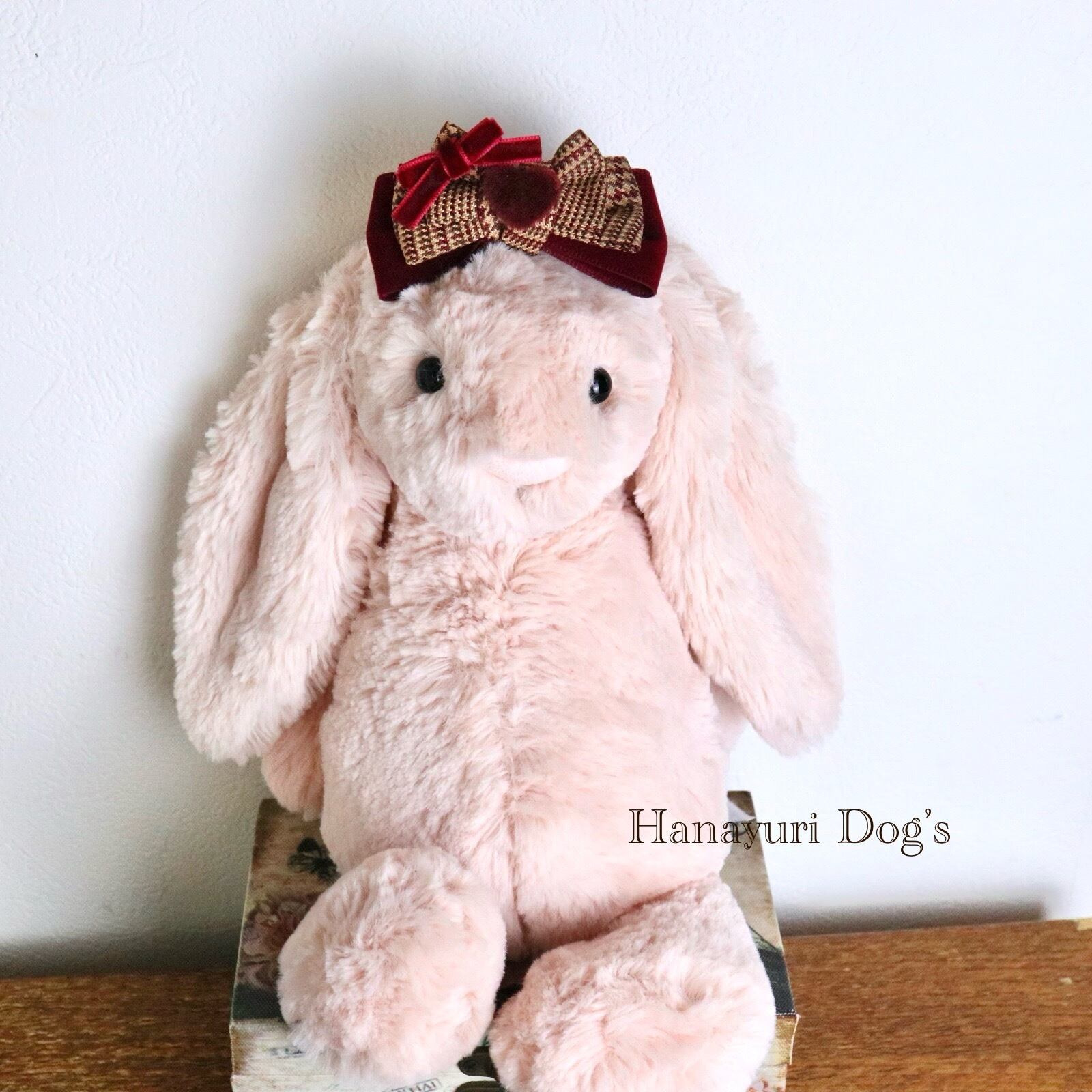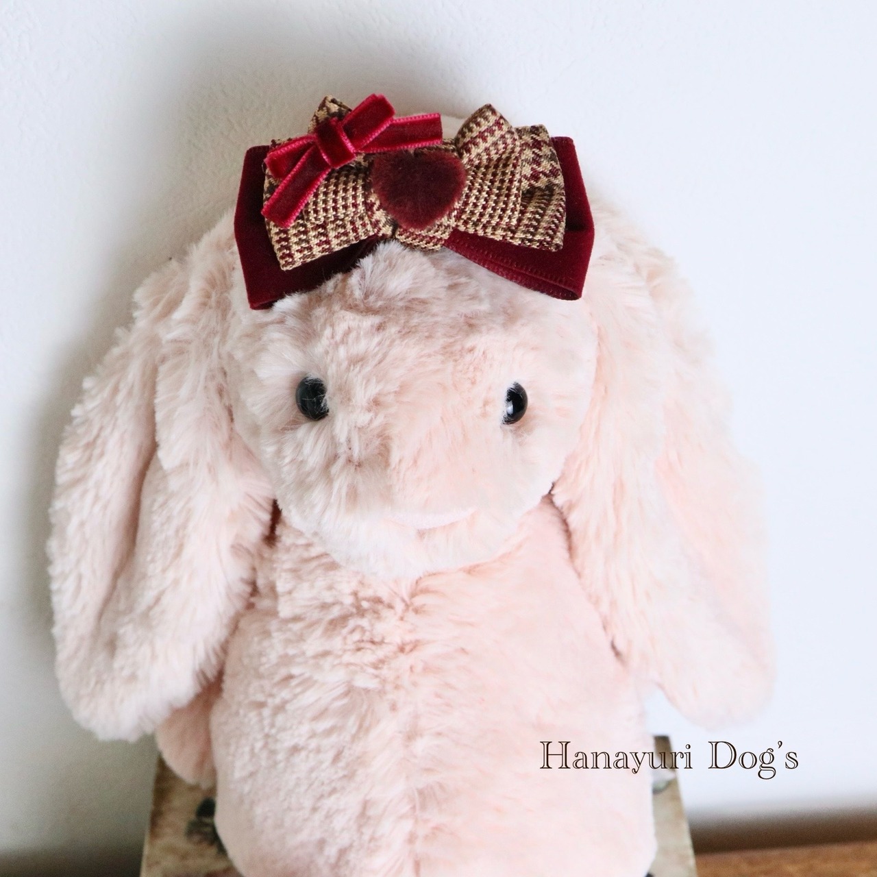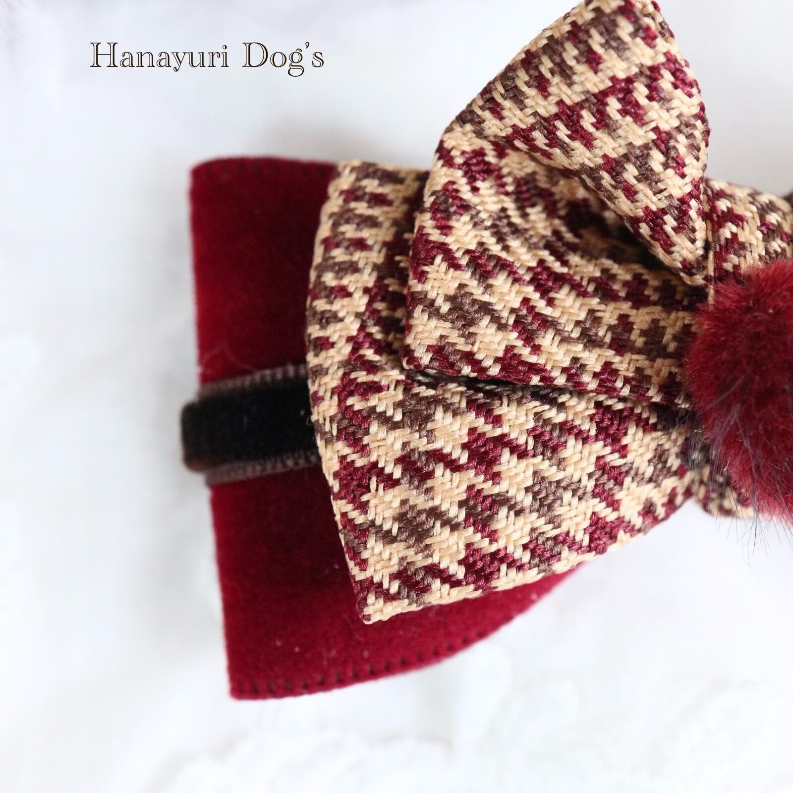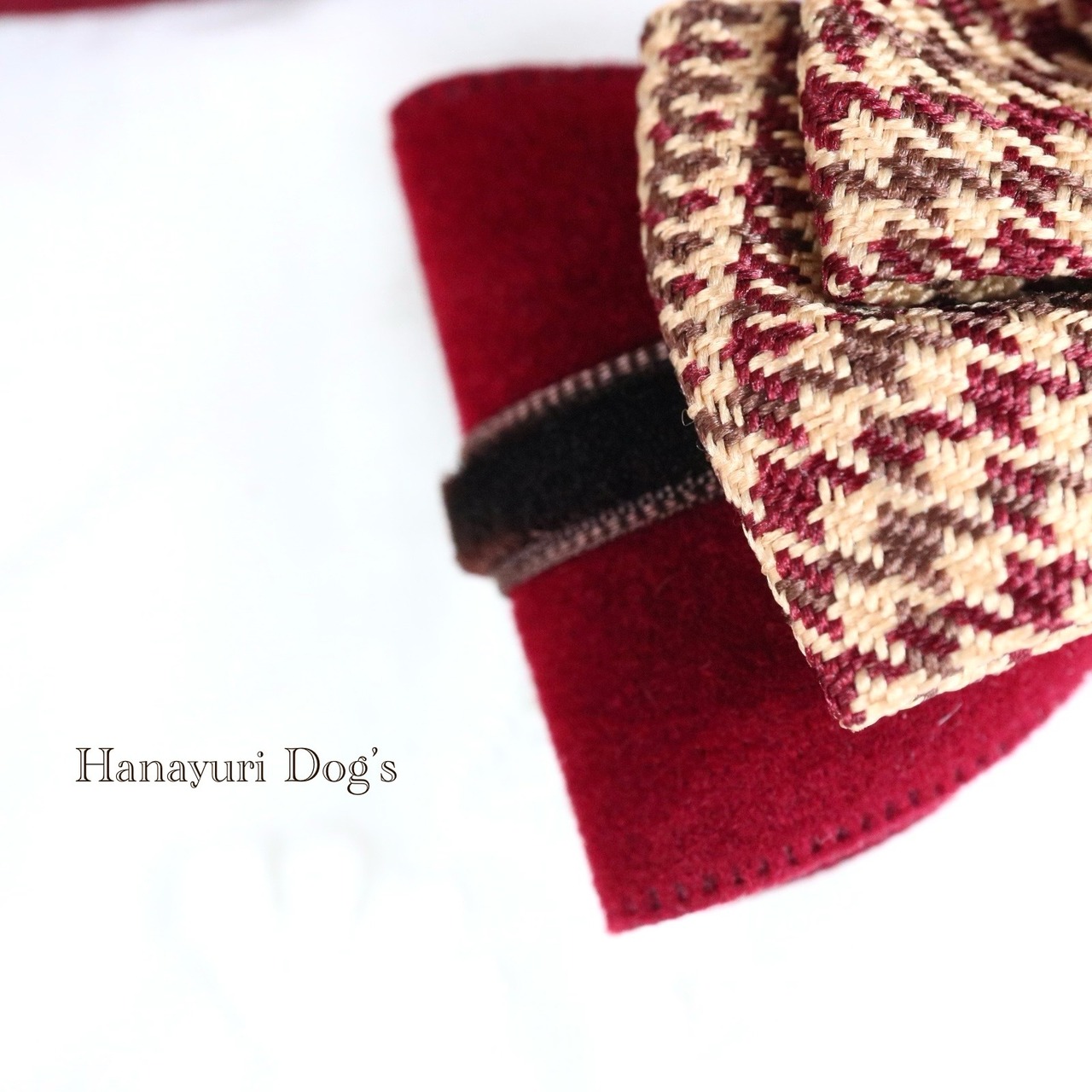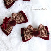 変わり格子 2種1P 千鳥格子 チェック スコティッシュ ワインレッド 異素材 スエード ハート 犬バレッタ キッズ・子供リボン 猫 ペット ヘアアクセサリー 髪飾り 普段着 うちの子記念日 誕生日 プレゼント オフ会 撮影 | Hanayuri Dog’s