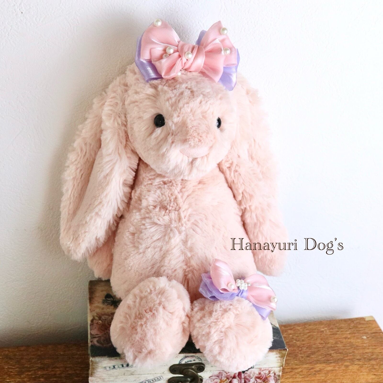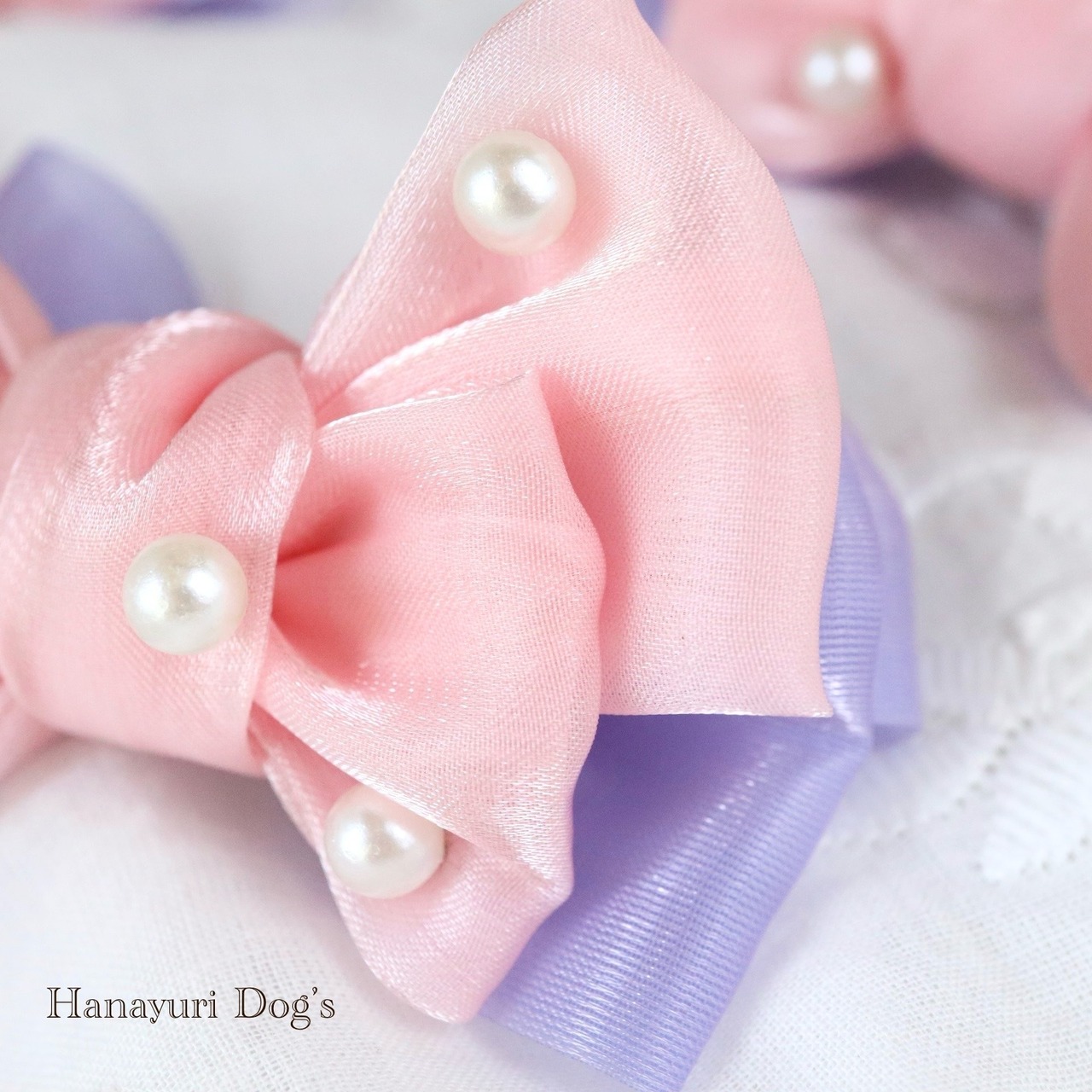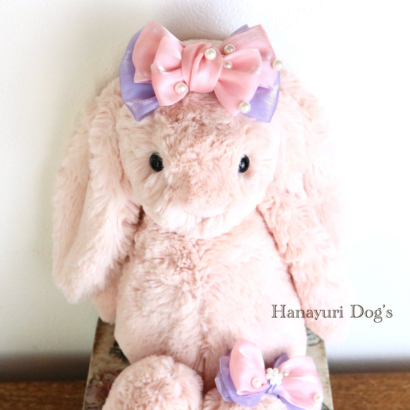ピンクと紫のエレガントコンビにパールが散りばめられたバレッタリボンです。