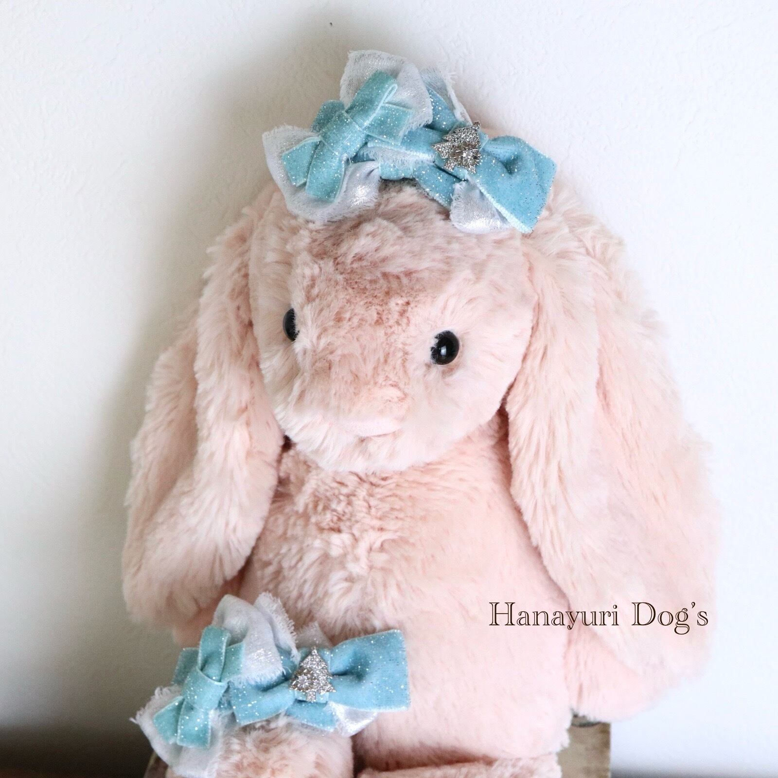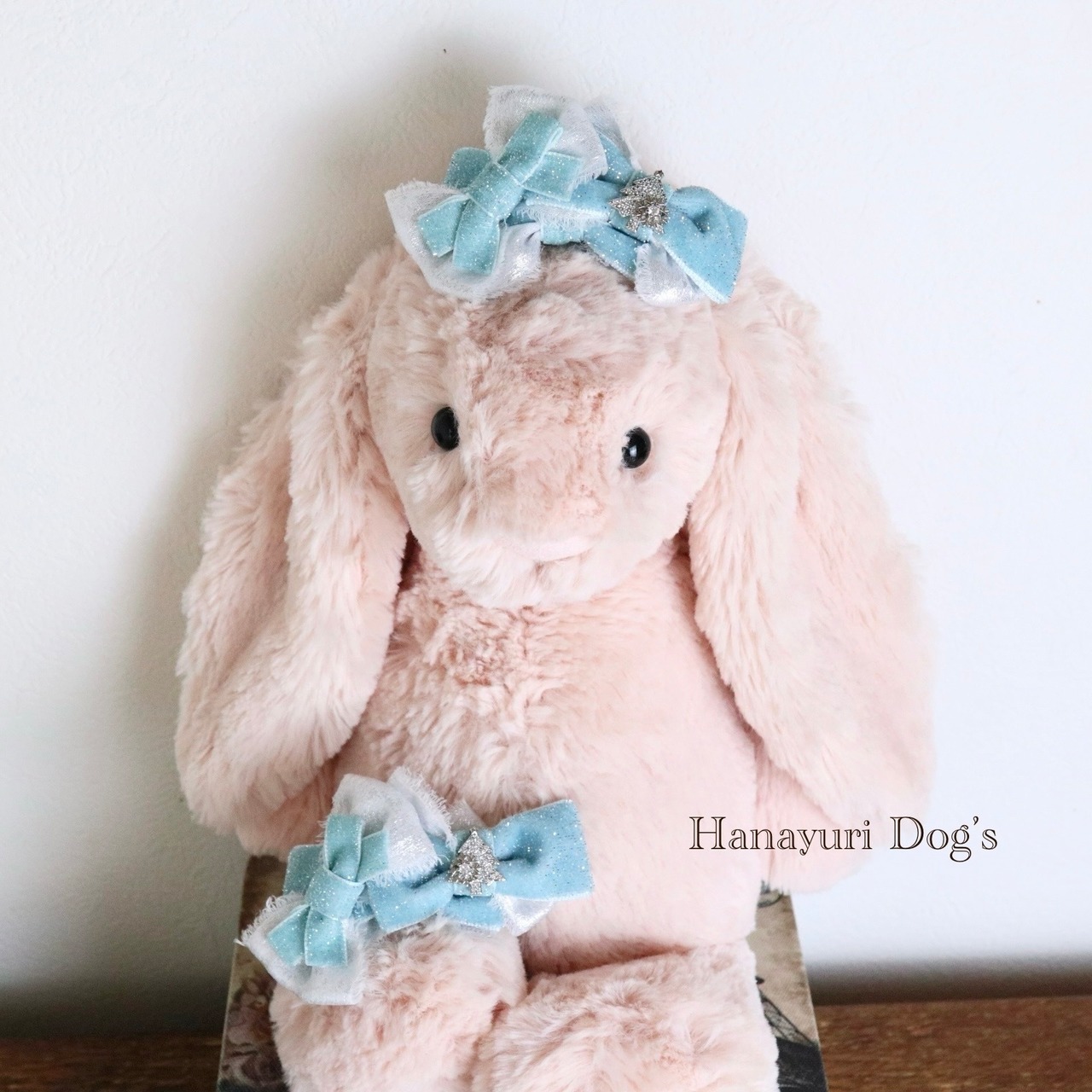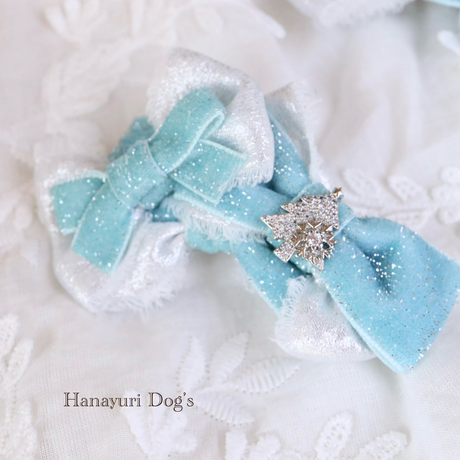 ブルーベルベット 銀色クリスマスツリー 冬 キラキラ 犬バレッタ キッズ・子供リボン 猫 ペット ヘアアクセサリー 髪飾り 普段着 うちの子記念日 誕生日 プレゼント オフ会 イベント 撮影 | Hanayuri Dog’s