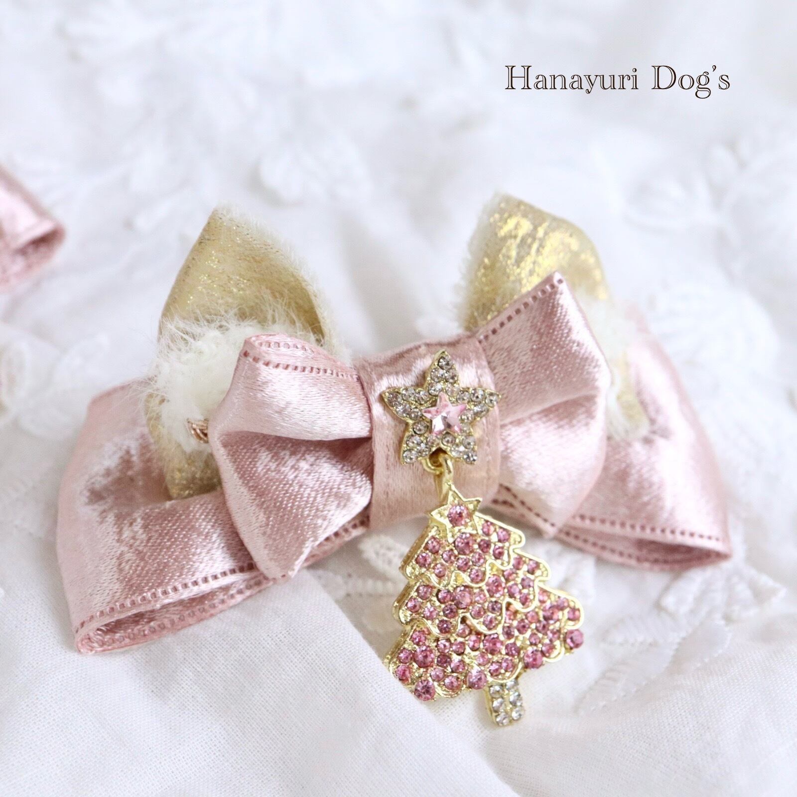 ピンクゴールド クリスマスツリー 冬 犬バレッタ キッズ・子供リボン 猫 ペット ヘアアクセサリー 髪飾り 普段着 うちの子記念日 誕生日 プレゼント オフ会 イベント 撮影