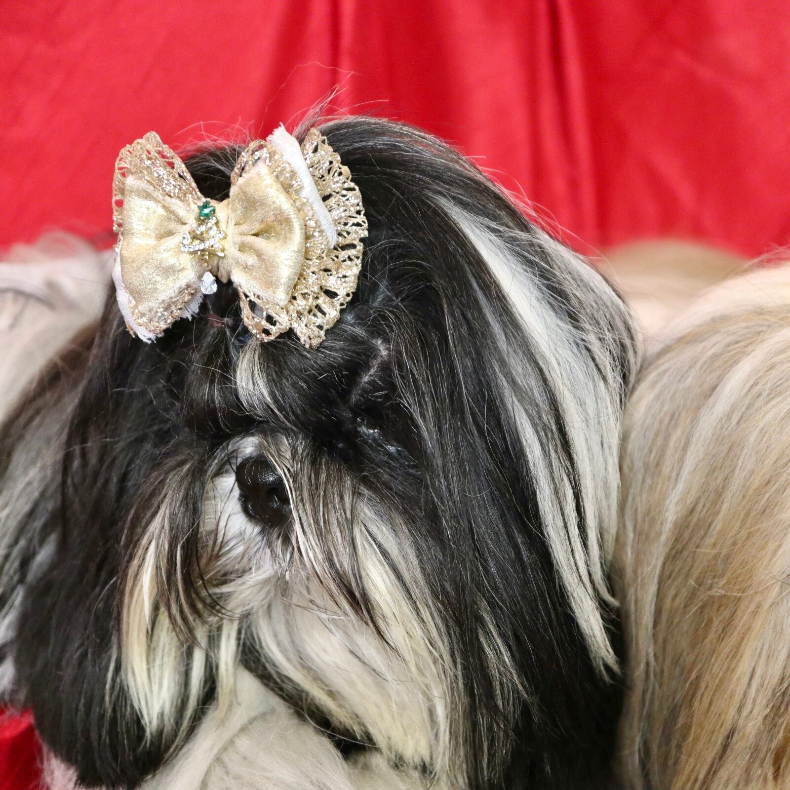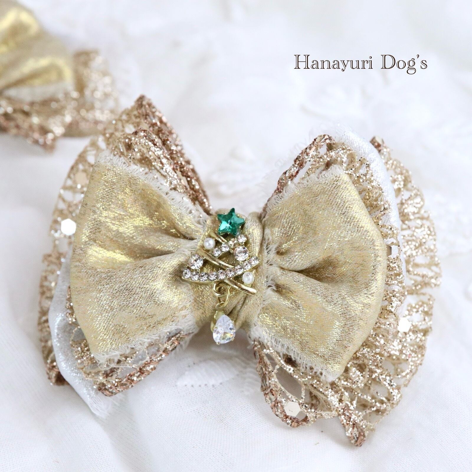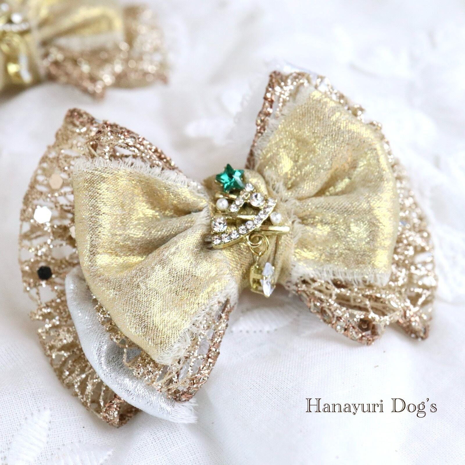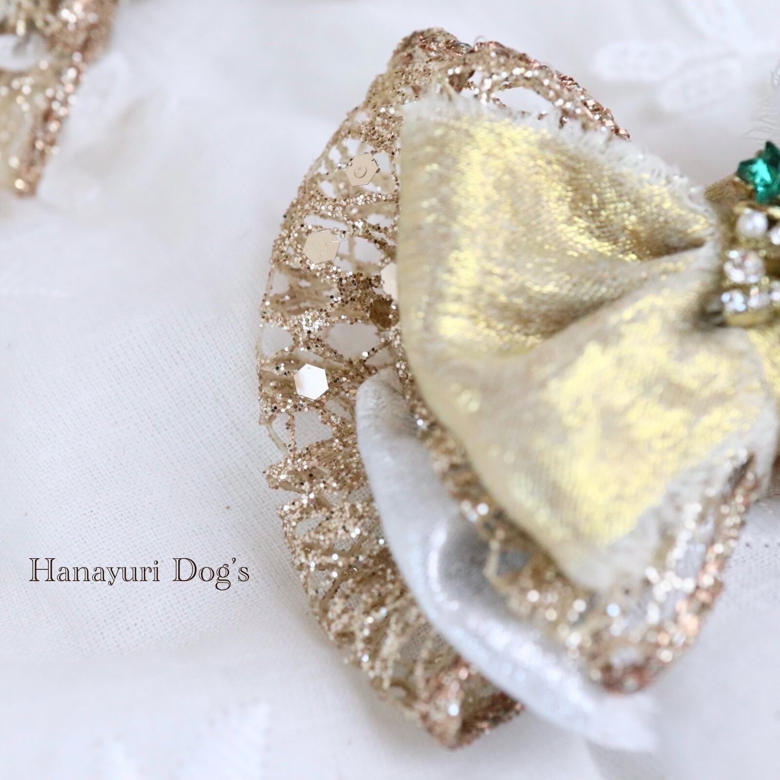 ゴールドメッシュ クリスマスツリービジュー 冬 犬バレッタ キッズ・子供リボン 猫 ペット ヘアアクセサリー 髪飾り 普段着 うちの子記念日 誕生日 プレゼント オフ会 イベント 撮影 | Hanayuri Dog’s