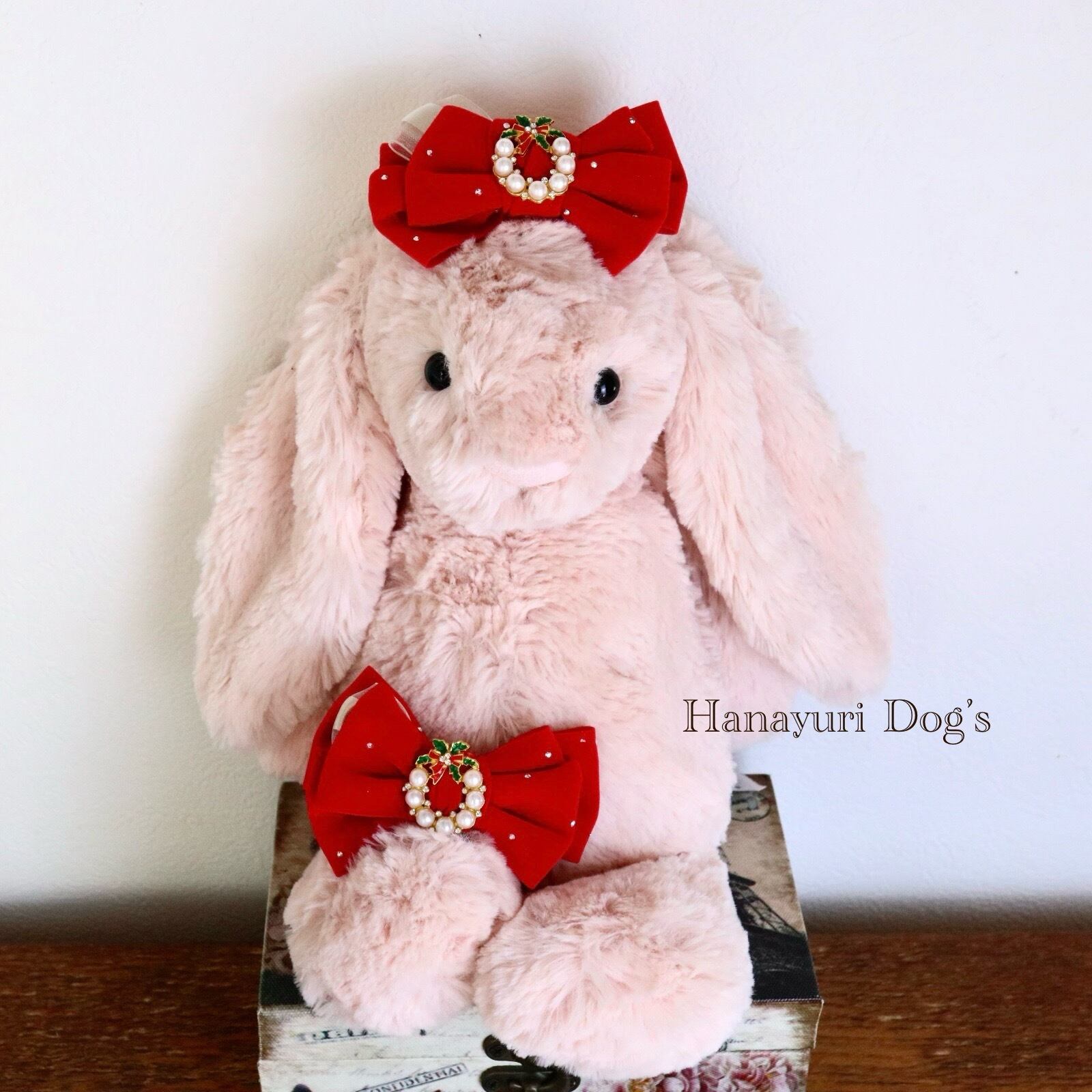 ラインストーン 赤ベルベット クリスマスリース パール 冬 犬バレッタ キッズ・子供リボン 猫 ペット ヘアアクセサリー 髪飾り 普段着 うちの子記念日 誕生日 プレゼント オフ会 イベント 撮影 | Hanayuri Dog’s