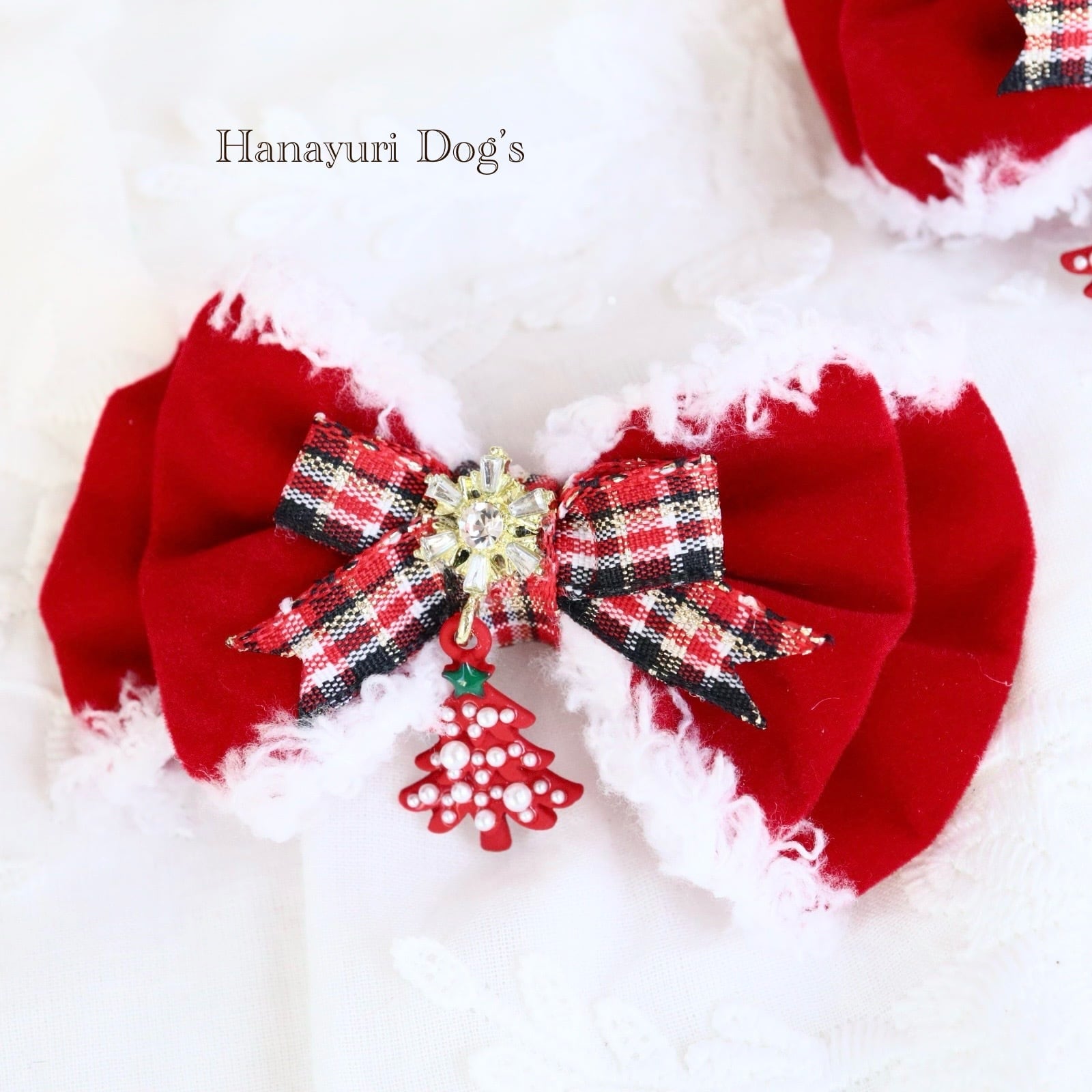 赤ベルベット ツリー 雪の結晶 クリスマス 冬 犬バレッタ キッズ・子供リボン 猫 ペット ヘアアクセサリー 髪飾り 普段着 うちの子記念日 誕生日 プレゼント オフ会 イベント 撮影 | Hanayuri Dog’s