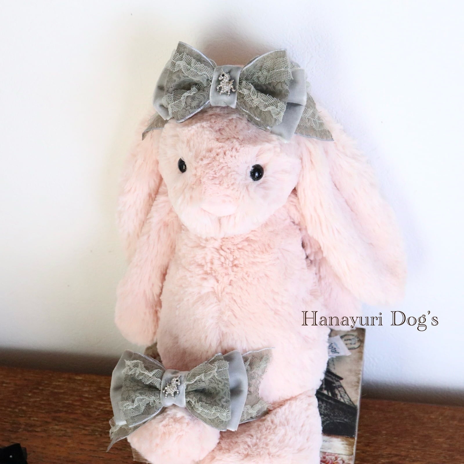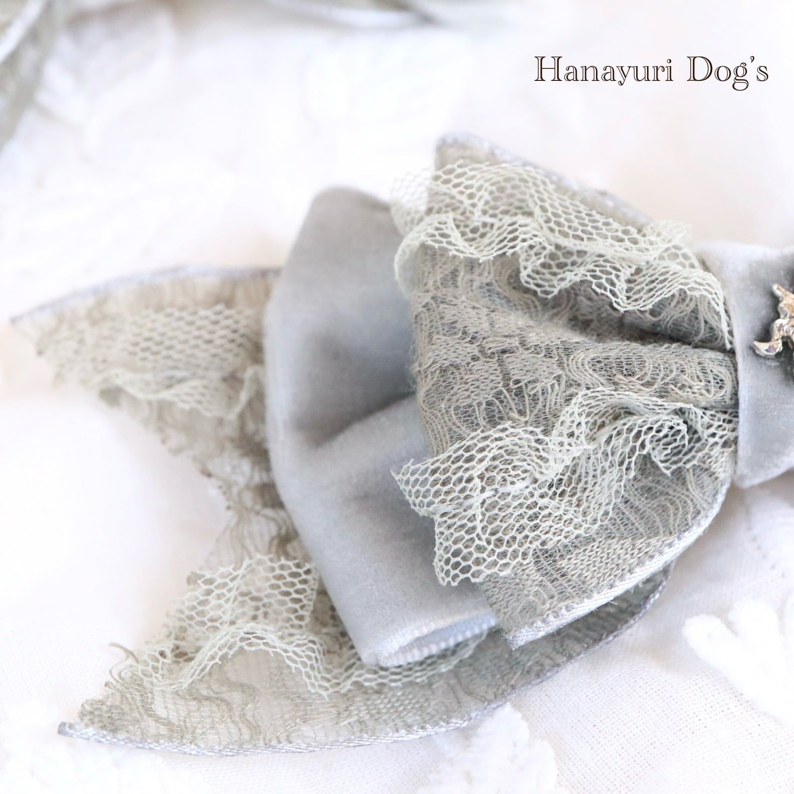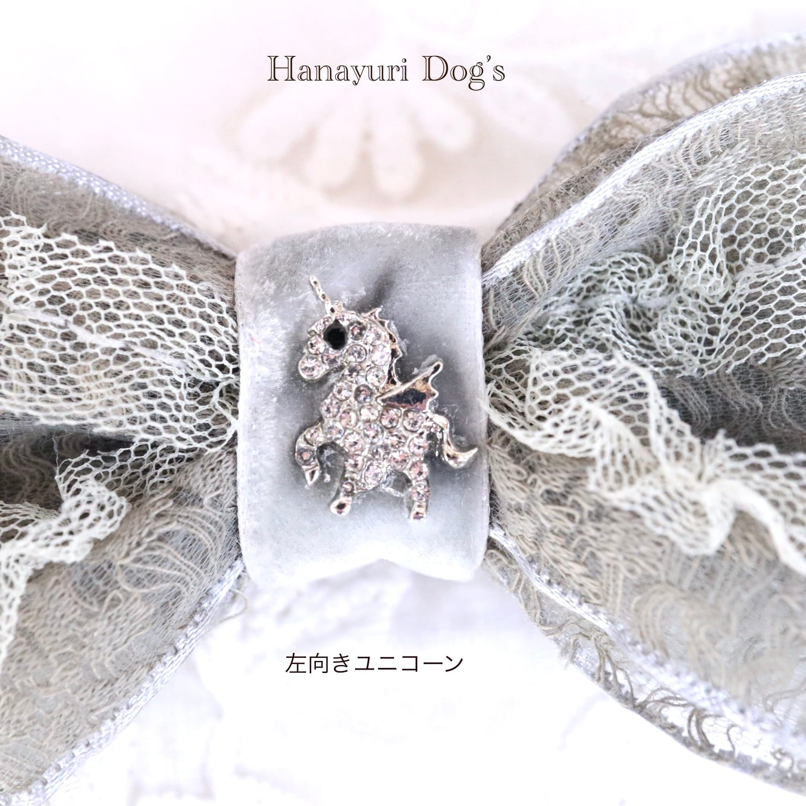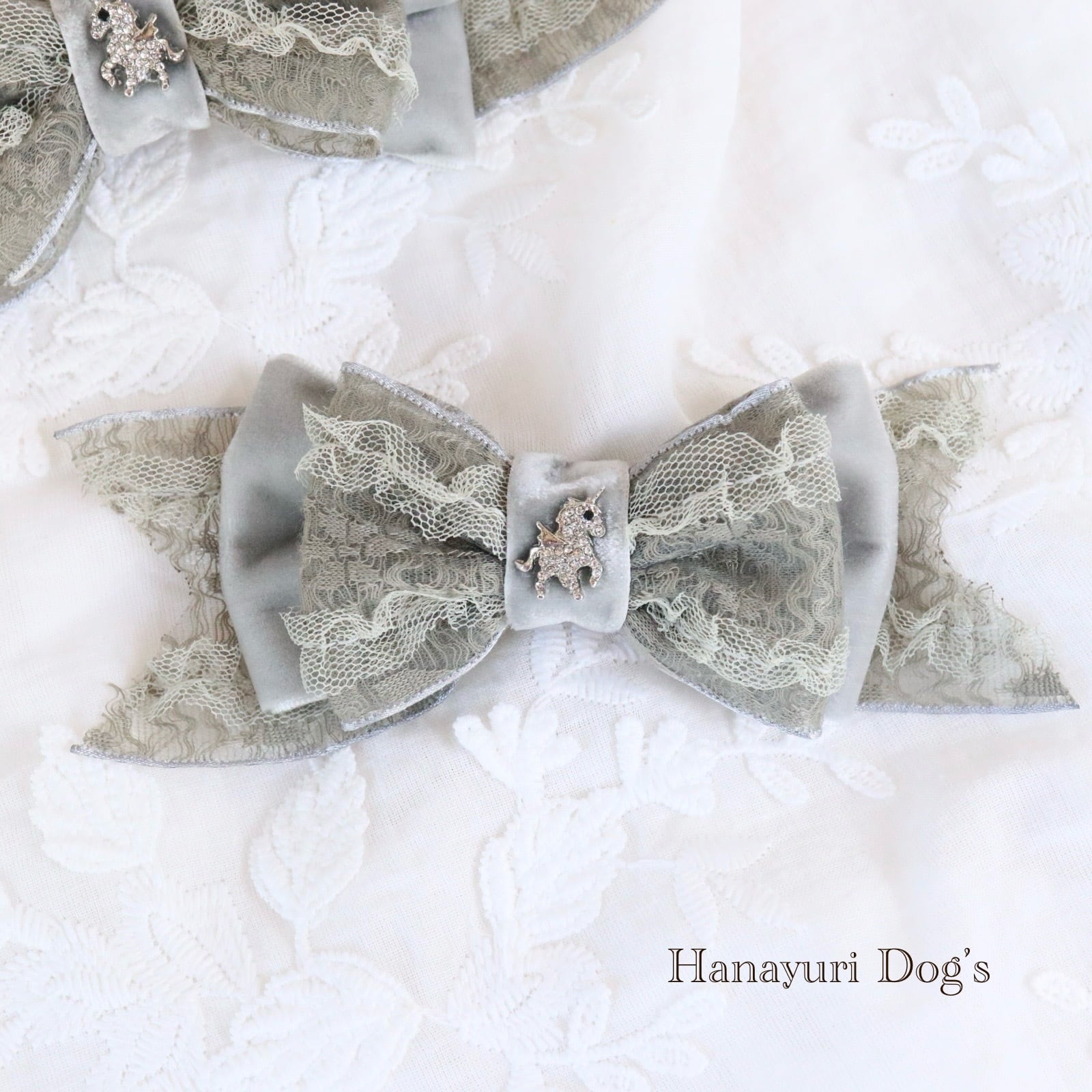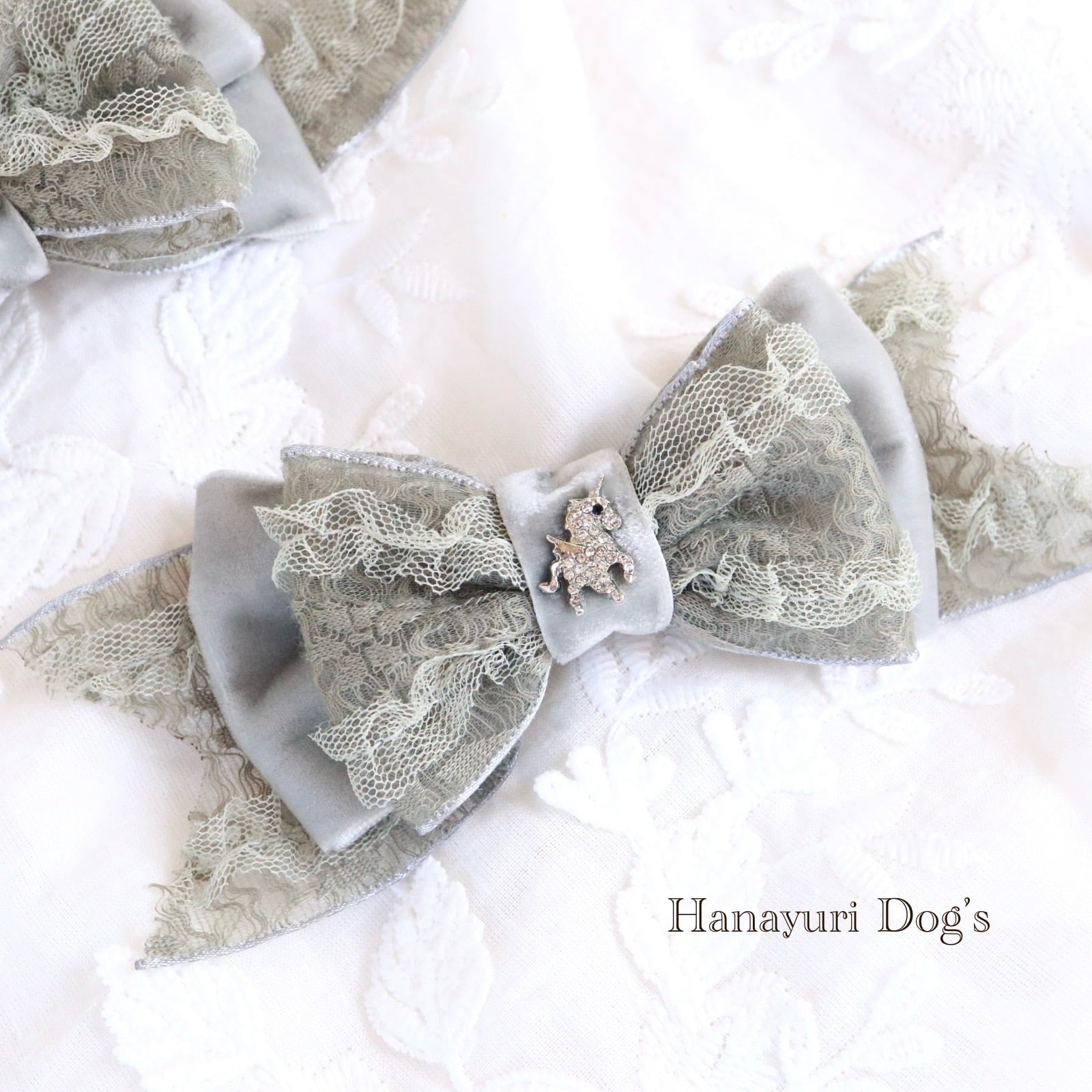 上質レースとベルベット グレー ユニコーン 一角獣 シルバー カチューシャ風 犬バレッタ キッズ・子供リボン 猫 ペット ヘアアクセサリー 髪飾り 普段着 うちの子記念日 誕生日 プレゼント オフ会 イベント 撮影 | Hanayuri Dog’s