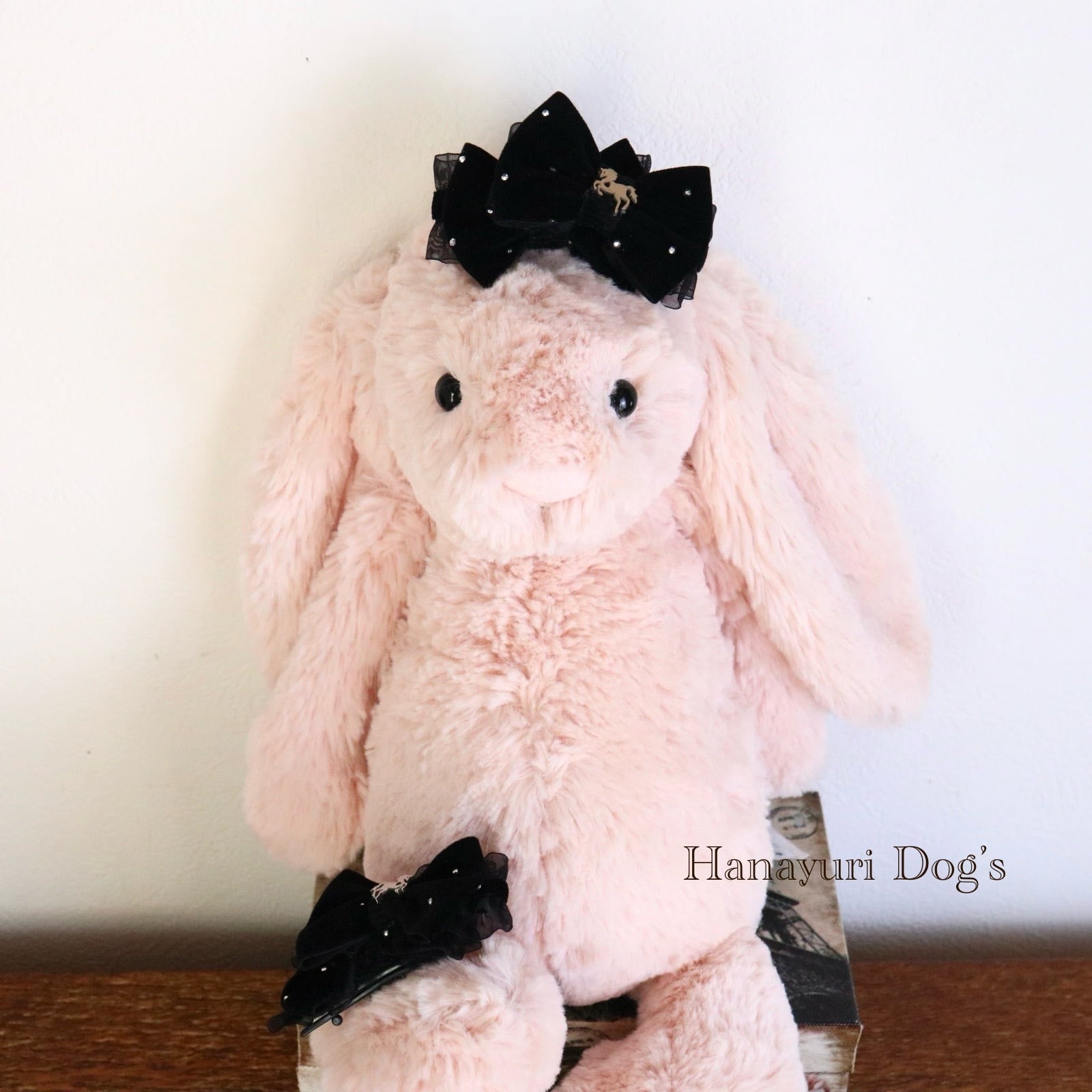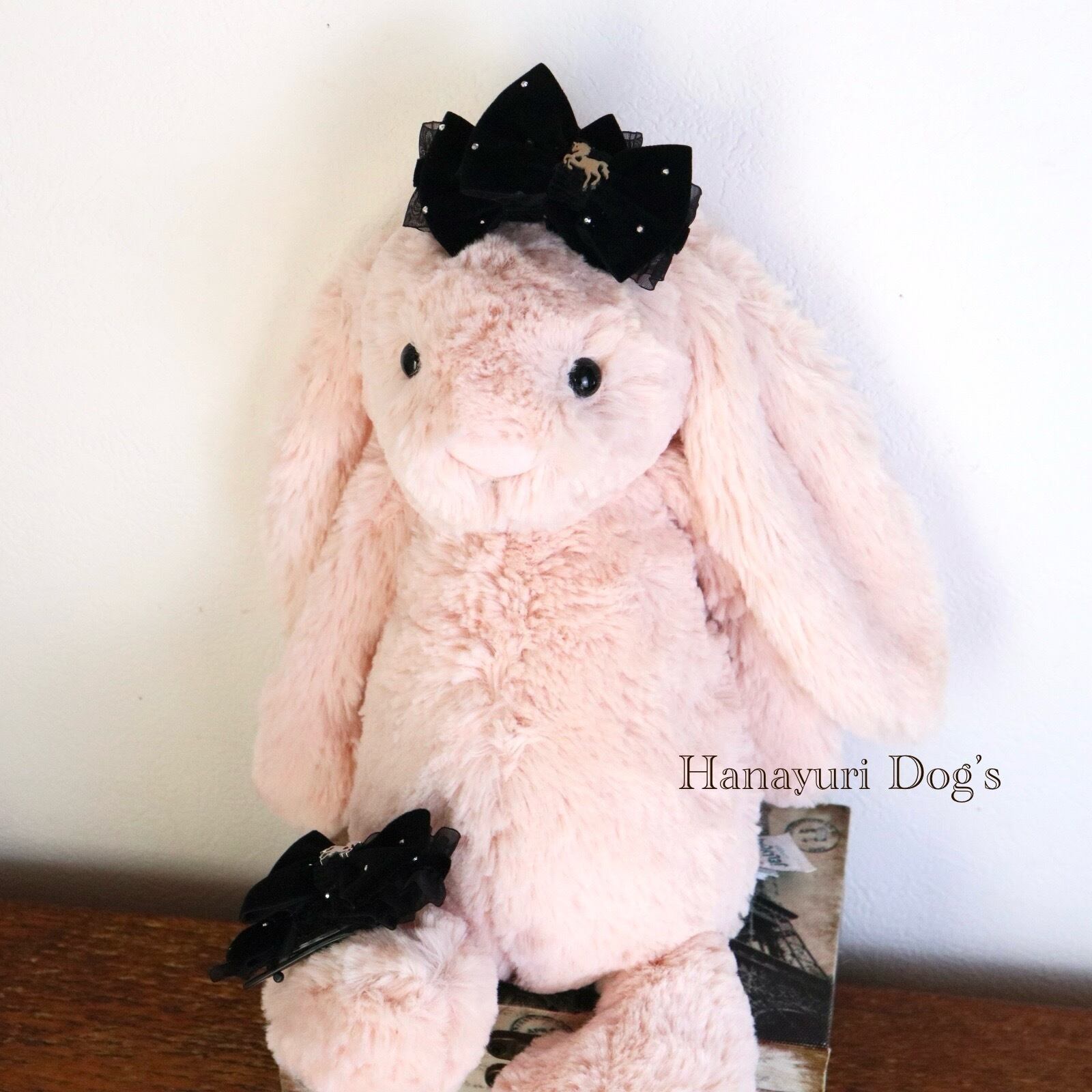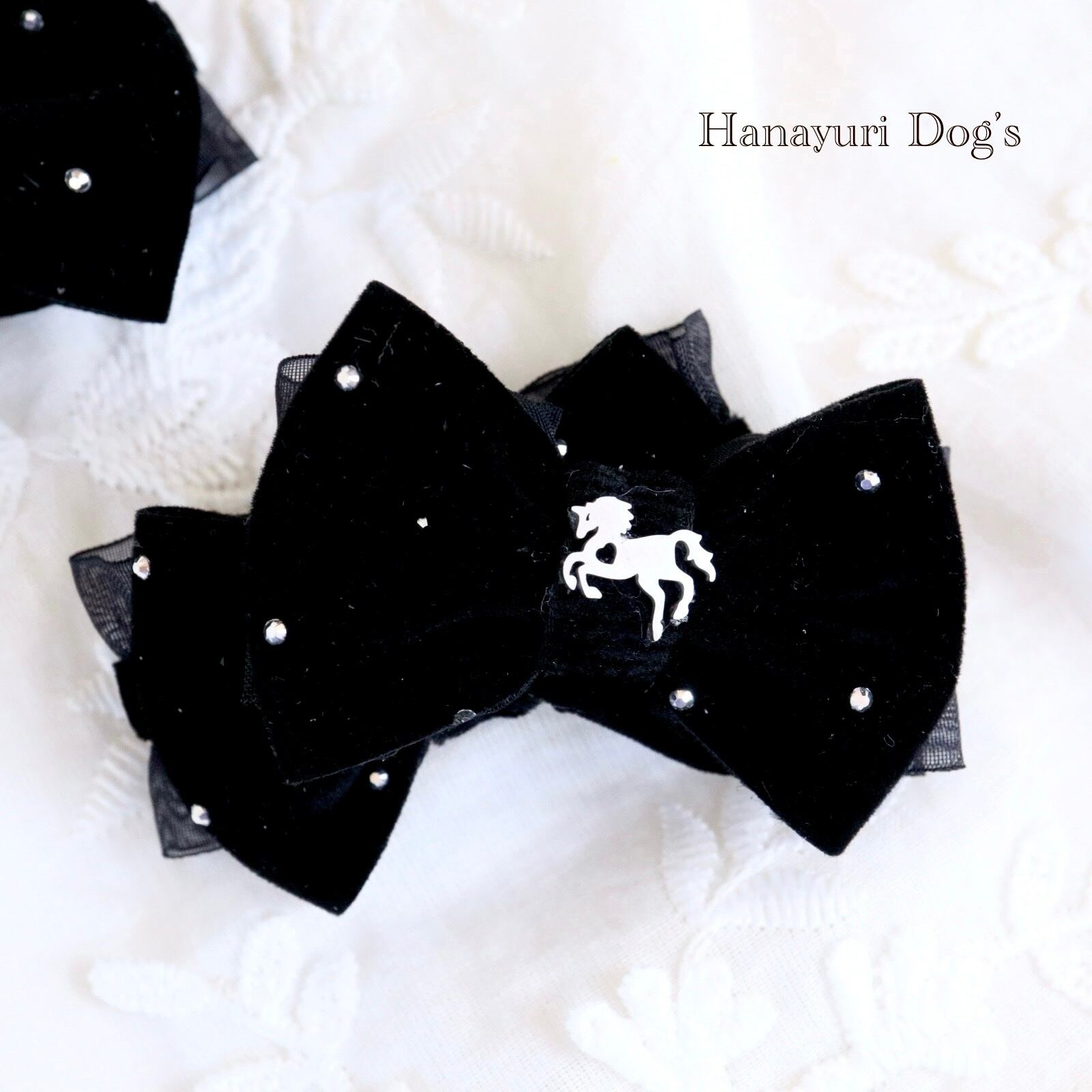 ブラックベルベット ラインストーン 馬ビジュー 2026干支 開運 縁起物 お正月 冬 犬バレッタ キッズ・子供リボン 猫 ペット ヘアアクセサリー 髪飾り 普段着 うちの子記念日 誕生日 プレゼント オフ会 イベント 撮影 | Hanayuri Dog’s