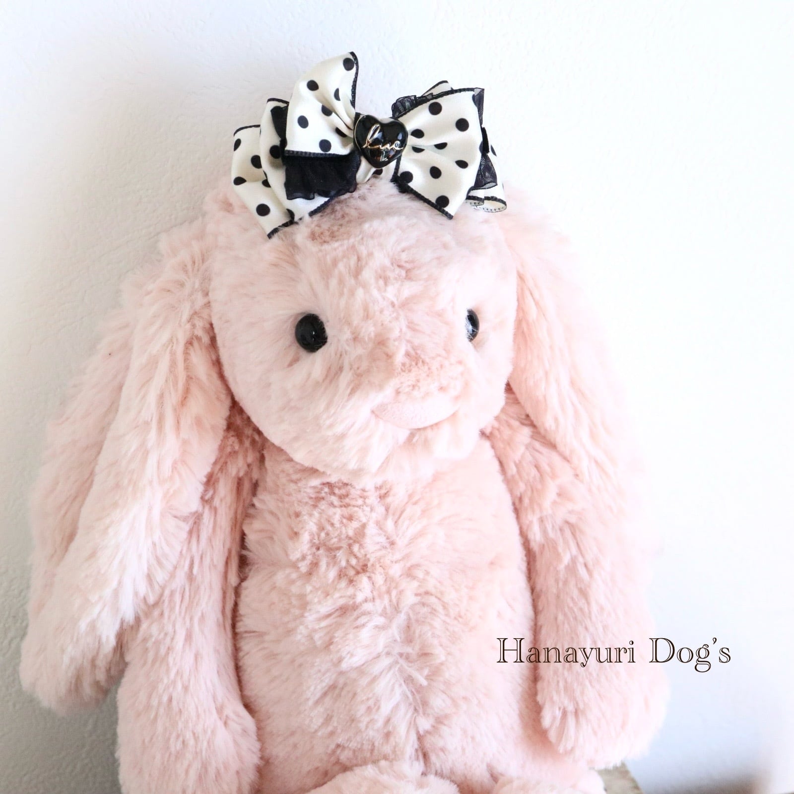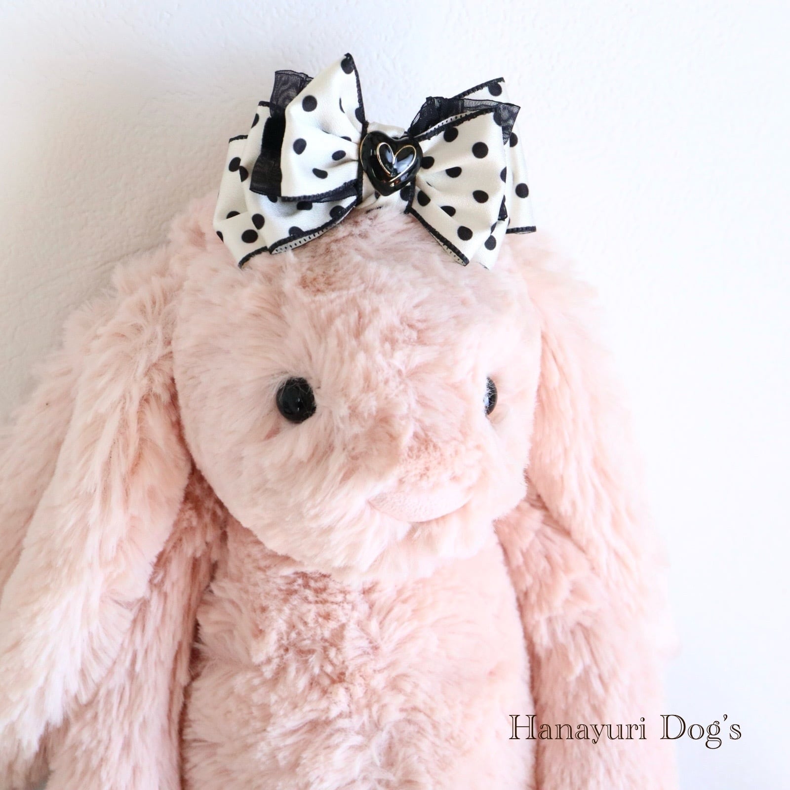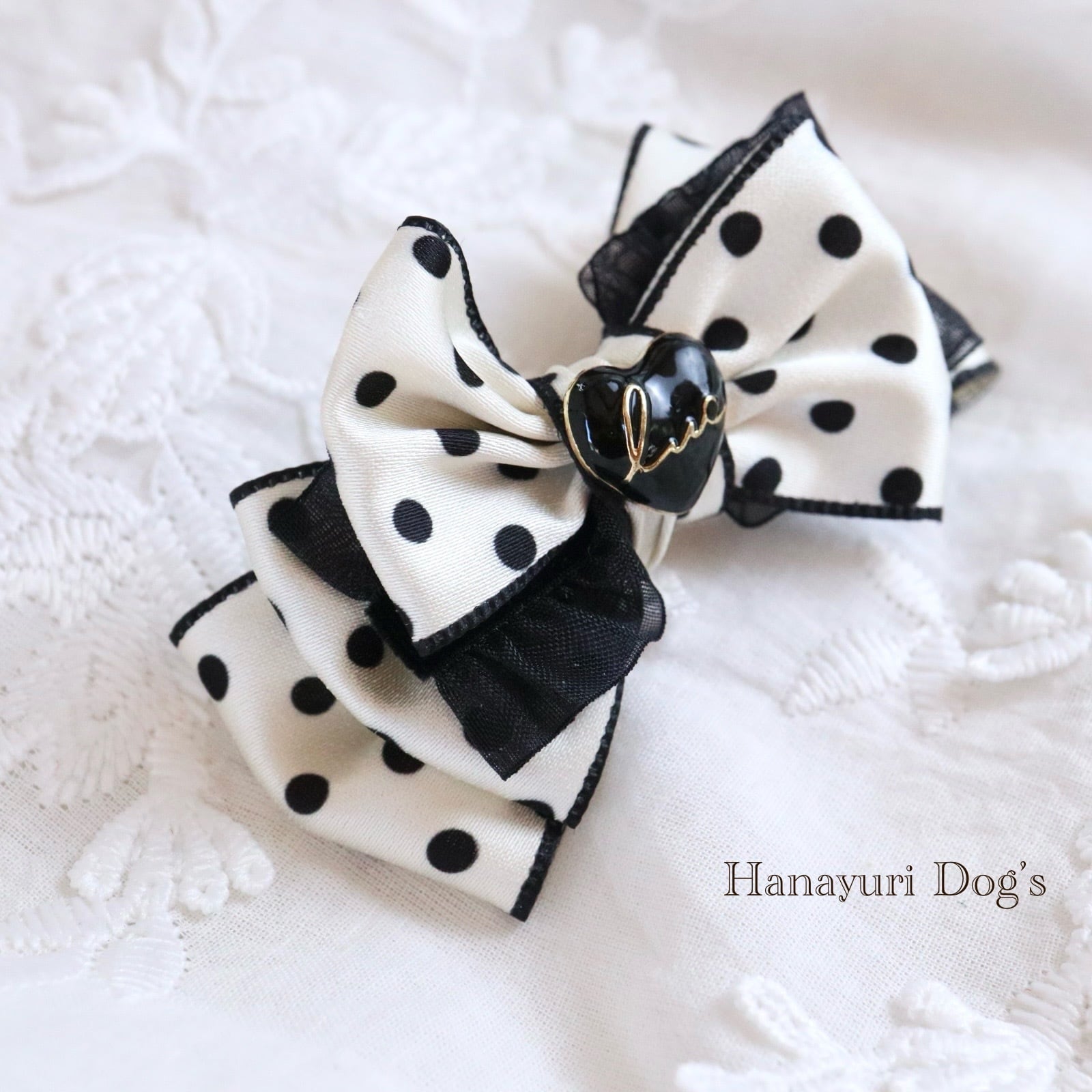 水玉 モノトーン ドット ハート 白黒 犬バレッタ キッズ・子供リボン 猫 ペット ヘアアクセサリー 髪飾り 普段着 うちの子記念日 誕生日 プレゼント オフ会 イベント 撮影 | Hanayuri Dog’s