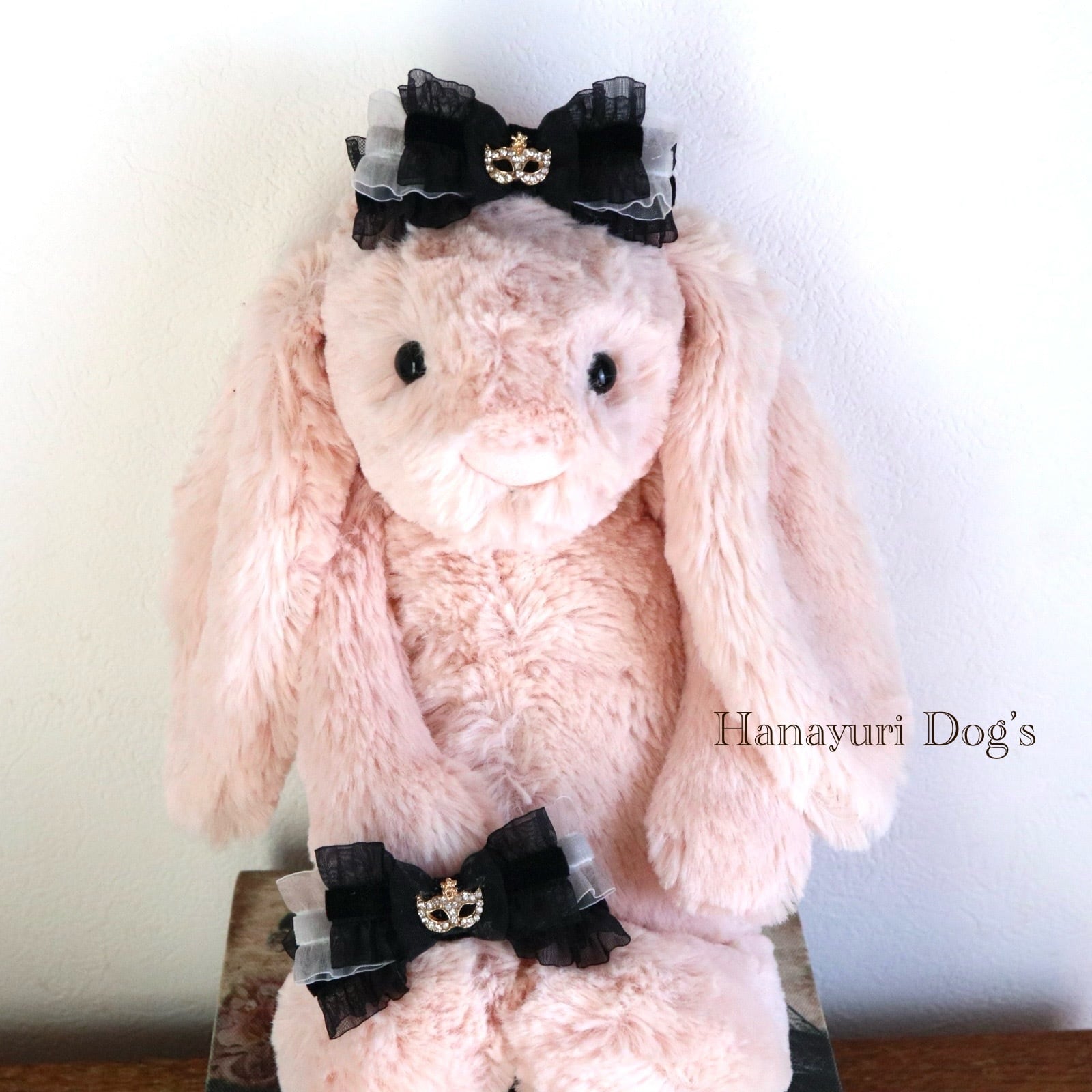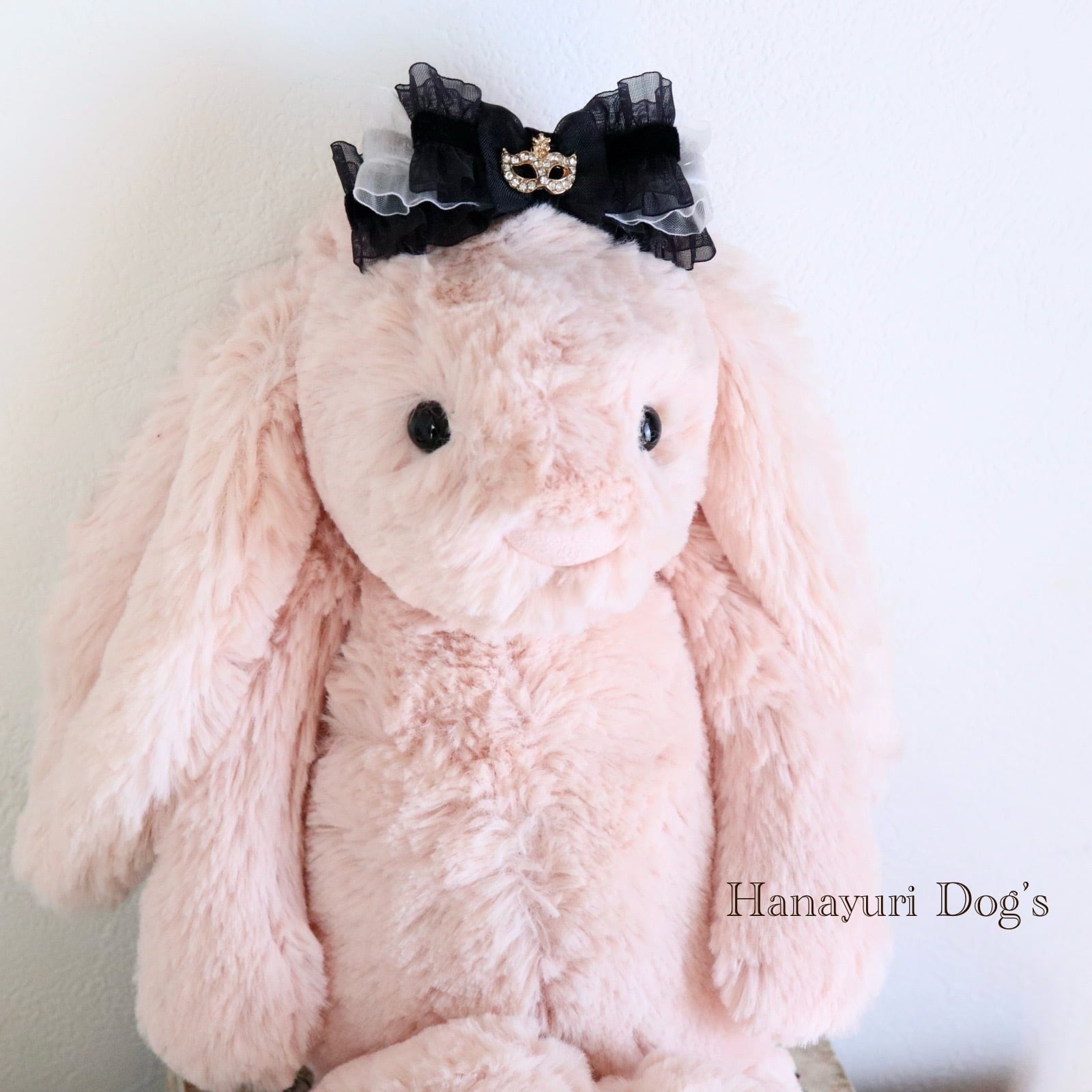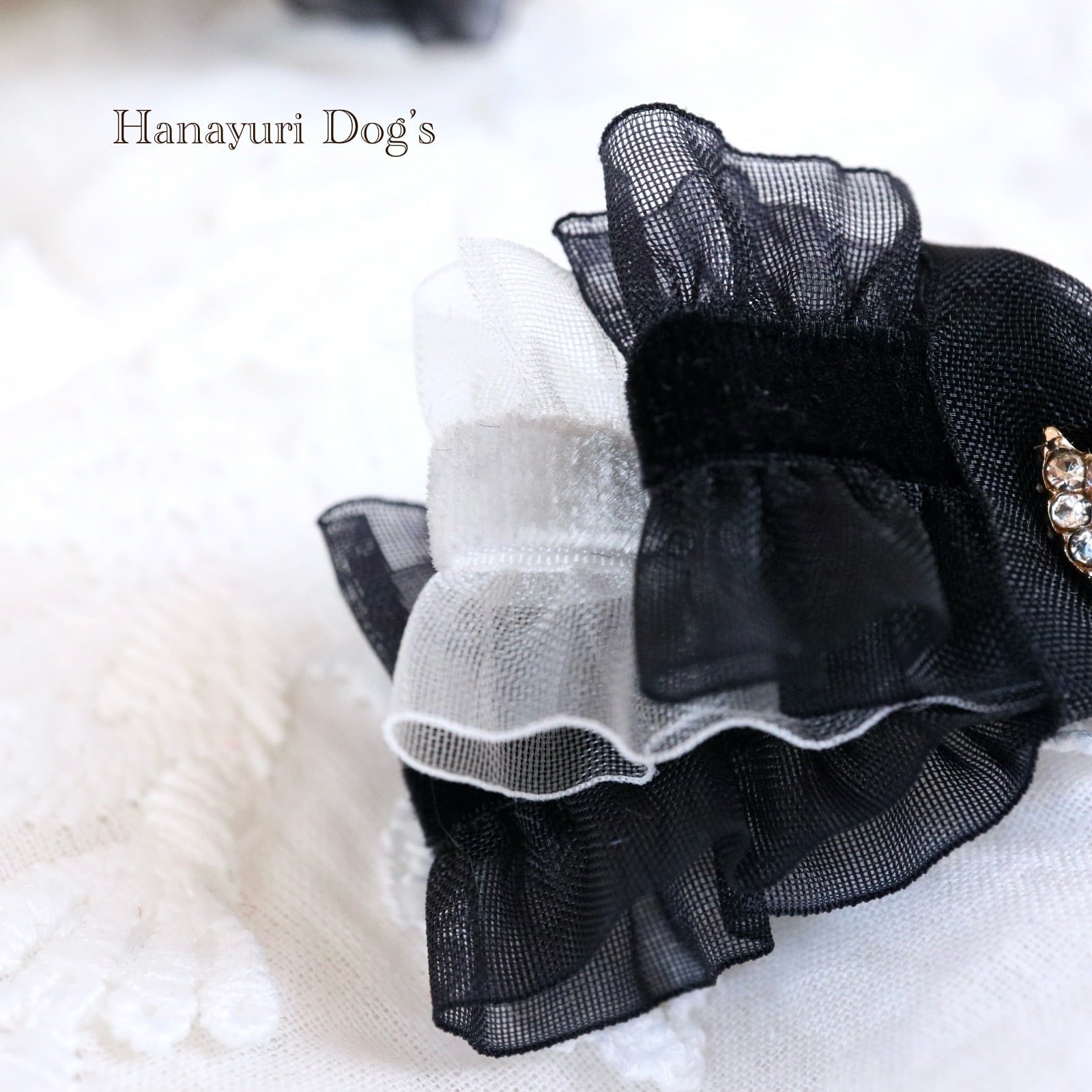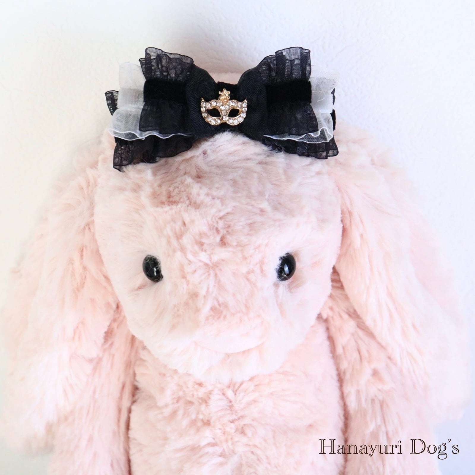 仮面舞踏会 モノトーン ベルベットフリル ブラック×グレー 犬バレッタ キッズ・子供リボン 猫 ペット ヘアアクセサリー 髪飾り 普段着 うちの子記念日 誕生日 プレゼント オフ会 イベント 撮影 | Hanayuri Dog’s