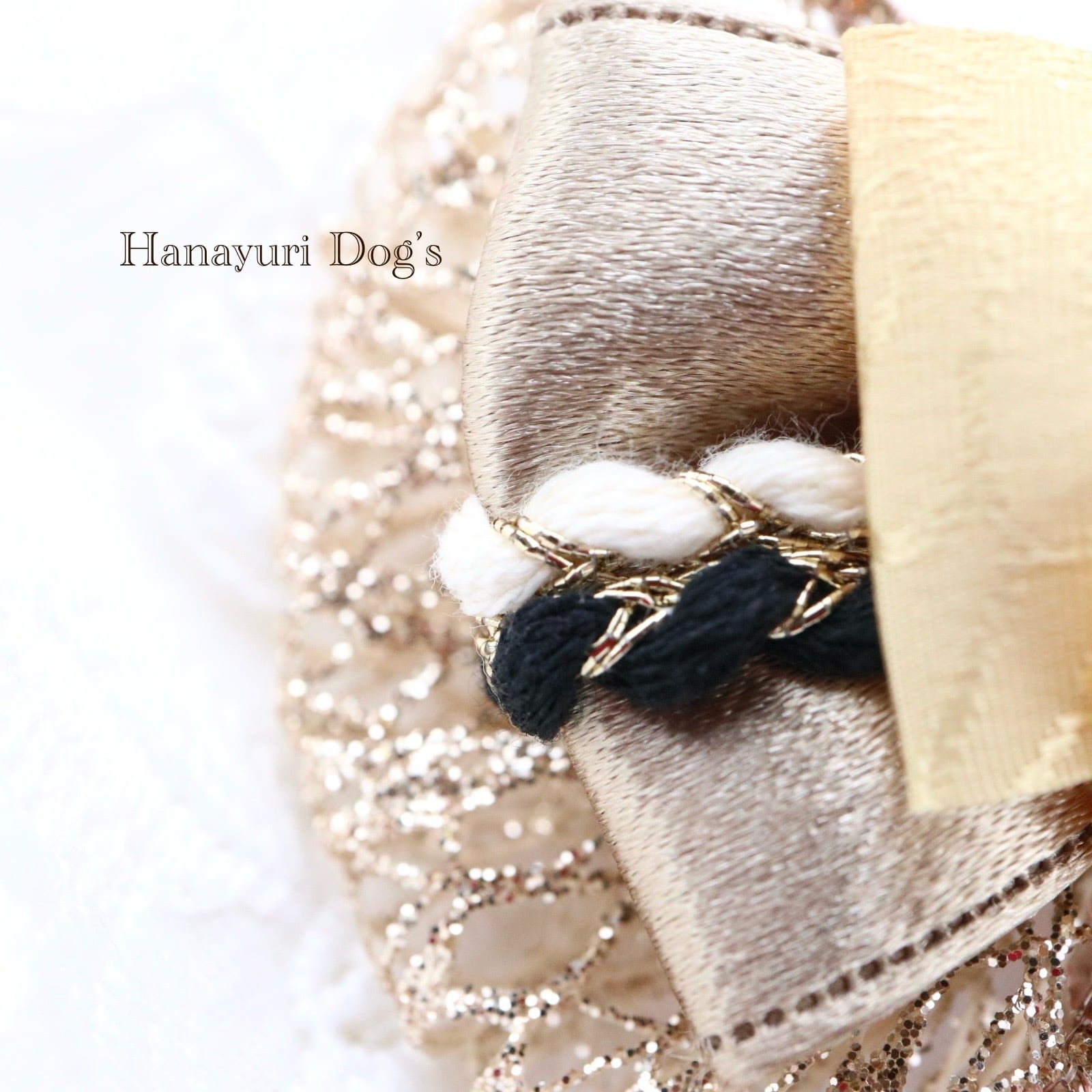 和モダン ゴールド×ブラック 花ビジュー お正月 着物 犬バレッタ キッズ・子供リボン ペット ぬいぐるみ ヘアアクセサリー 髪飾り 普段着 うちの子記念日 誕生日 プレゼント オフ会 イベント 撮影 | Hanayuri Dog’s