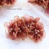 オーガンジーの花 ブラウン シック 犬バレッタ キッズ・子供リボン ペット ぬいぐるみ ヘアアクセサリー 髪飾り 普段着 うちの子記念日 誕生日 プレゼント オフ会 イベント 撮影