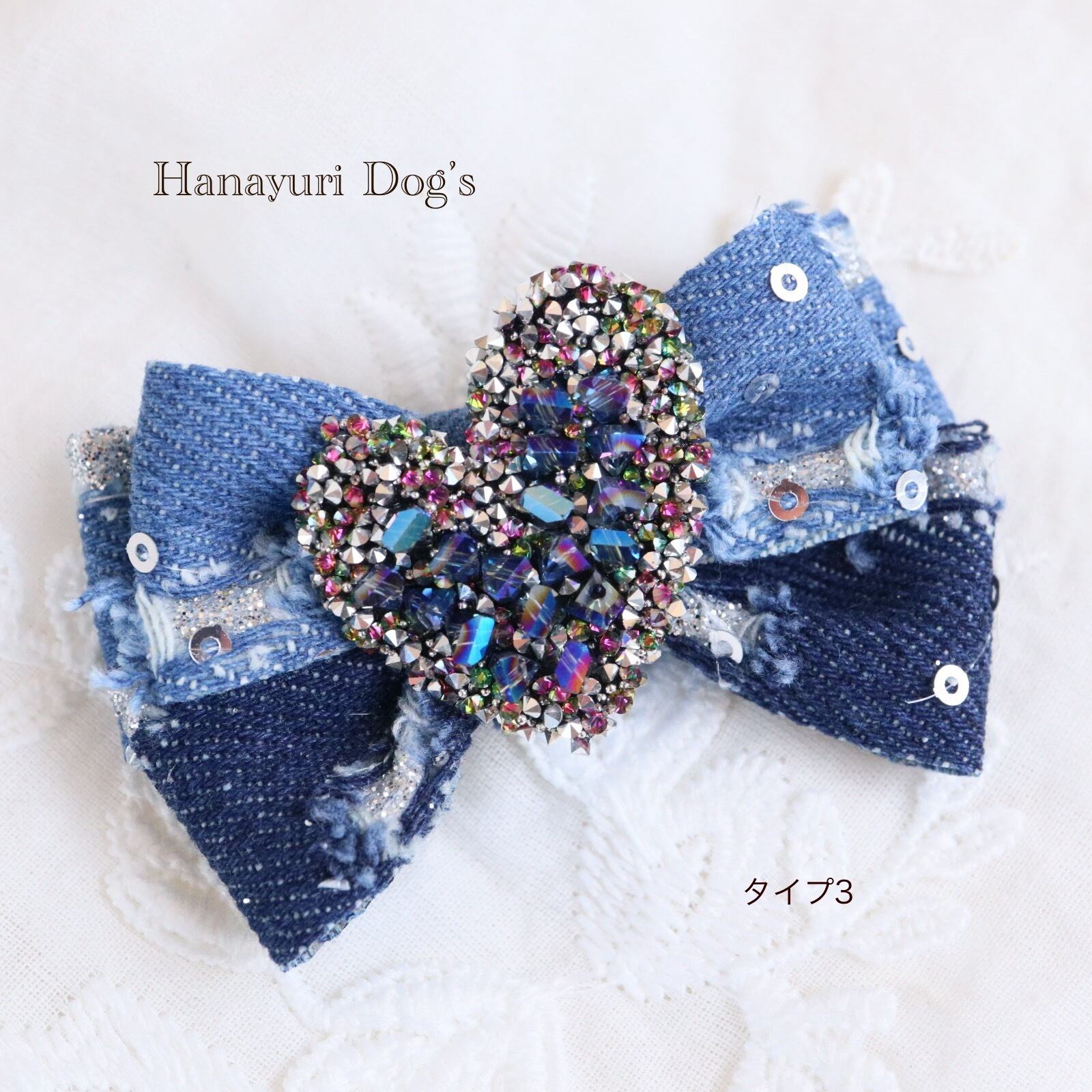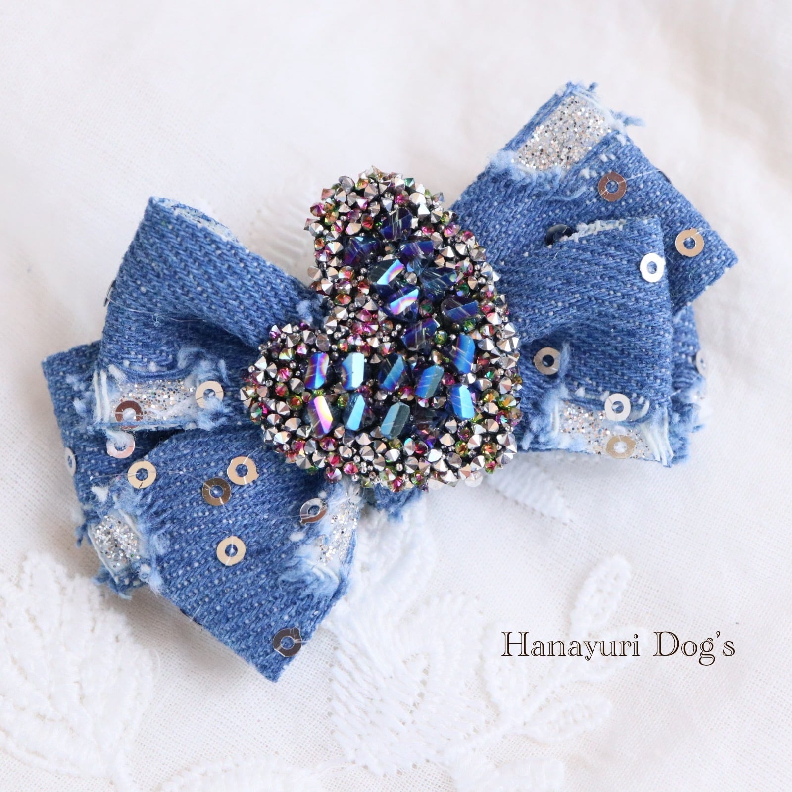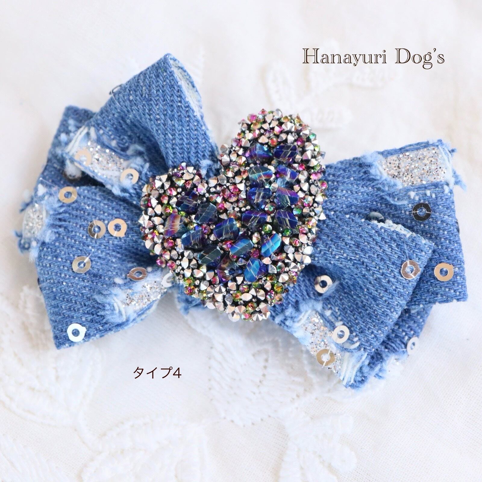ダメージデニム スパンコール キラキラハート 4種1P 犬バレッタ キッズ・子供リボン ペット ぬいぐるみ ヘアアクセサリー 髪飾り 普段着 うちの子記念日 誕生日 プレゼント オフ会 イベント 撮影 | Hanayuri Dog’s