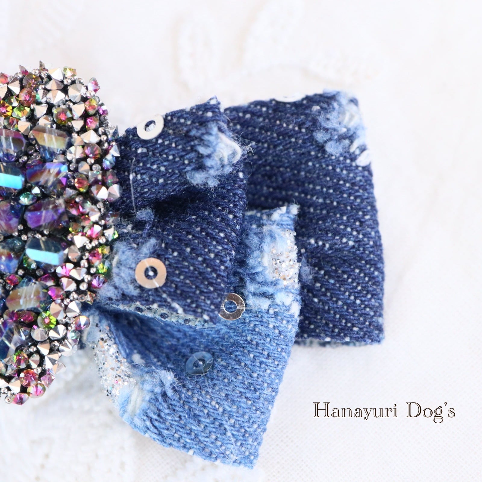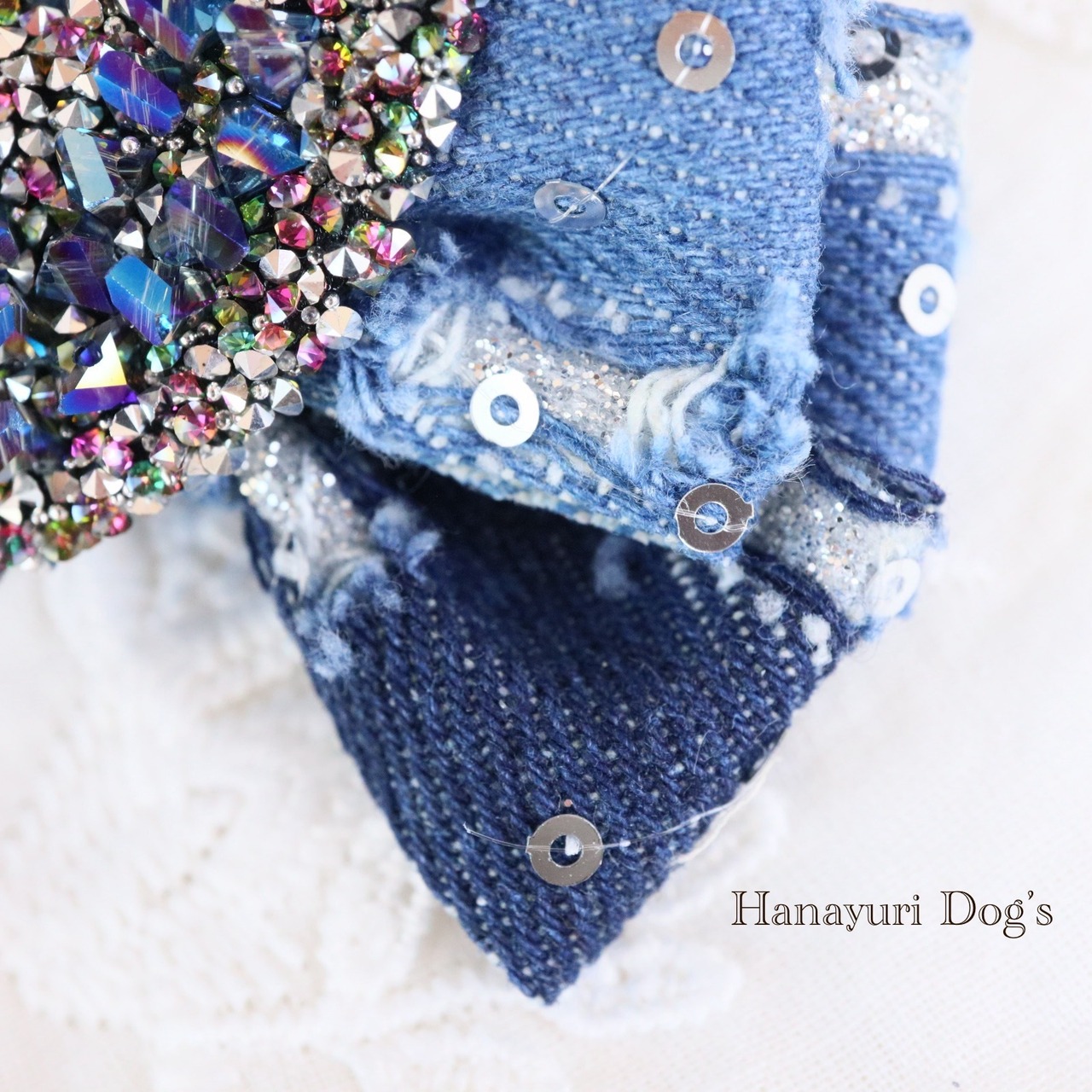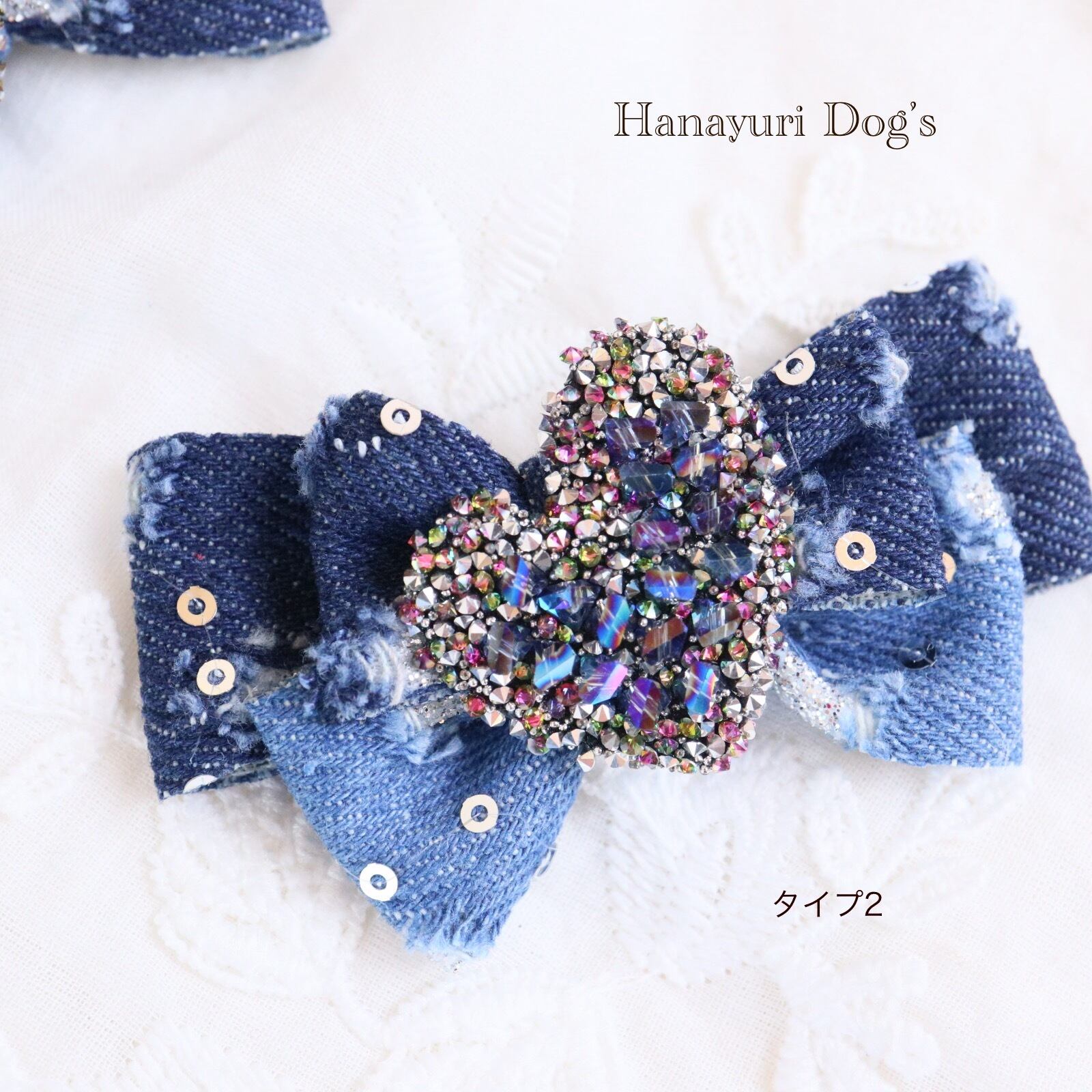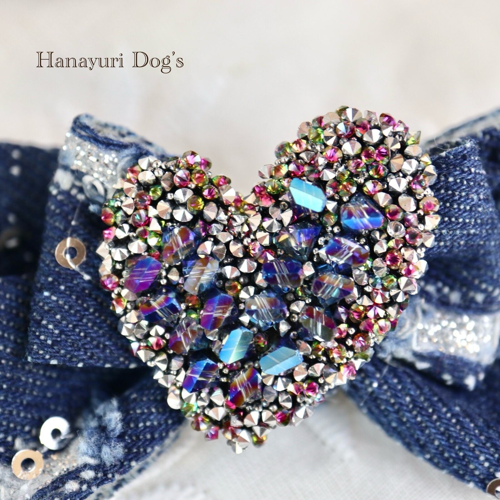 ダメージデニム スパンコール キラキラハート 4種1P 犬バレッタ キッズ・子供リボン ペット ぬいぐるみ ヘアアクセサリー 髪飾り 普段着 うちの子記念日 誕生日 プレゼント オフ会 イベント 撮影 | Hanayuri Dog’s