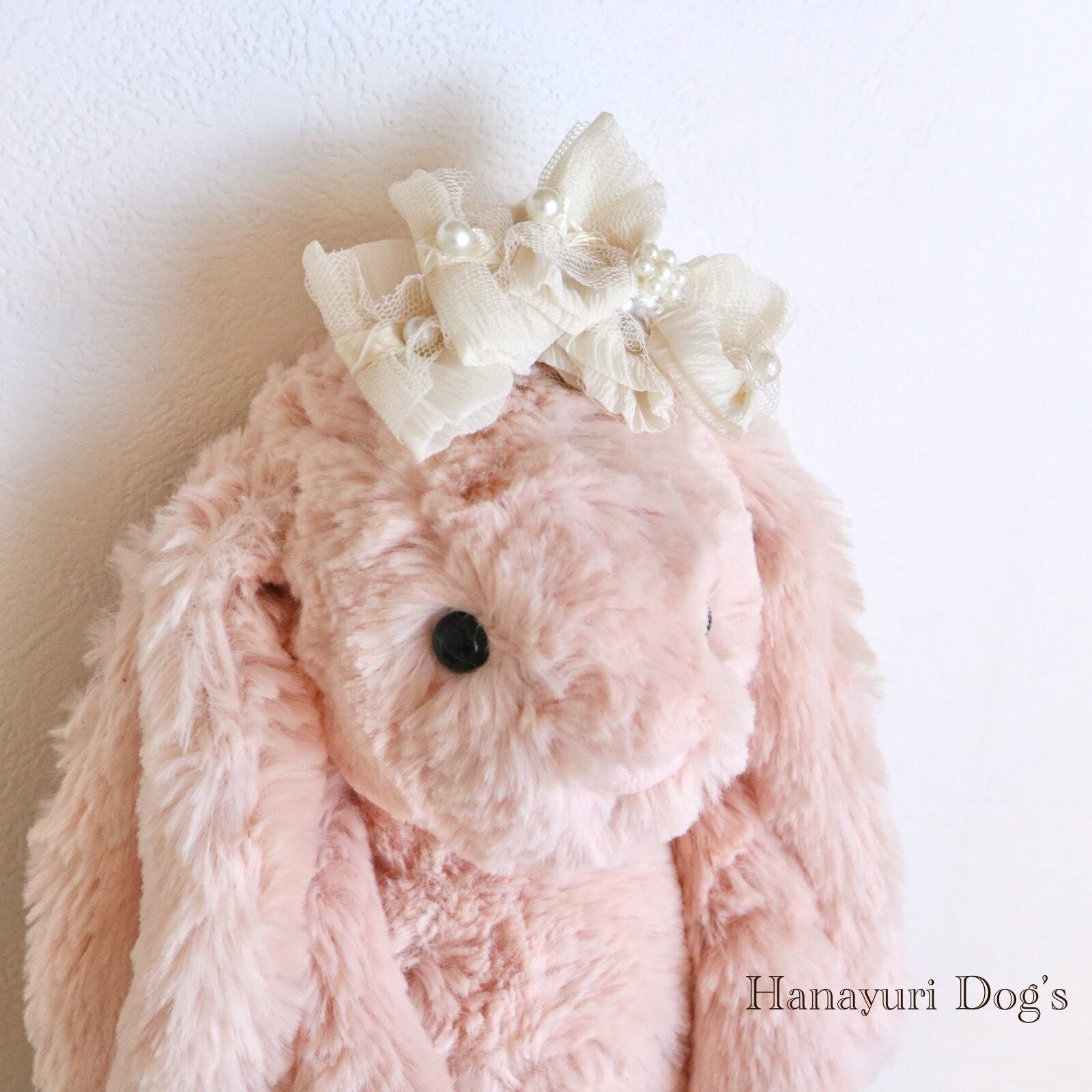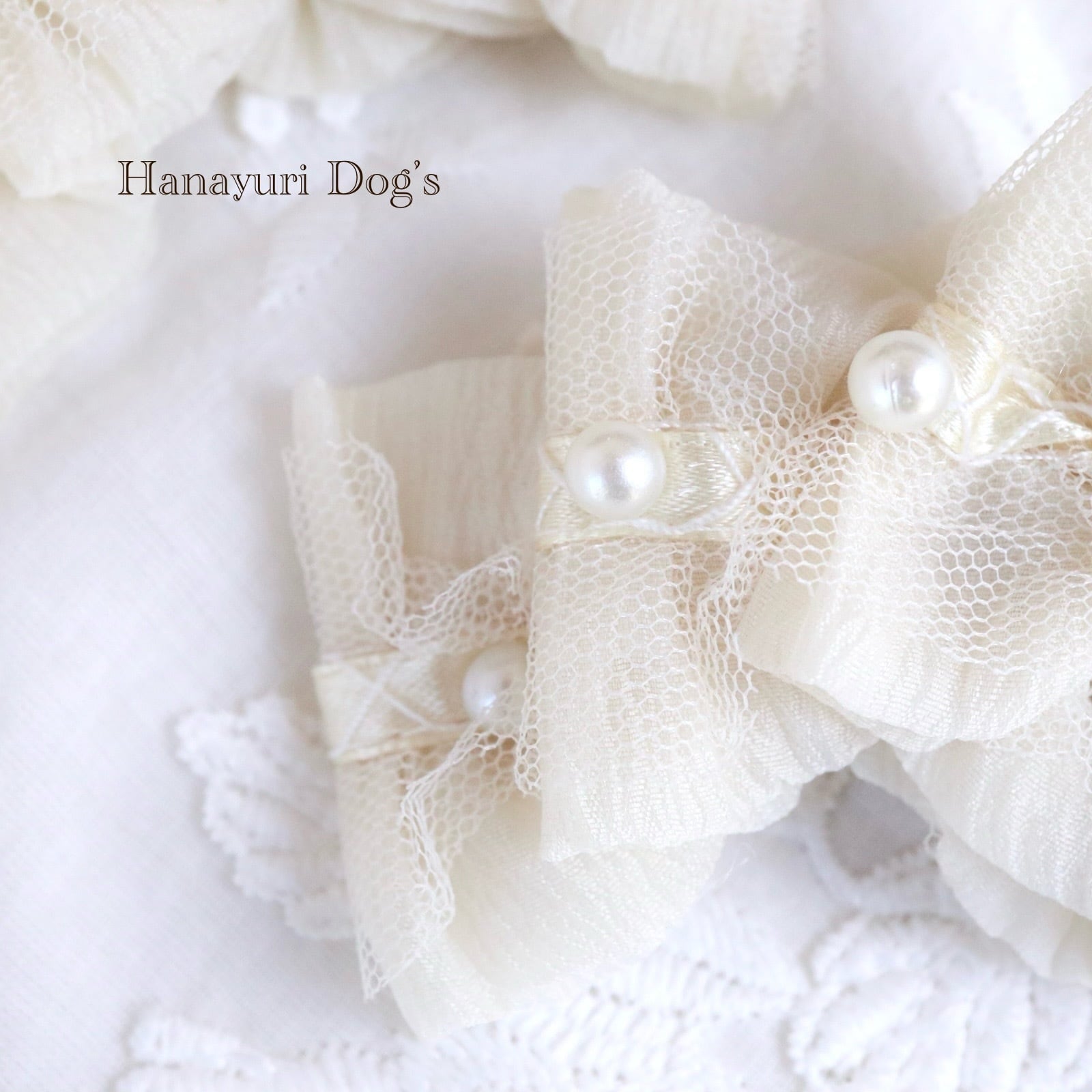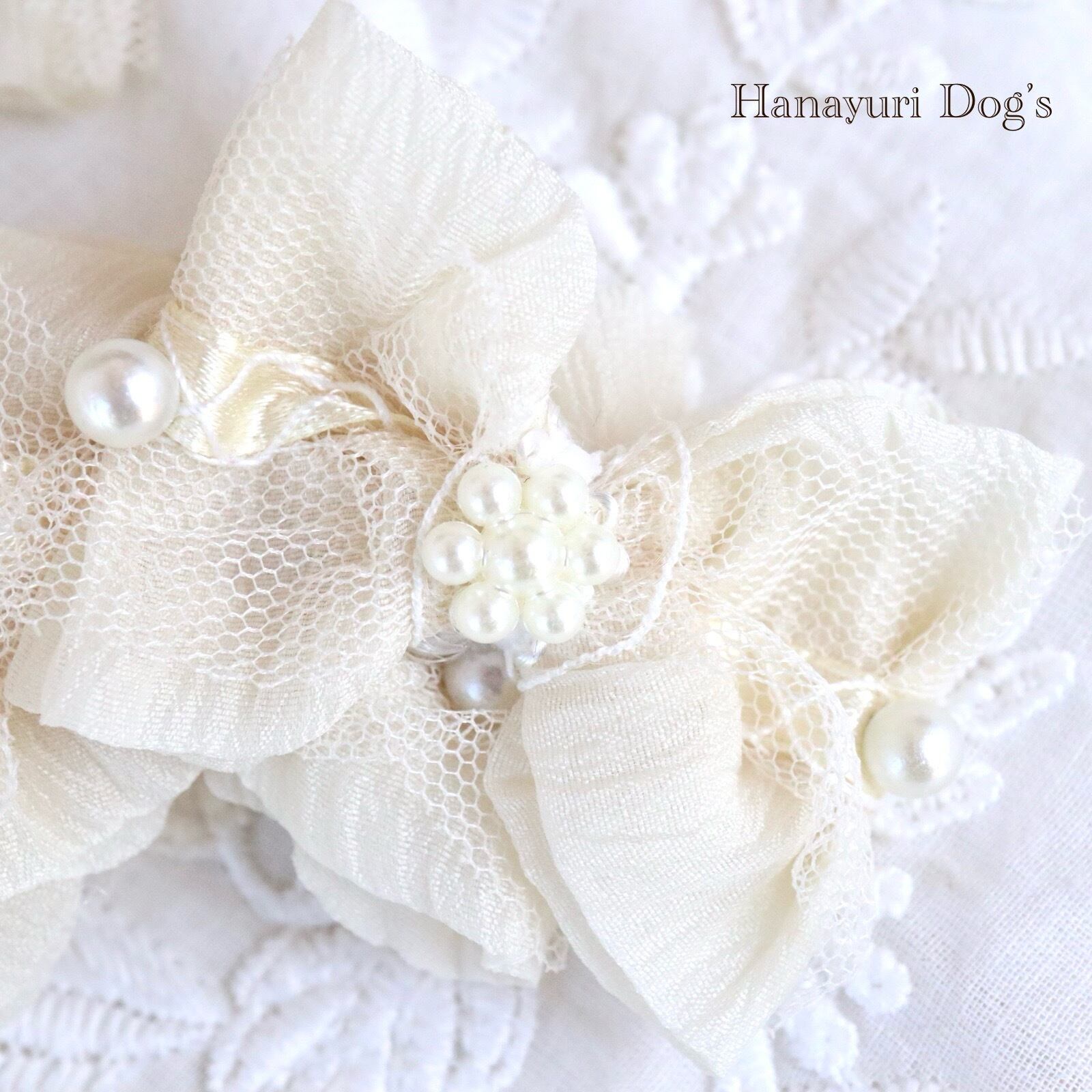 エレガントレースとパール オフホワイト 3連 犬バレッタ キッズ・子供リボン ペット ぬいぐるみ ヘアアクセサリー 髪飾り 普段着 うちの子記念日 誕生日 プレゼント オフ会 イベント 撮影 | Hanayuri Dog’s