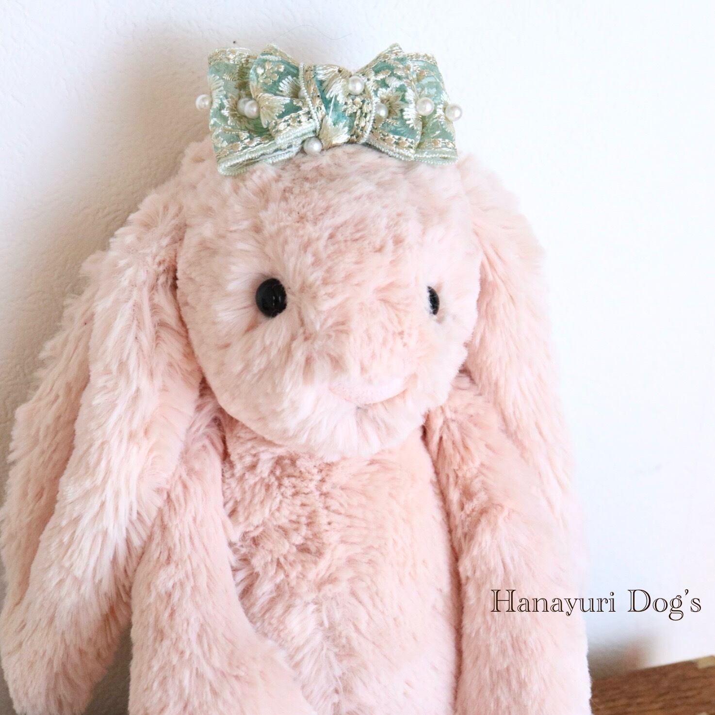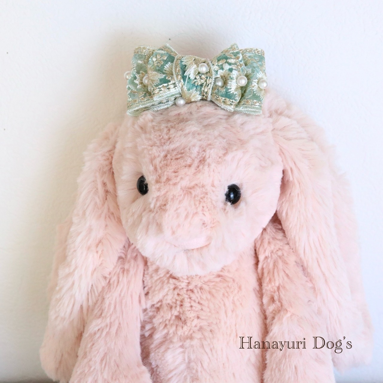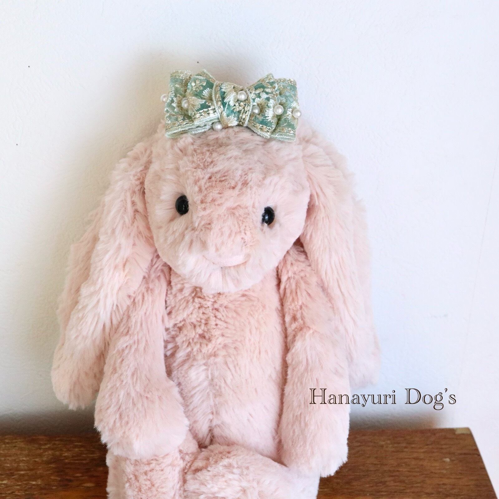 ブルーグリーン 刺繍とパール小 犬バレッタ キッズ・子供リボン ペット ぬいぐるみ ヘアアクセサリー 髪飾り 普段着 うちの子記念日 誕生日 プレゼント オフ会 イベント 撮影 | Hanayuri Dog’s