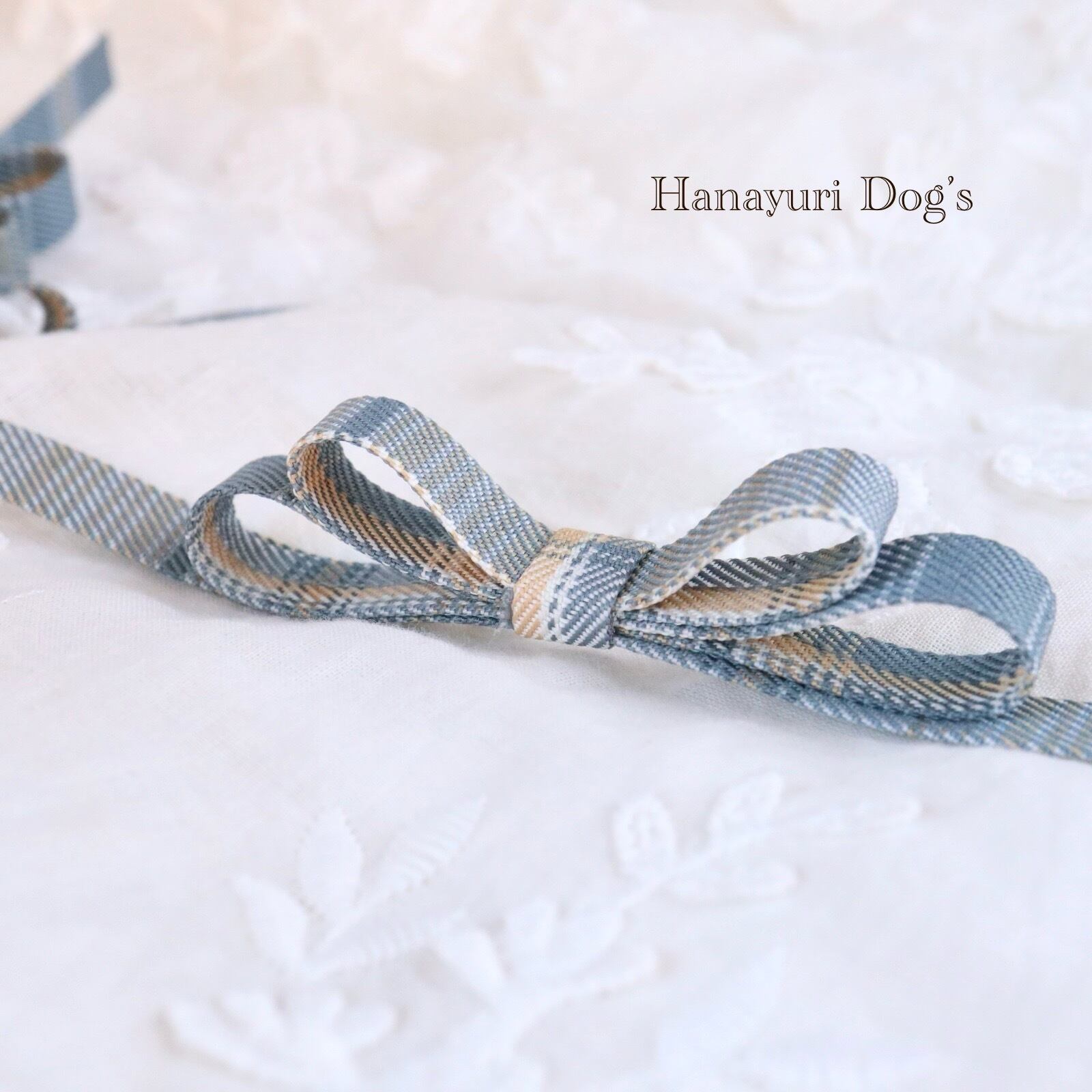 ブルーチェック 細身リボン 二重たれ付き 犬バレッタ キッズ・子供リボン ペット ぬいぐるみ ヘアアクセサリー 髪飾り 普段着 うちの子記念日 誕生日 プレゼント オフ会 イベント 撮影 | Hanayuri Dog’s