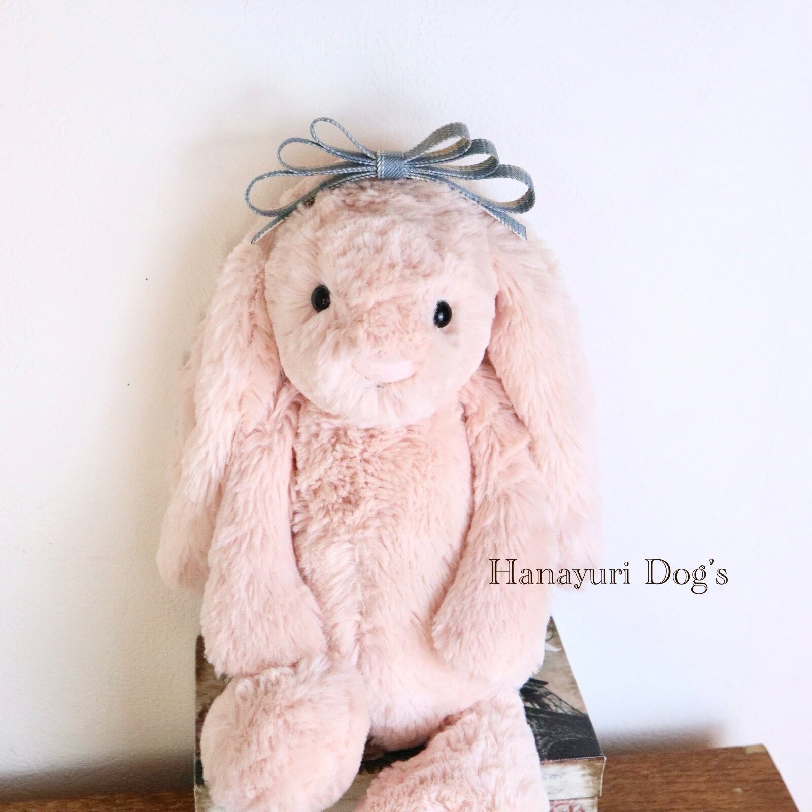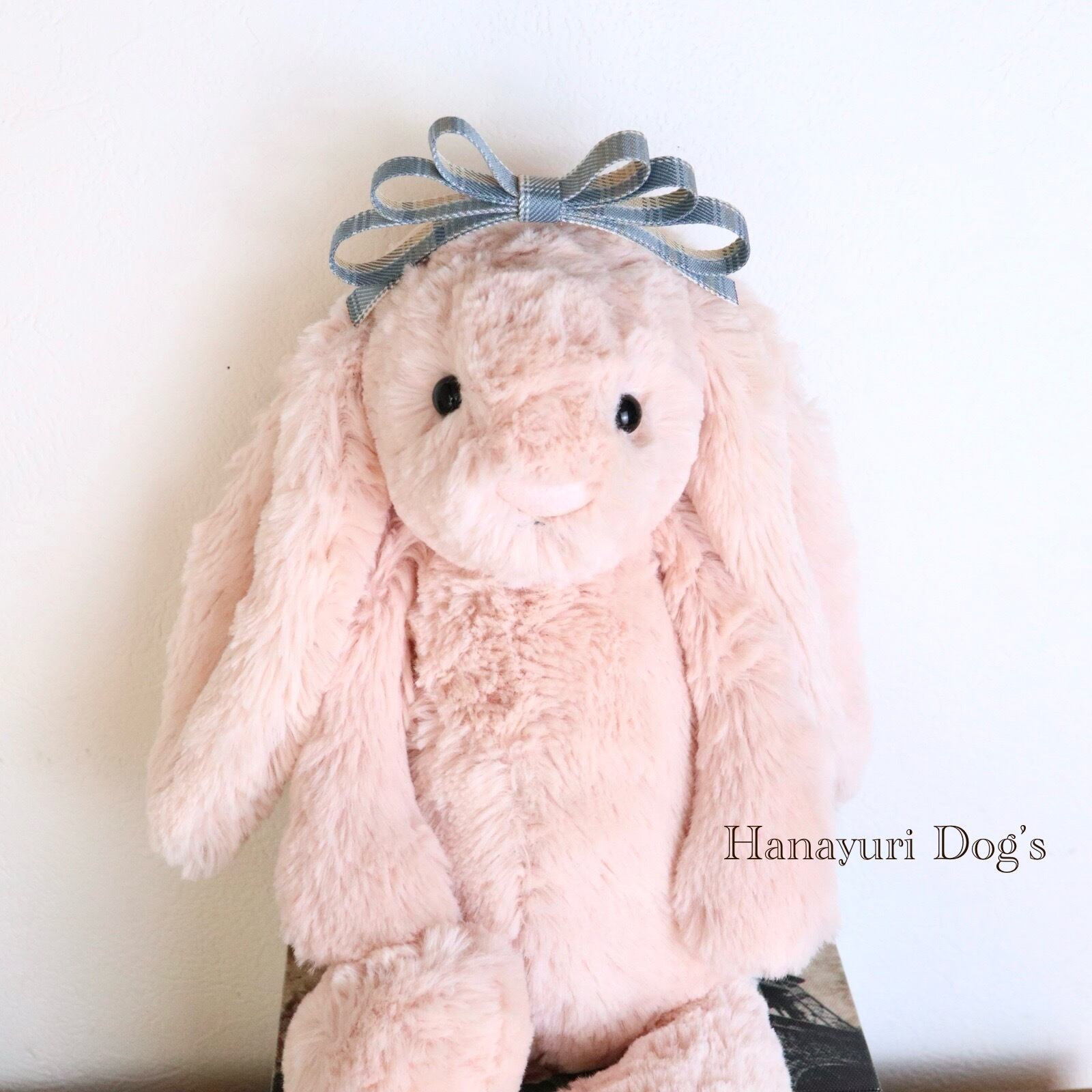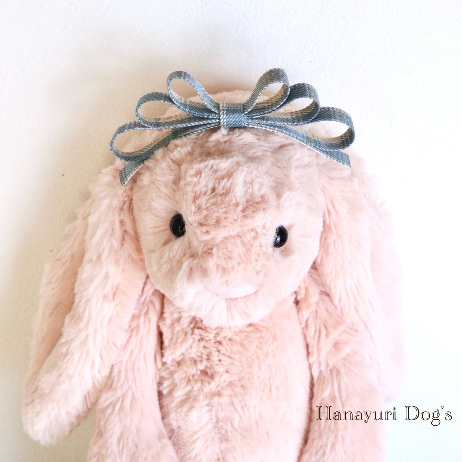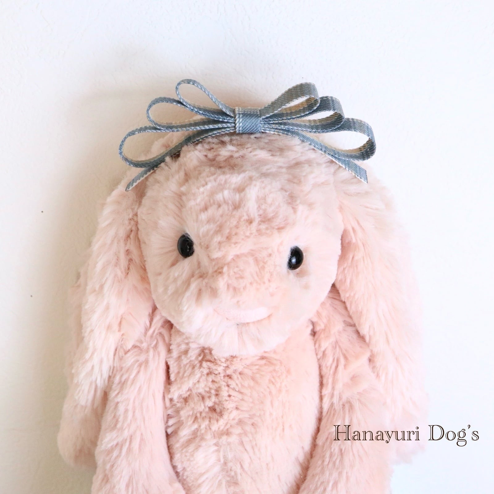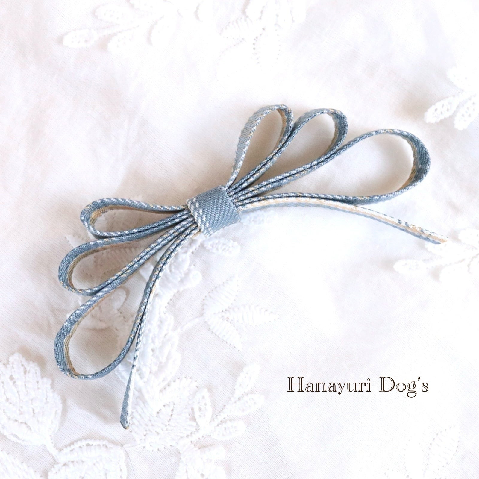 ブルーチェック 細身リボン三重たれ付き 犬バレッタ キッズ・子供リボン ペット ぬいぐるみ ヘアアクセサリー 髪飾り 普段着 うちの子記念日 誕生日 プレゼント オフ会 イベント 撮影 | Hanayuri Dog’s
