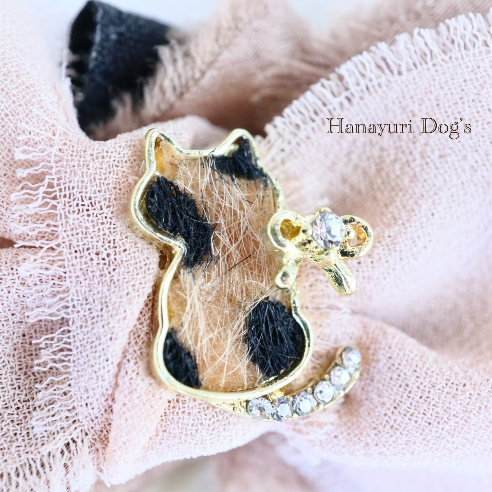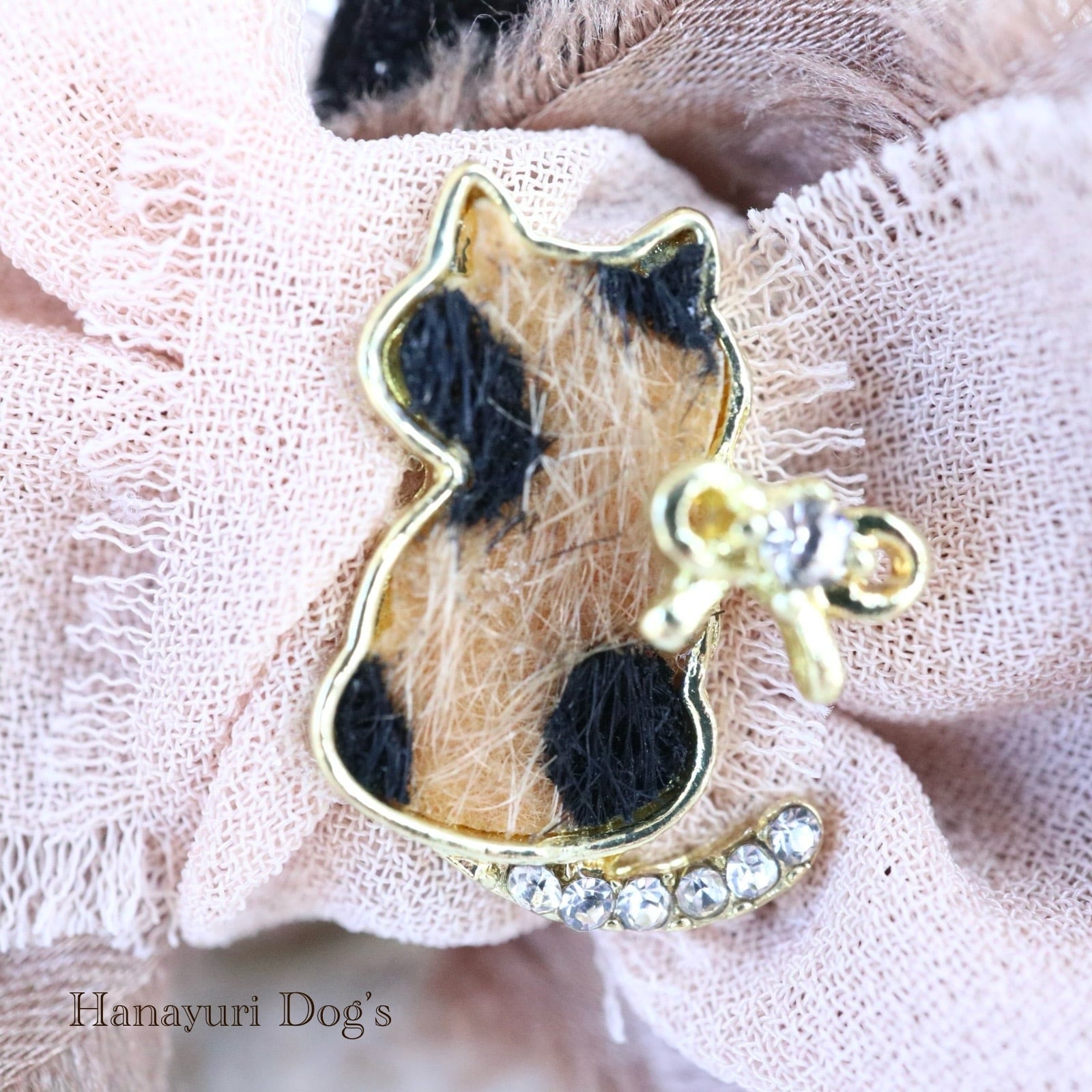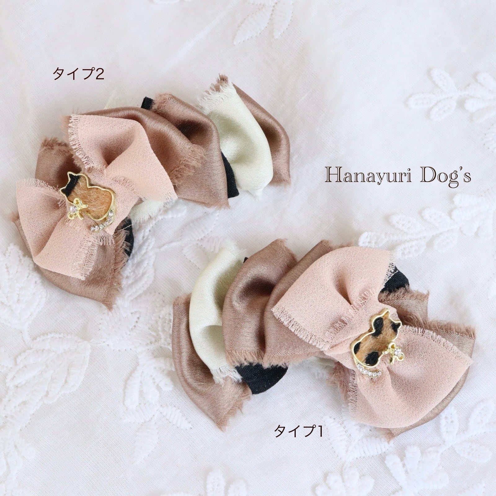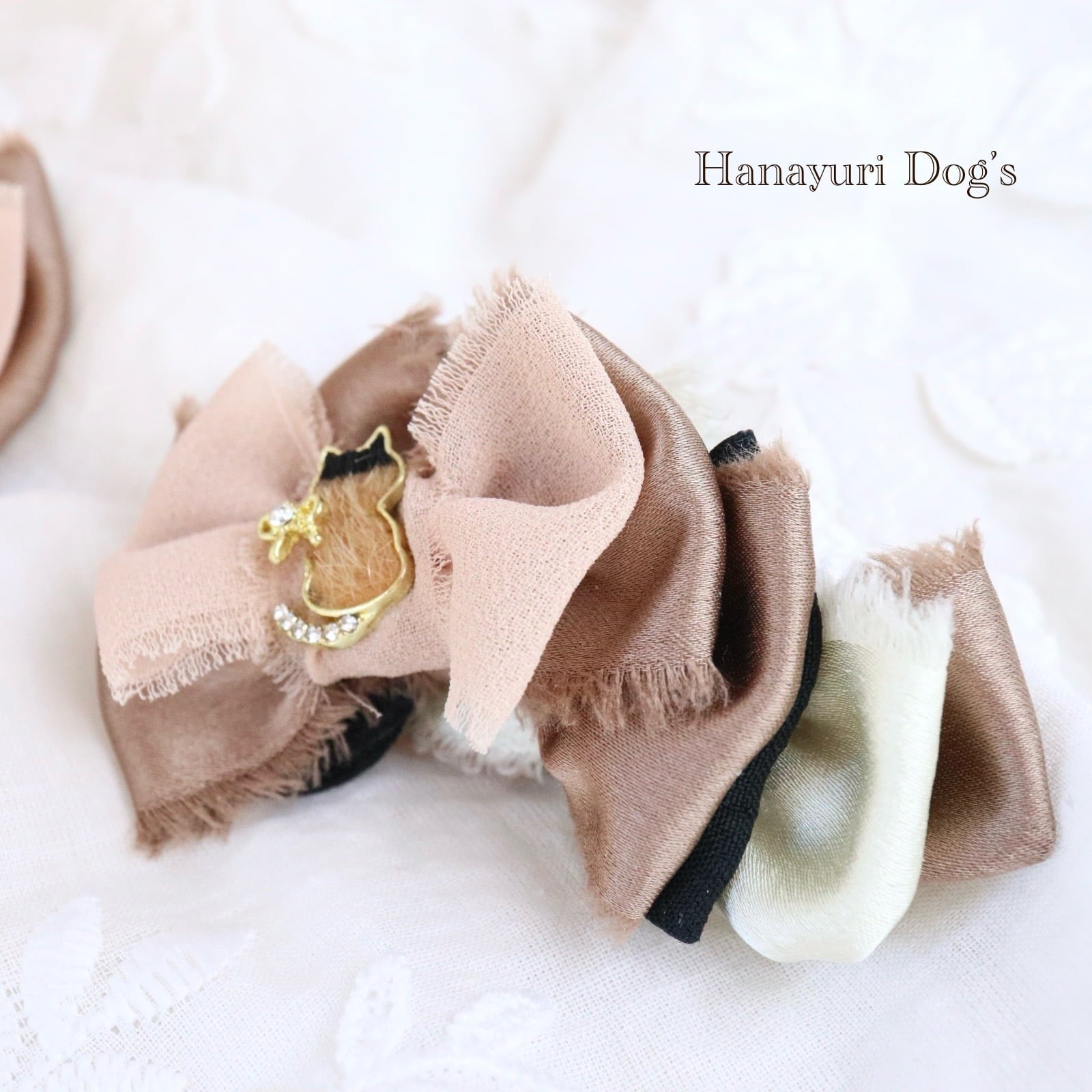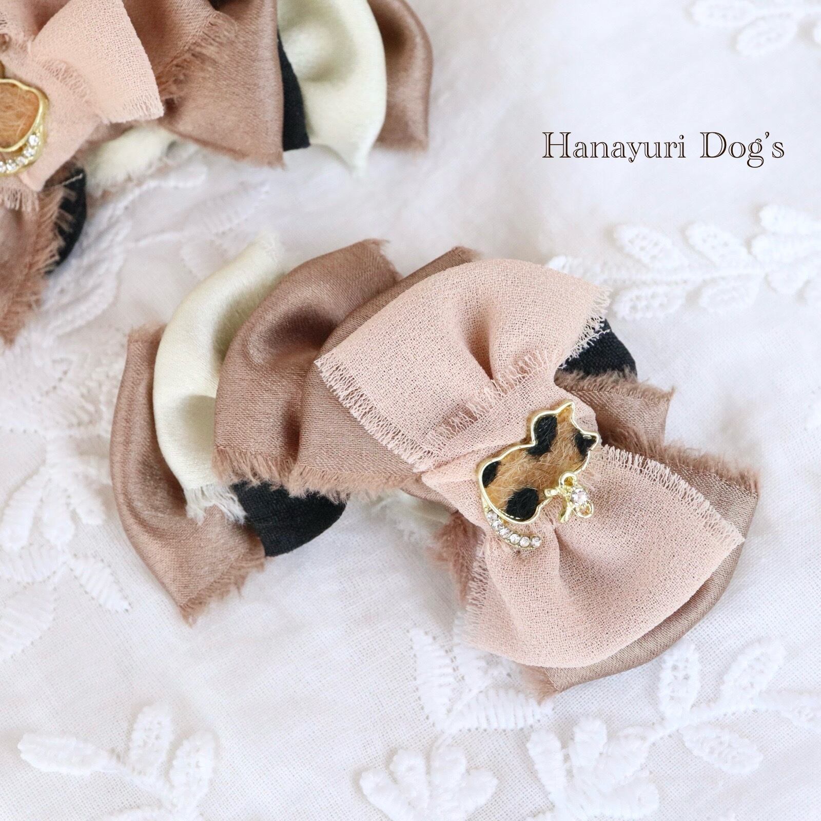 ハラコ猫 猫とリボンビジュー ブラウングラデーション 犬バレッタ キッズ・子供リボン ペット ぬいぐるみ ヘアアクセサリー 髪飾り 普段着 うちの子記念日 誕生日 プレゼント オフ会 イベント 撮影