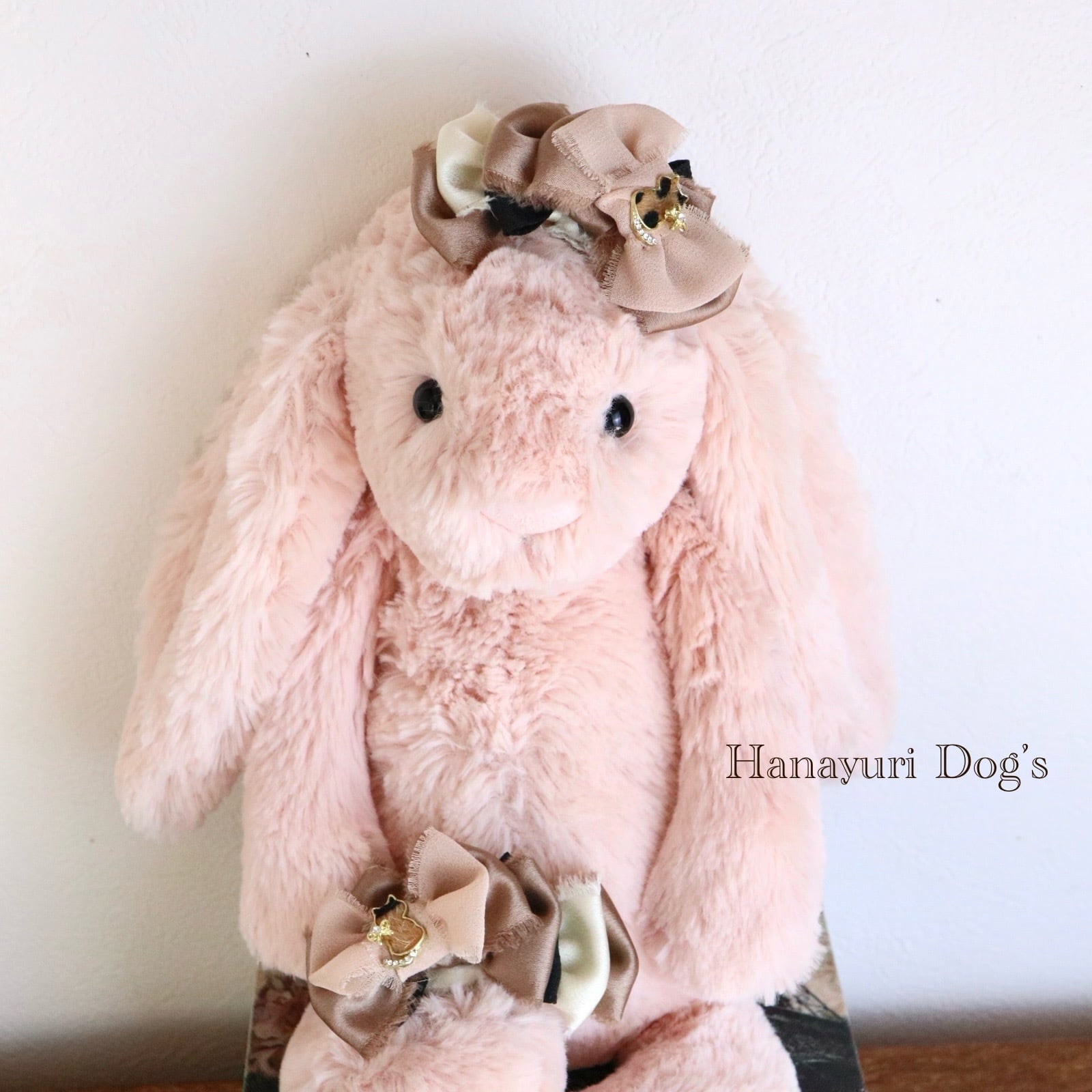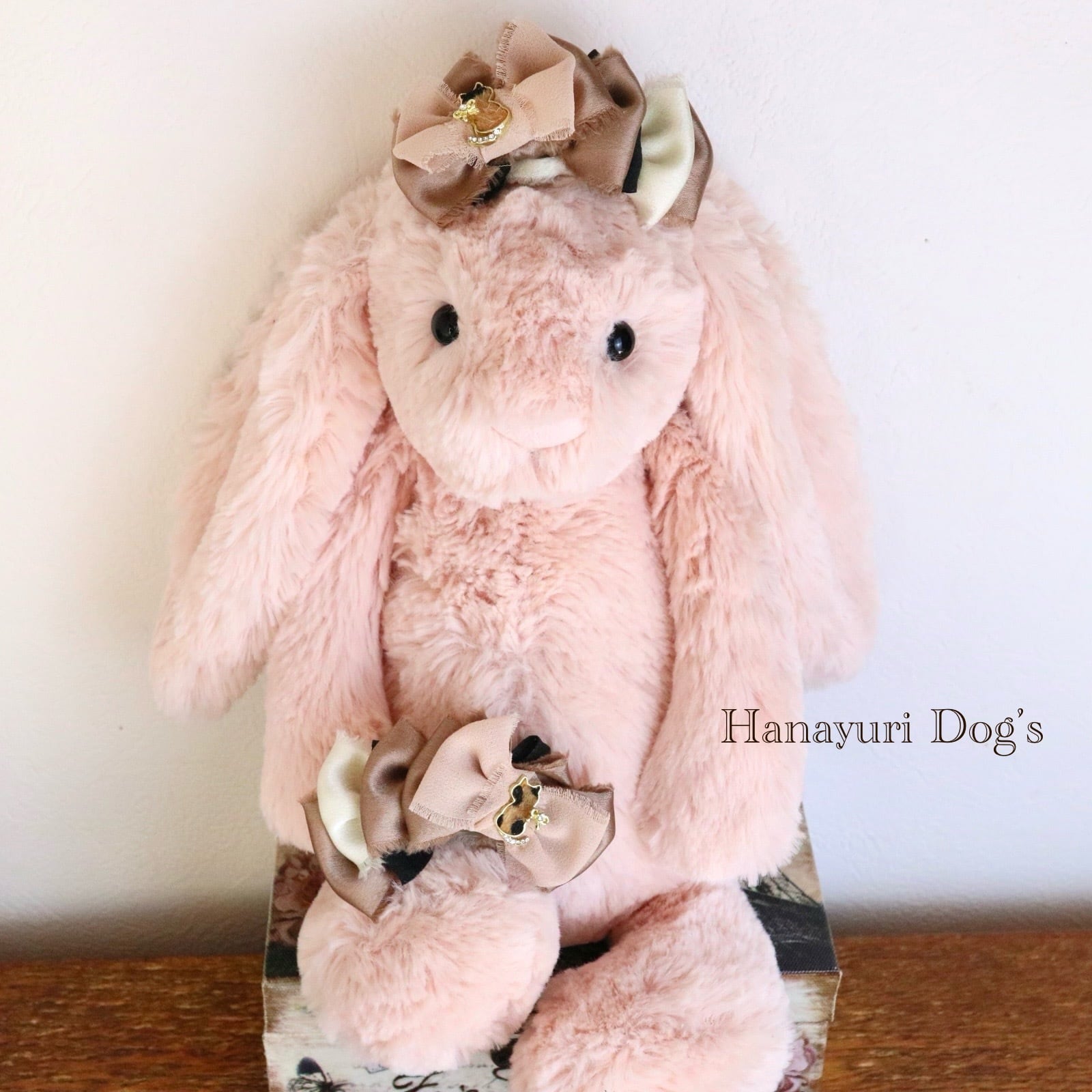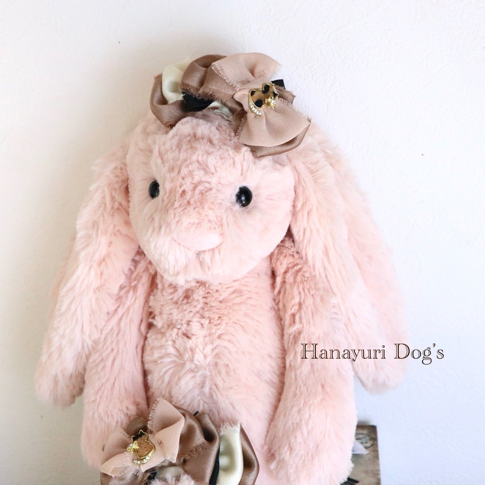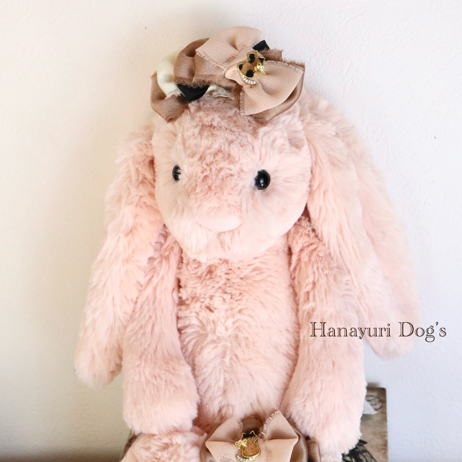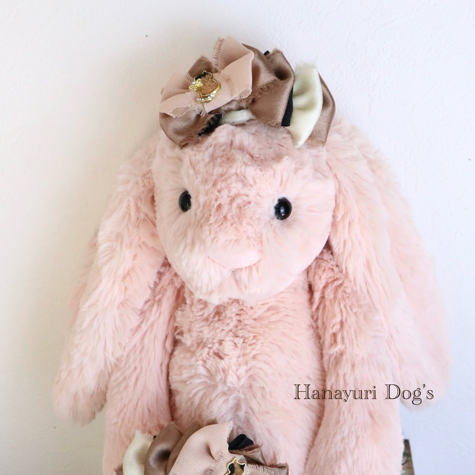 ハラコ猫 猫とリボンビジュー ブラウングラデーション 犬バレッタ キッズ・子供リボン ペット ぬいぐるみ ヘアアクセサリー 髪飾り 普段着 うちの子記念日 誕生日 プレゼント オフ会 イベント 撮影
