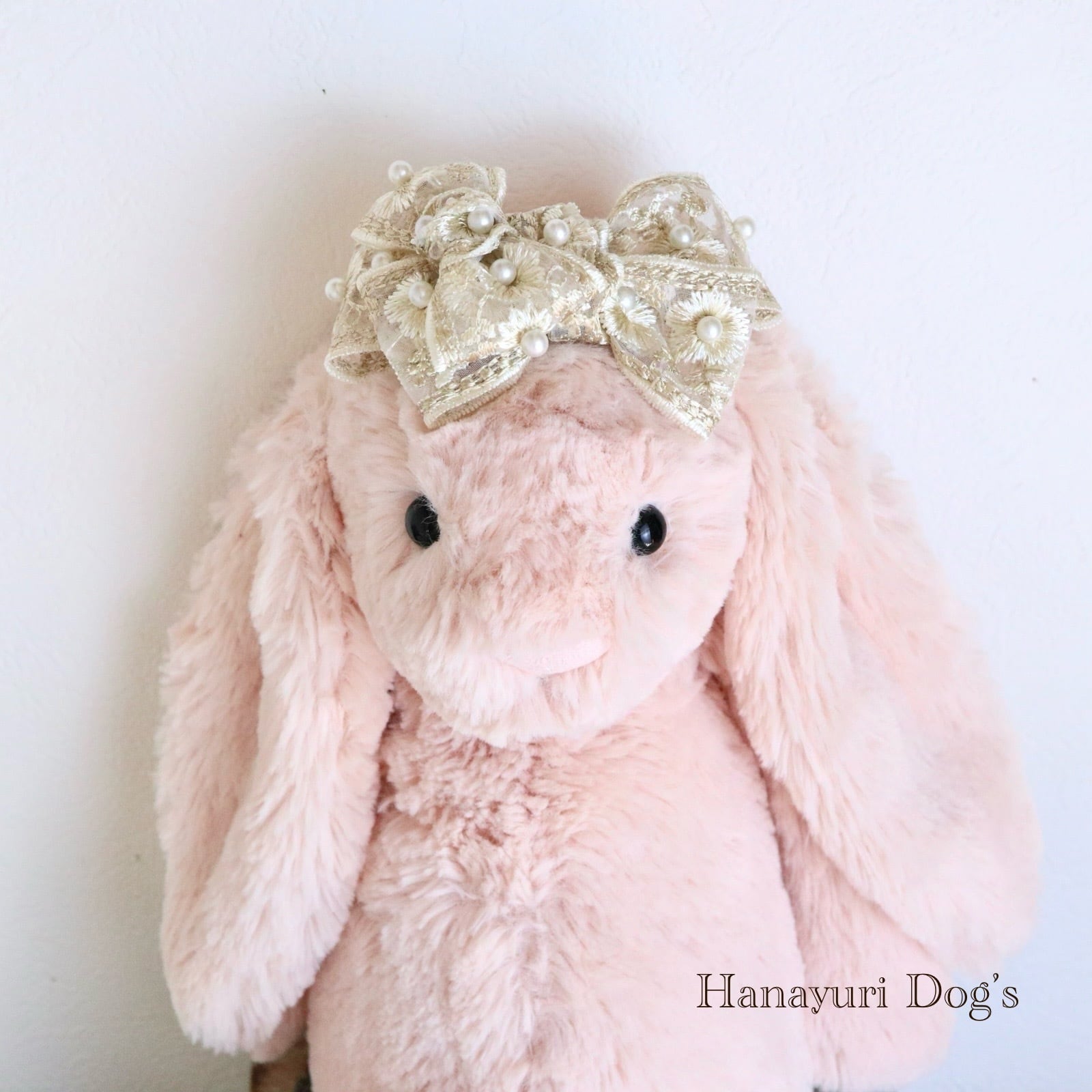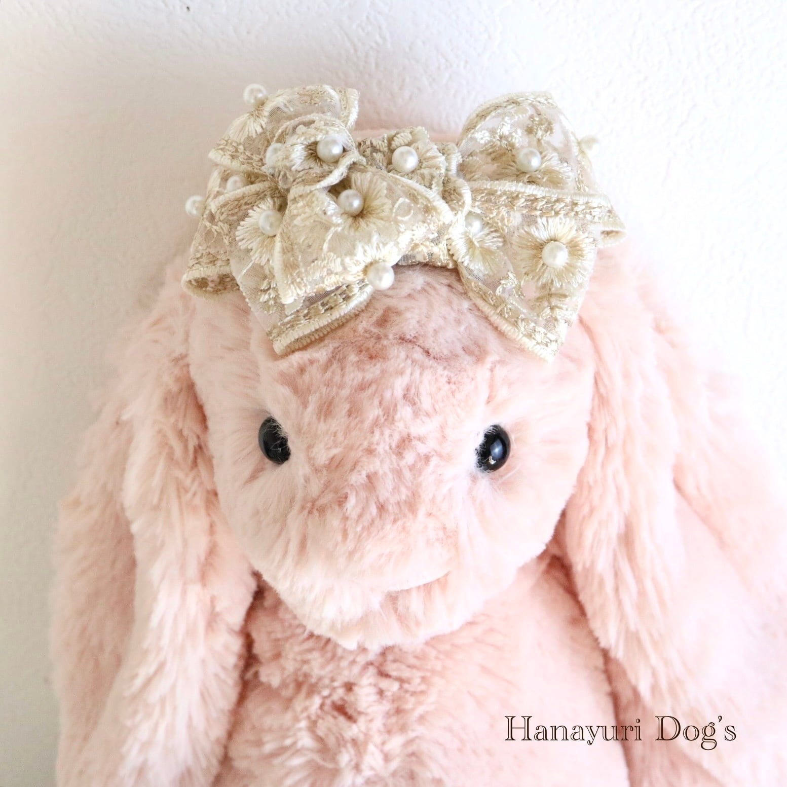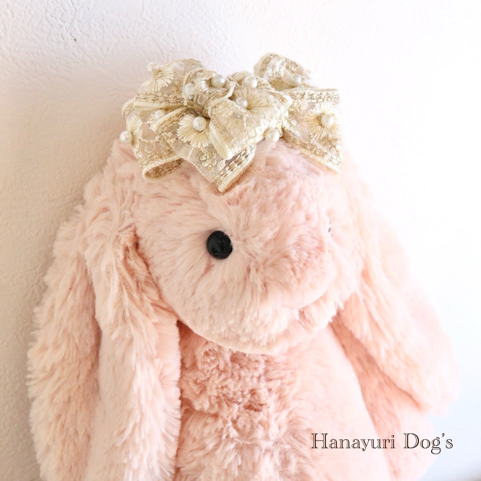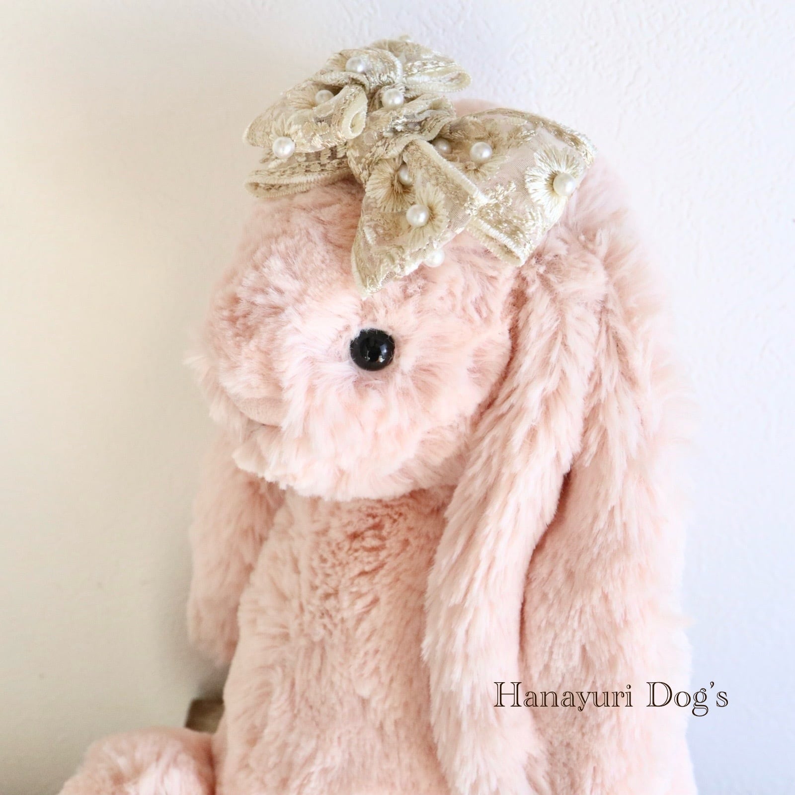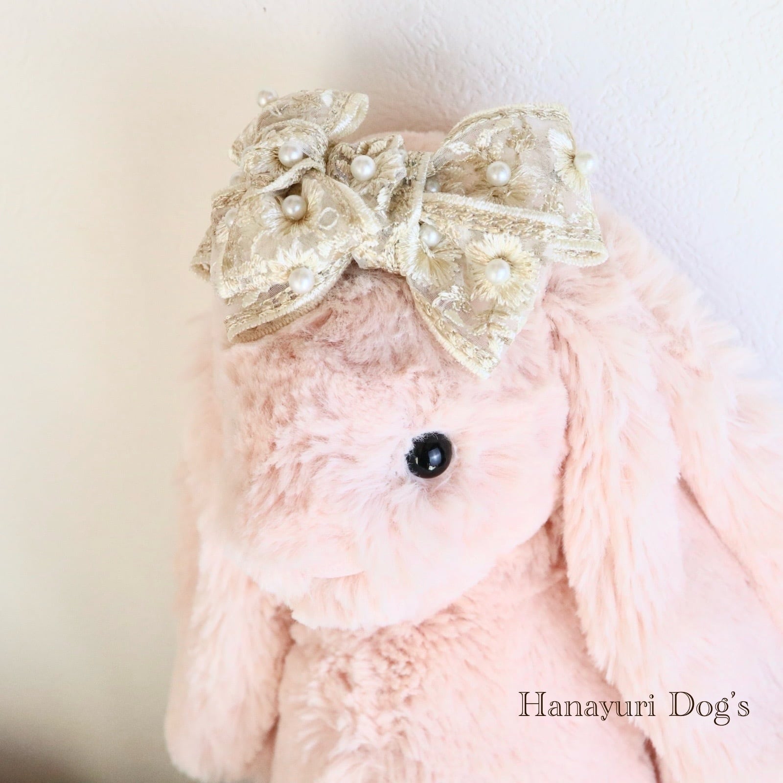 豪華刺繍レースと贅沢パール クラシカル ベージュ 犬バレッタ キッズ・子供リボン ペット ぬいぐるみ ヘアアクセサリー 髪飾り 普段着 うちの子記念日 誕生日 プレゼント オフ会 イベント 撮影