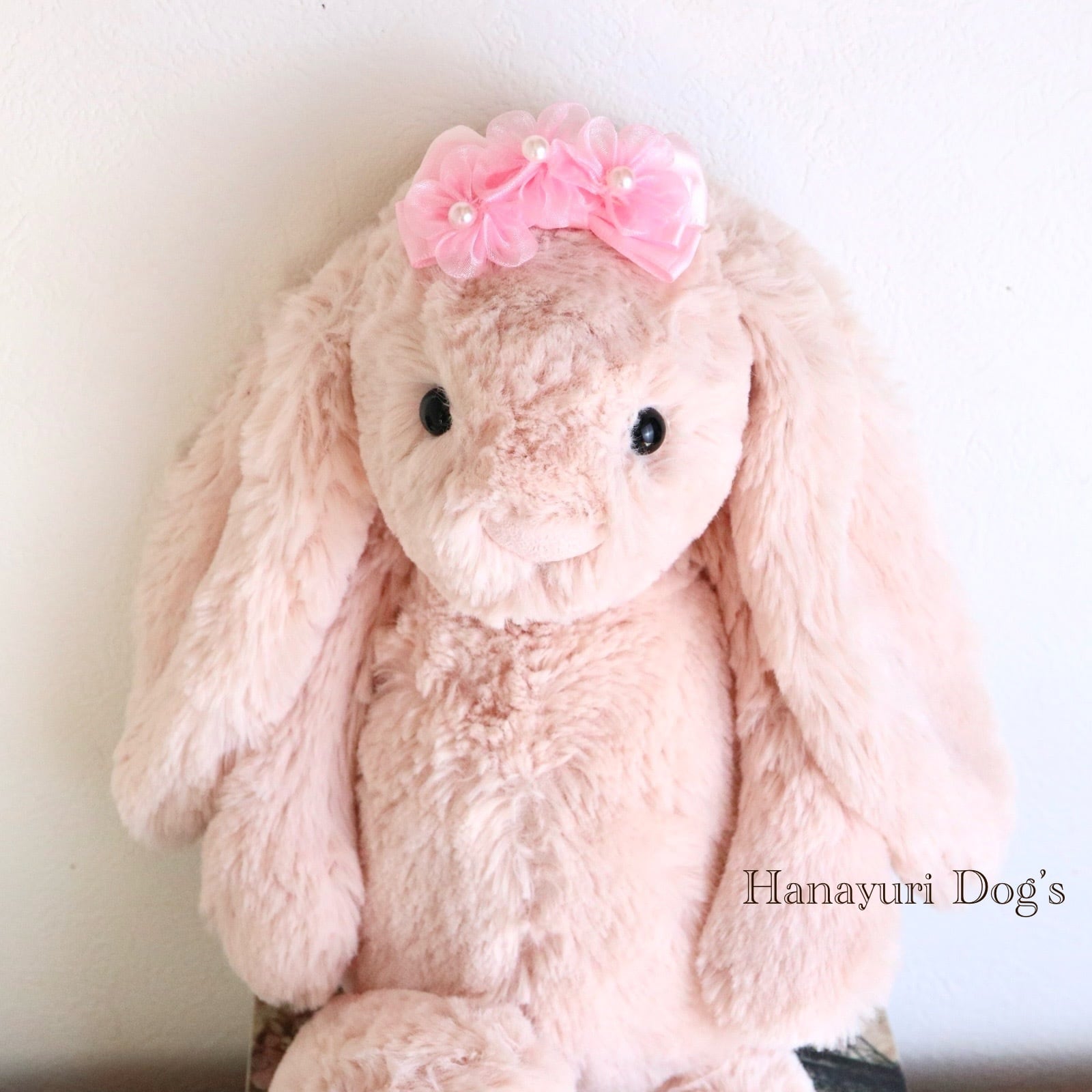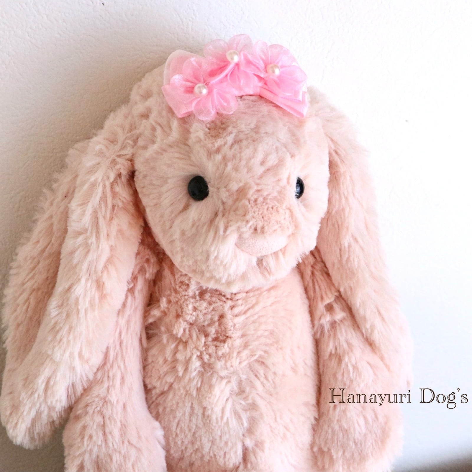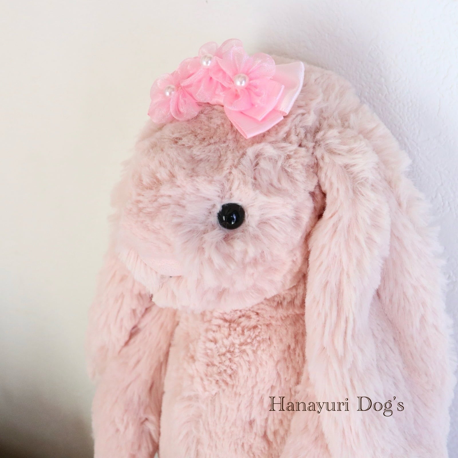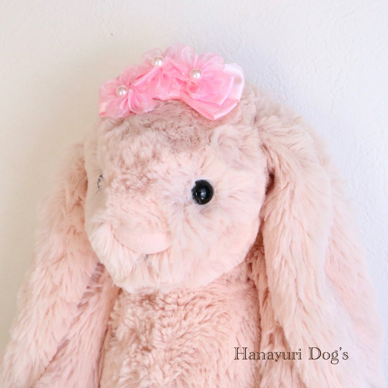 ピンクオーガンジーの花 パール 格子柄 お花見 犬バレッタ キッズ・子供リボン ペット ぬいぐるみ ヘアアクセサリー 髪飾り 普段着 うちの子記念日 誕生日 プレゼント オフ会 イベント 撮影
