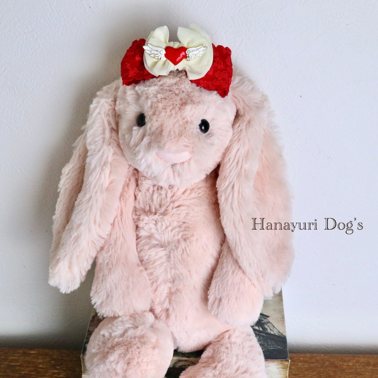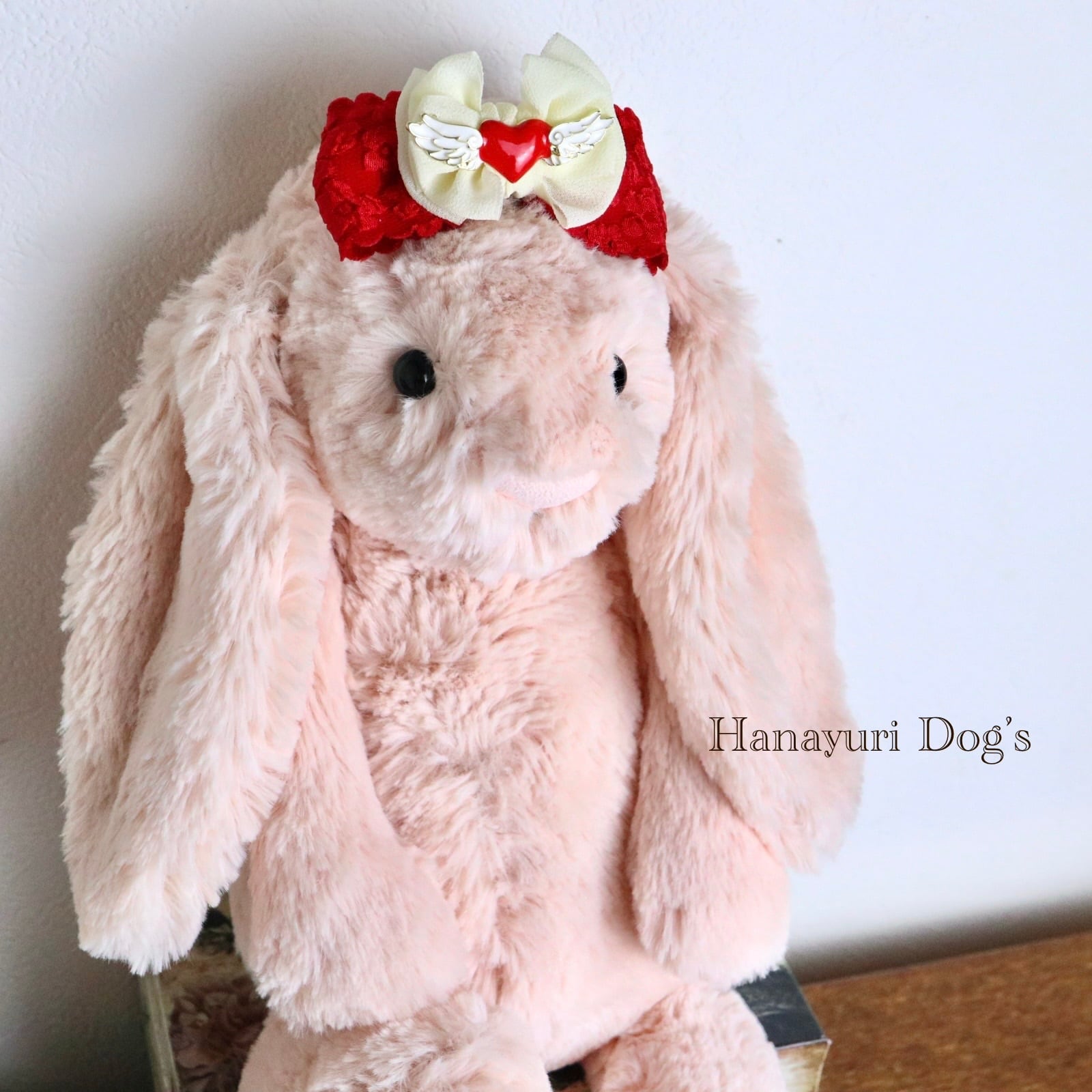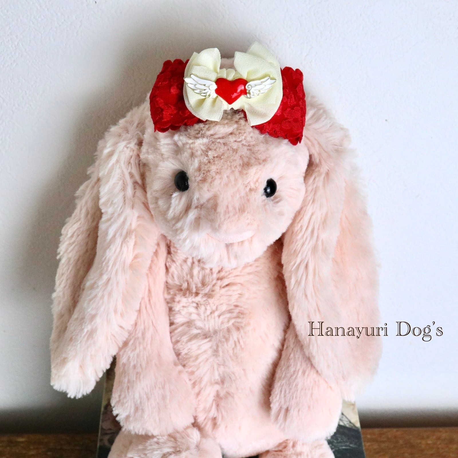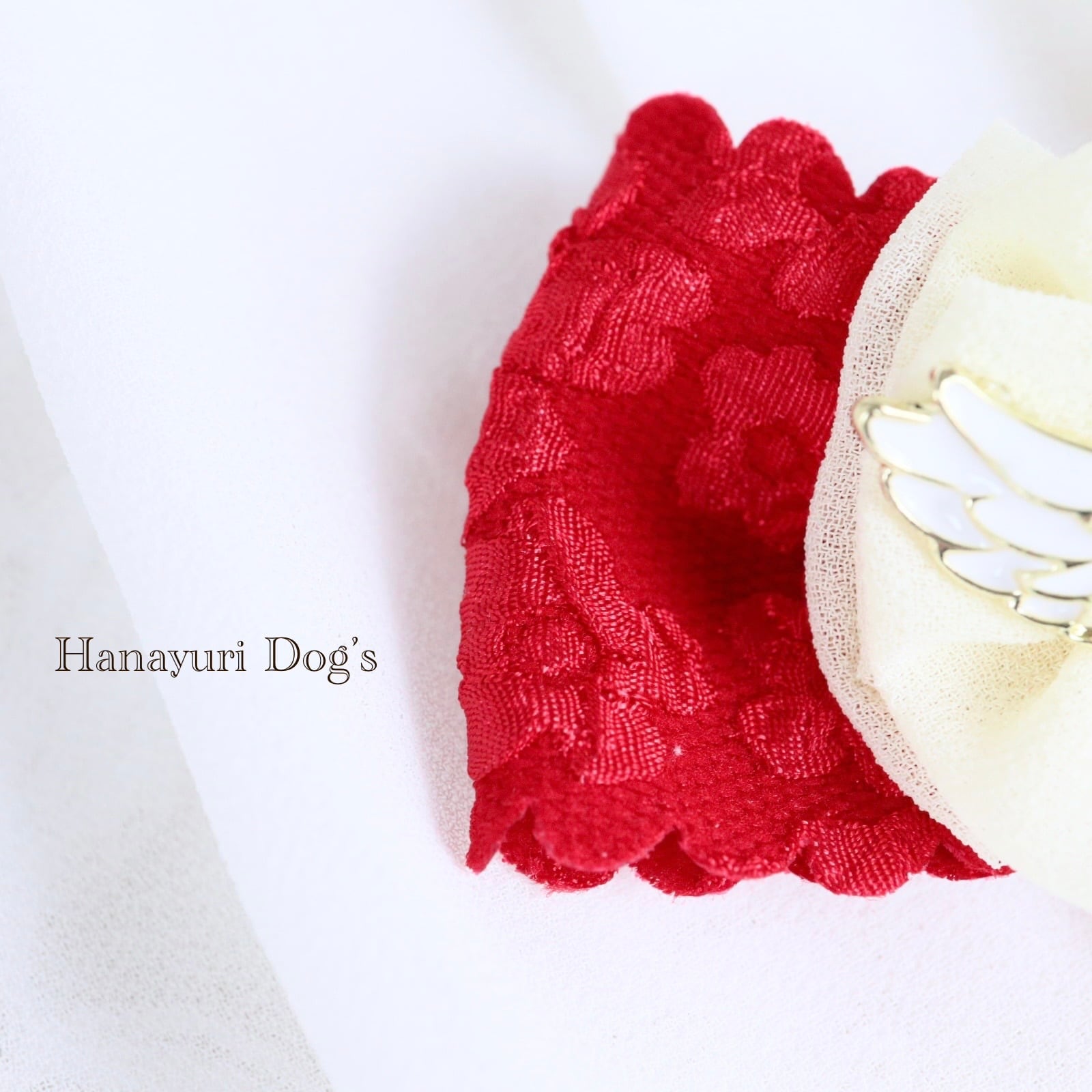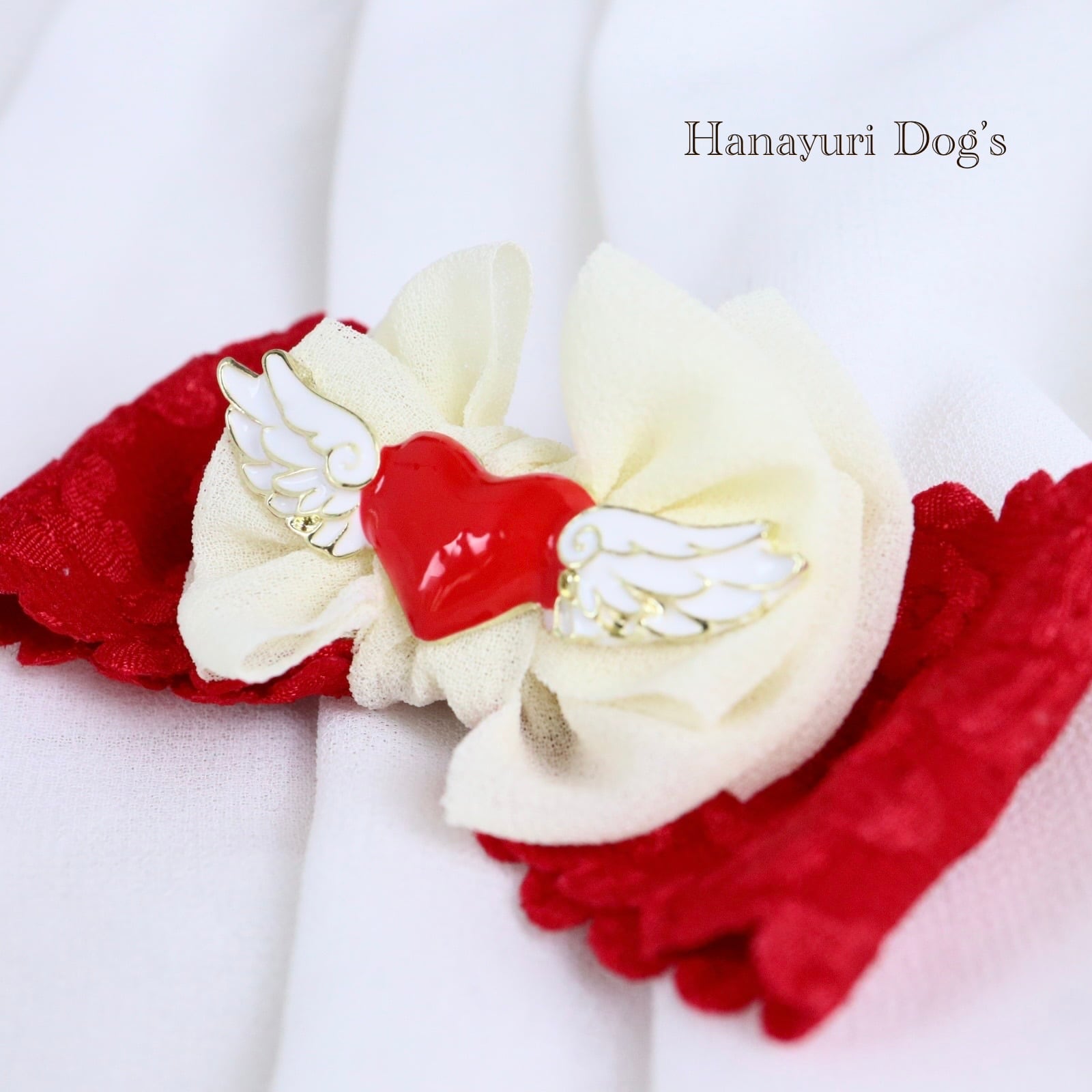 ハートエンジェル 天使 羽 赤×白 バレンタインデー 犬バレッタ キッズ・子供リボン ペット ぬいぐるみ ヘアアクセサリー 髪飾り 普段着 うちの子記念日 誕生日 プレゼント オフ会 イベント 撮影