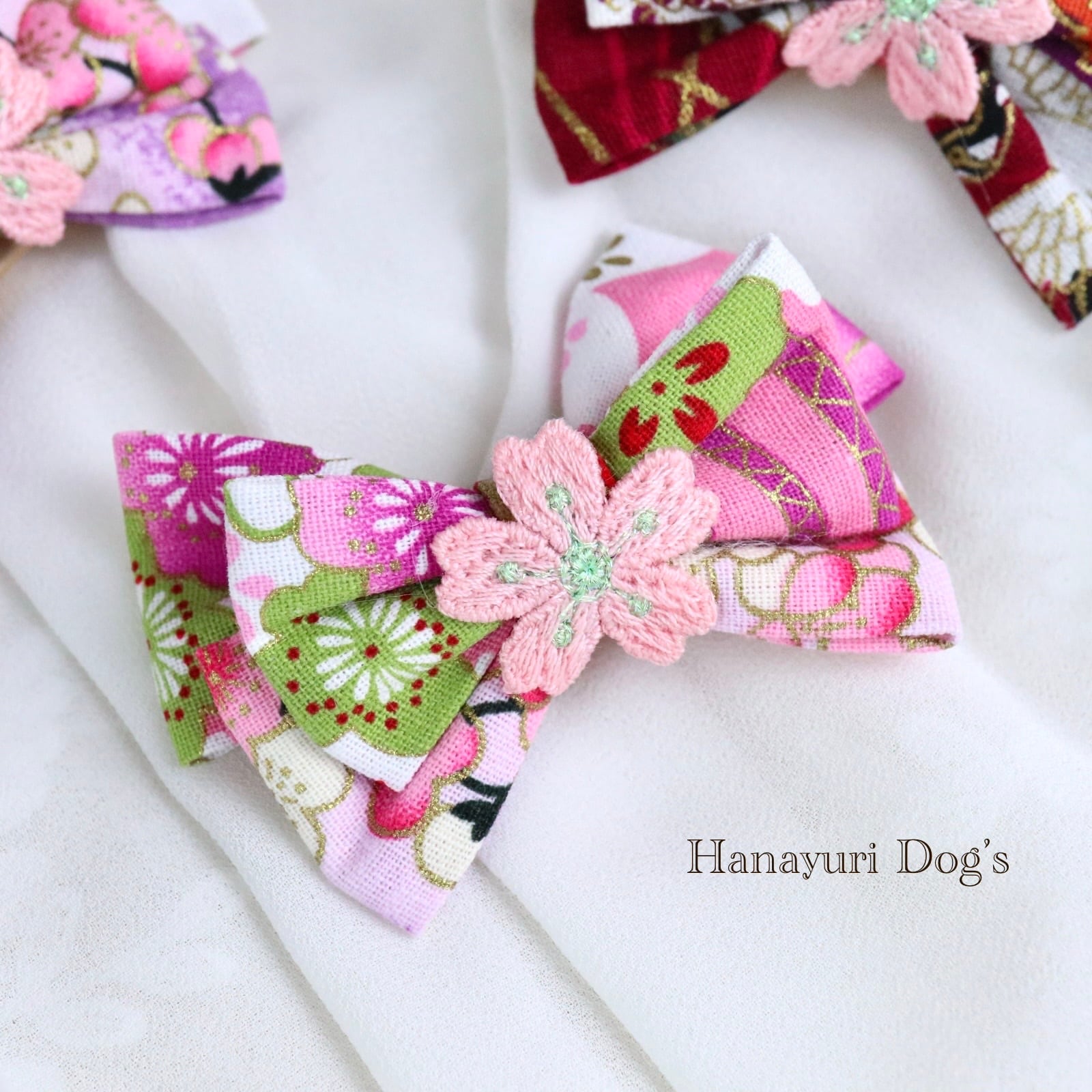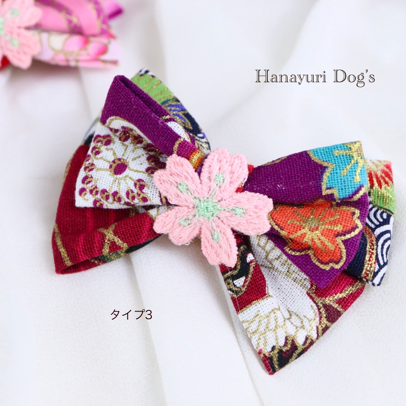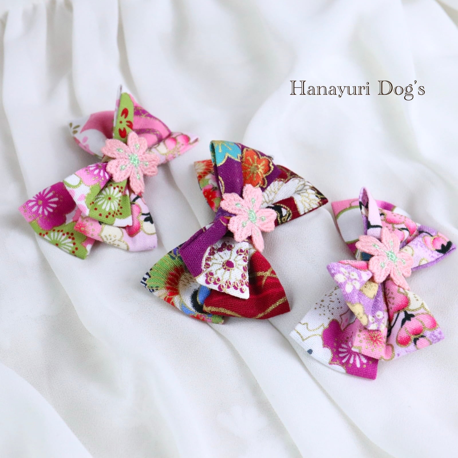和風 3種1P 桜 梅 桃 吉祥 ひな祭り 着物コーデ 犬バレッタ キッズ・子供リボン ペット ぬいぐるみ ヘアアクセサリー 髪飾り 普段着 うちの子記念日 誕生日 プレゼント オフ会 イベント 撮影