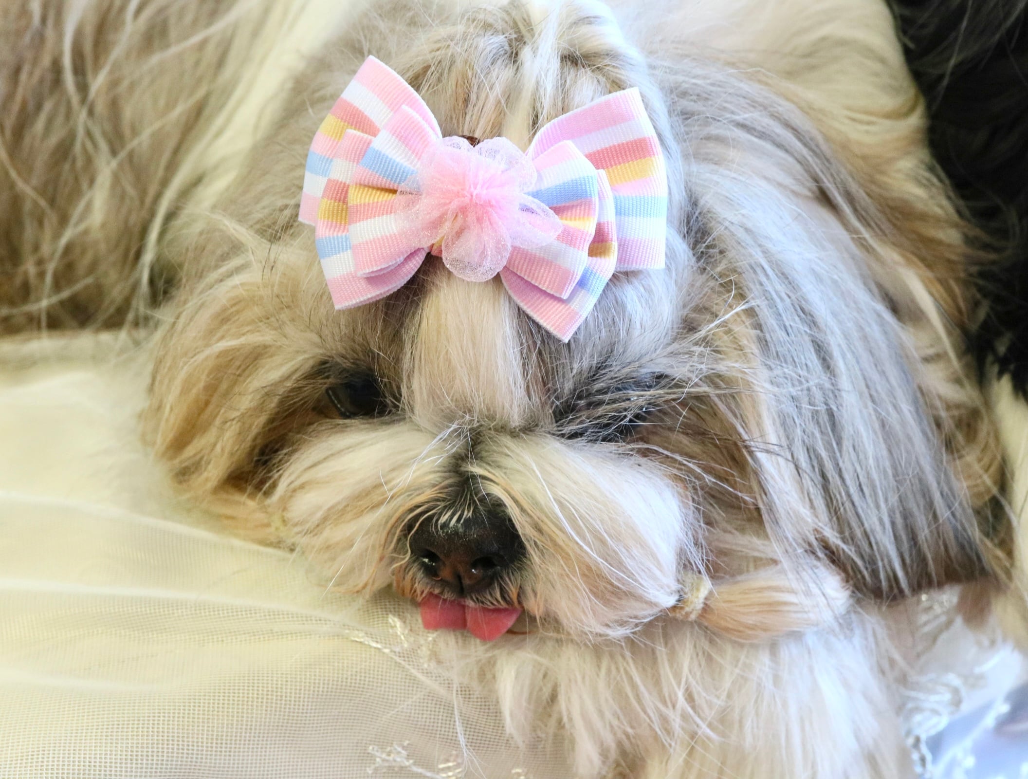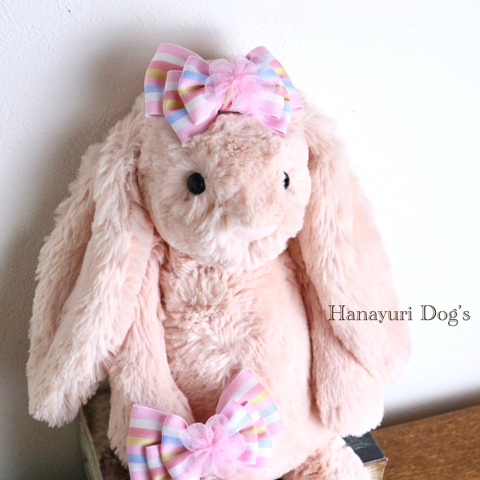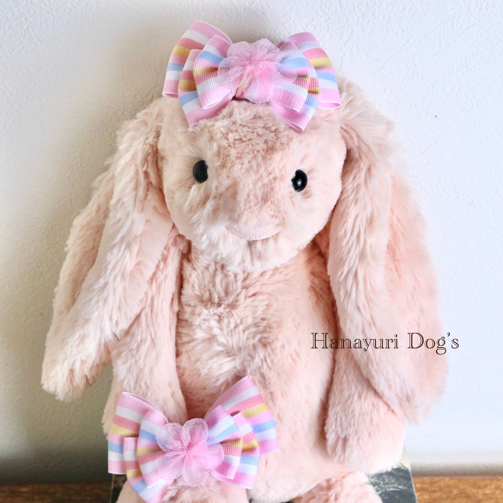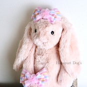 パステルストライプ チュールの花 ひな祭り 桜 春 犬バレッタ キッズ・子供リボン ペット ぬいぐるみ ヘアアクセサリー 髪飾り 普段着 うちの子記念日 誕生日 プレゼント オフ会 イベント 撮影