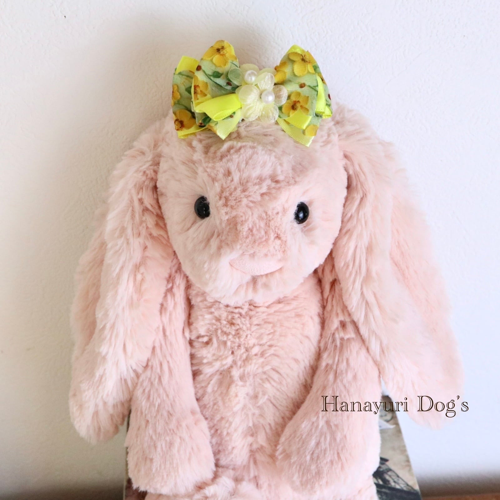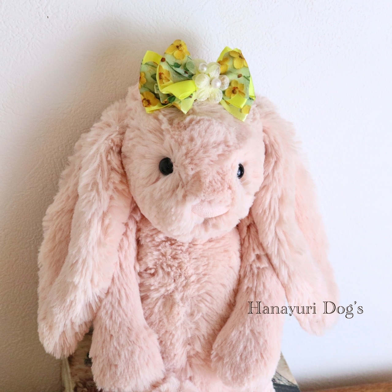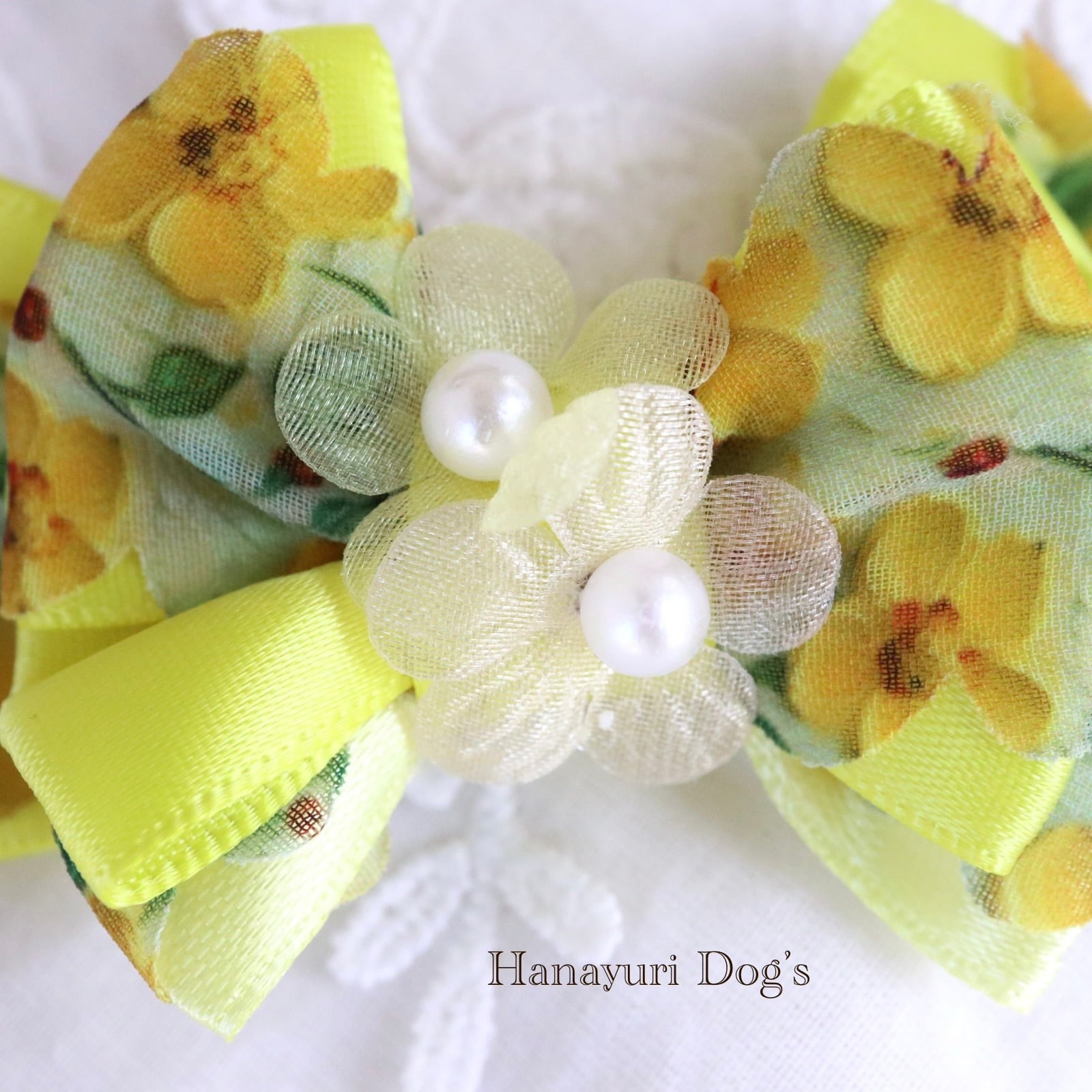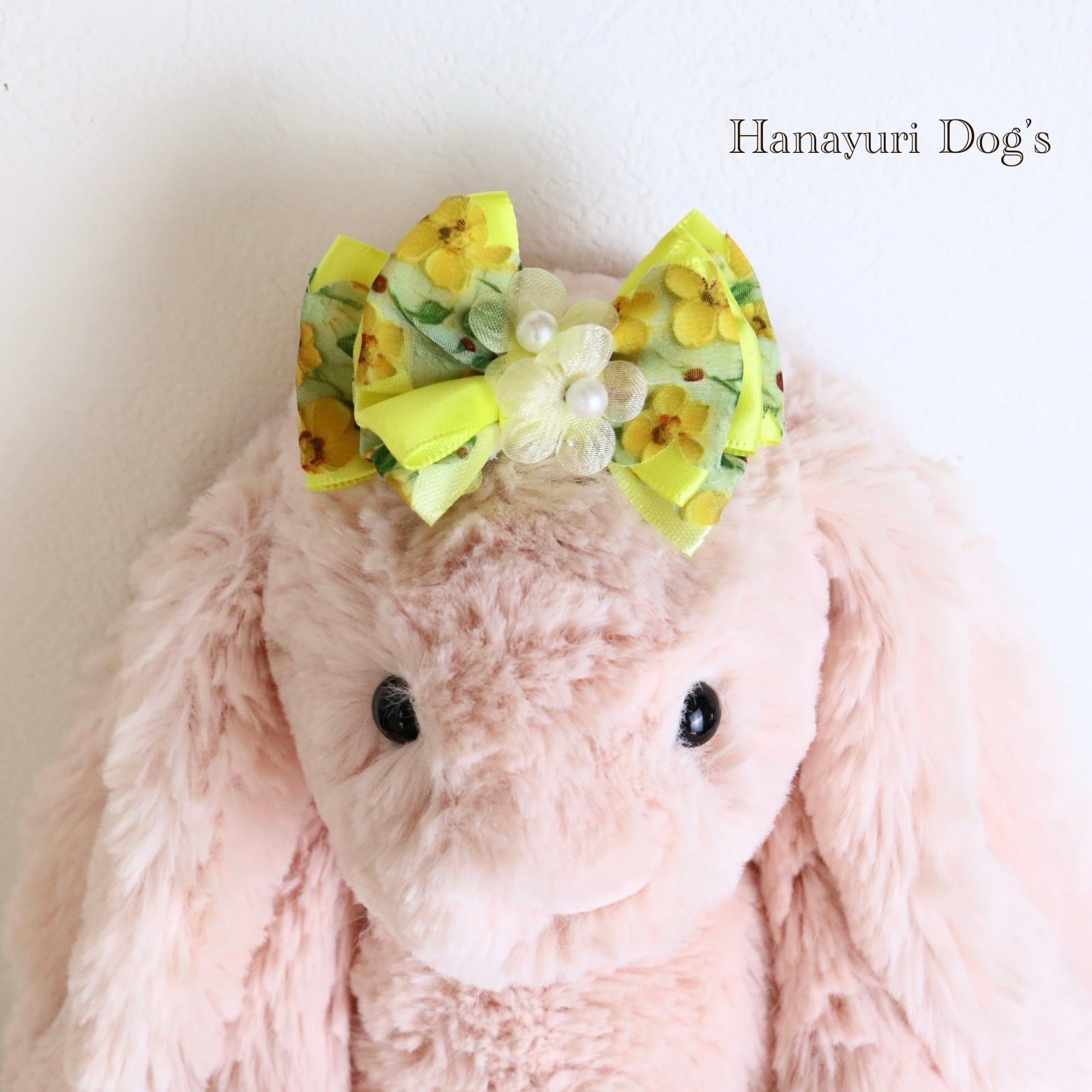 フローラルイエロー ミモザイエロー 花 パール 犬バレッタ キッズ・子供リボン ペット ぬいぐるみ ヘアアクセサリー 髪飾り 普段着 うちの子記念日 誕生日 プレゼント オフ会 イベント 撮影