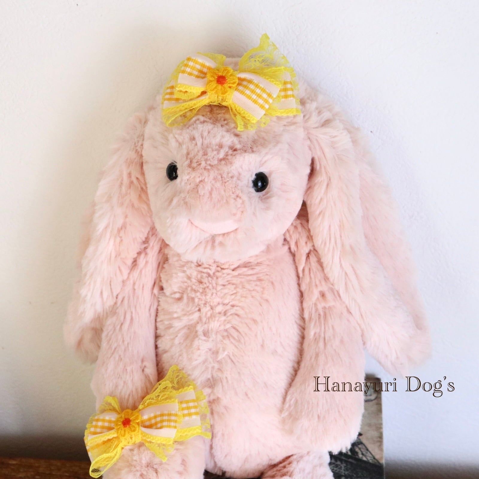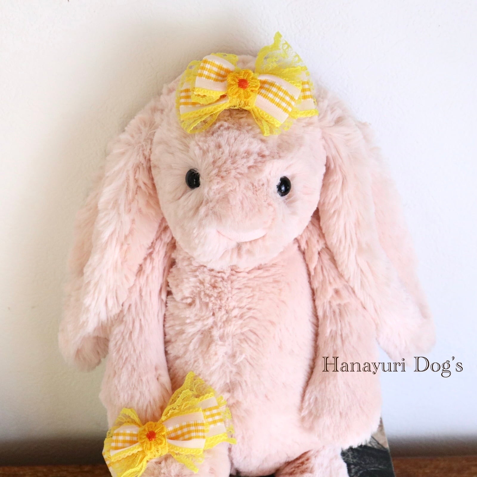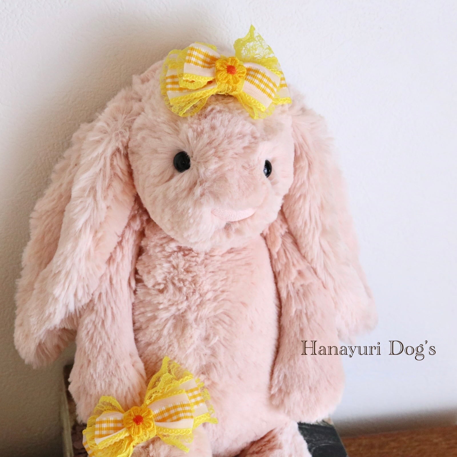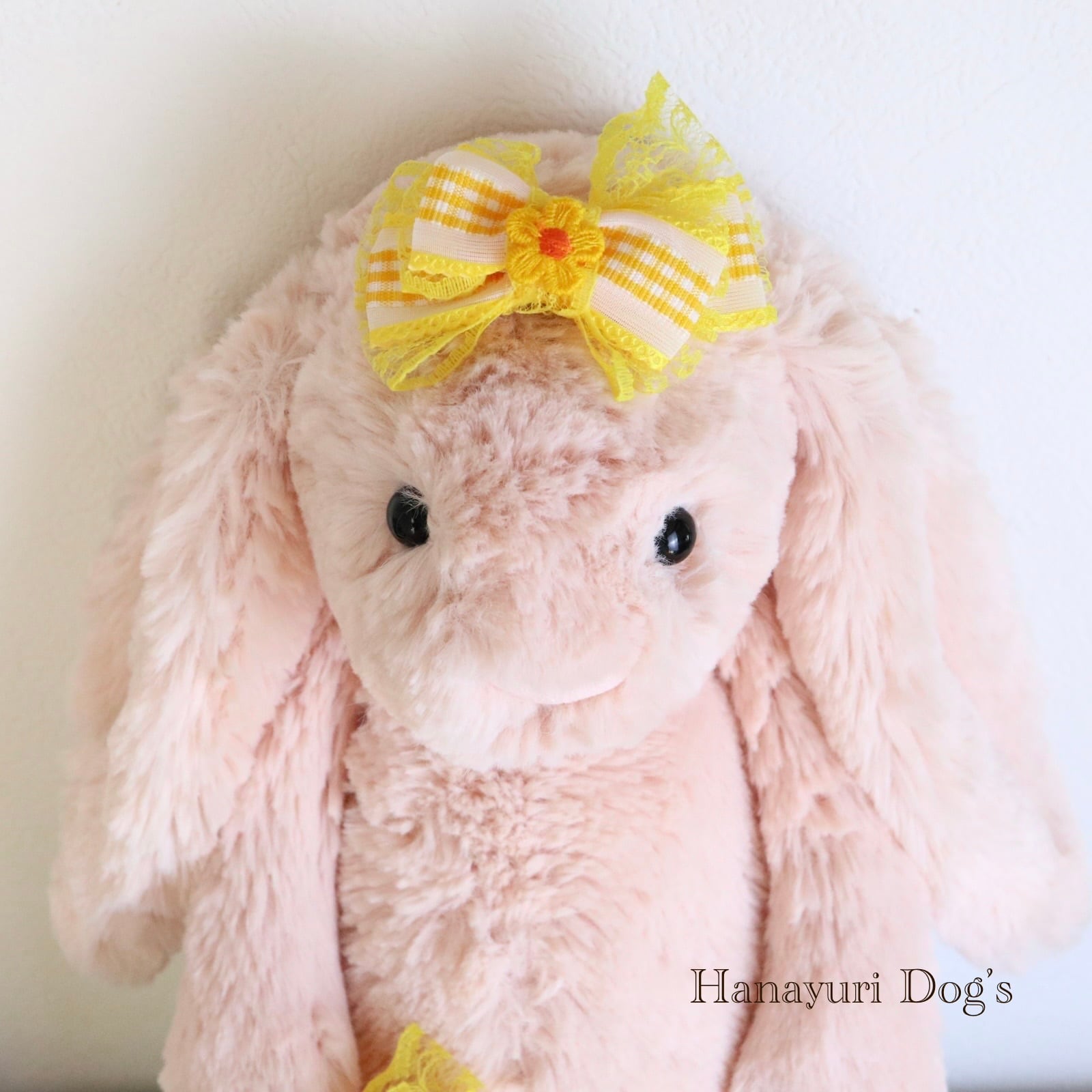 ギンガムチェック イエロー 花 犬バレッタ キッズ・子供リボン ペット ぬいぐるみ ヘアアクセサリー 髪飾り 普段着 うちの子記念日 誕生日 プレゼント オフ会 イベント 撮影