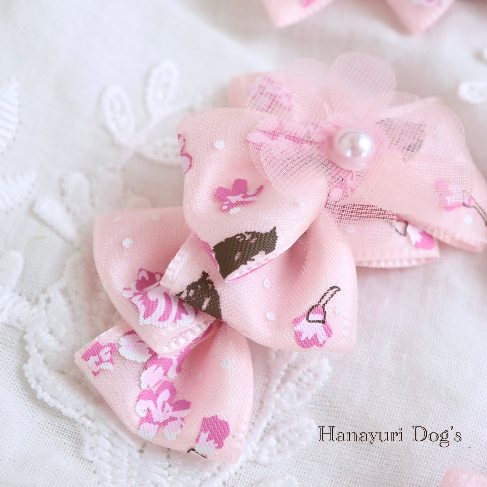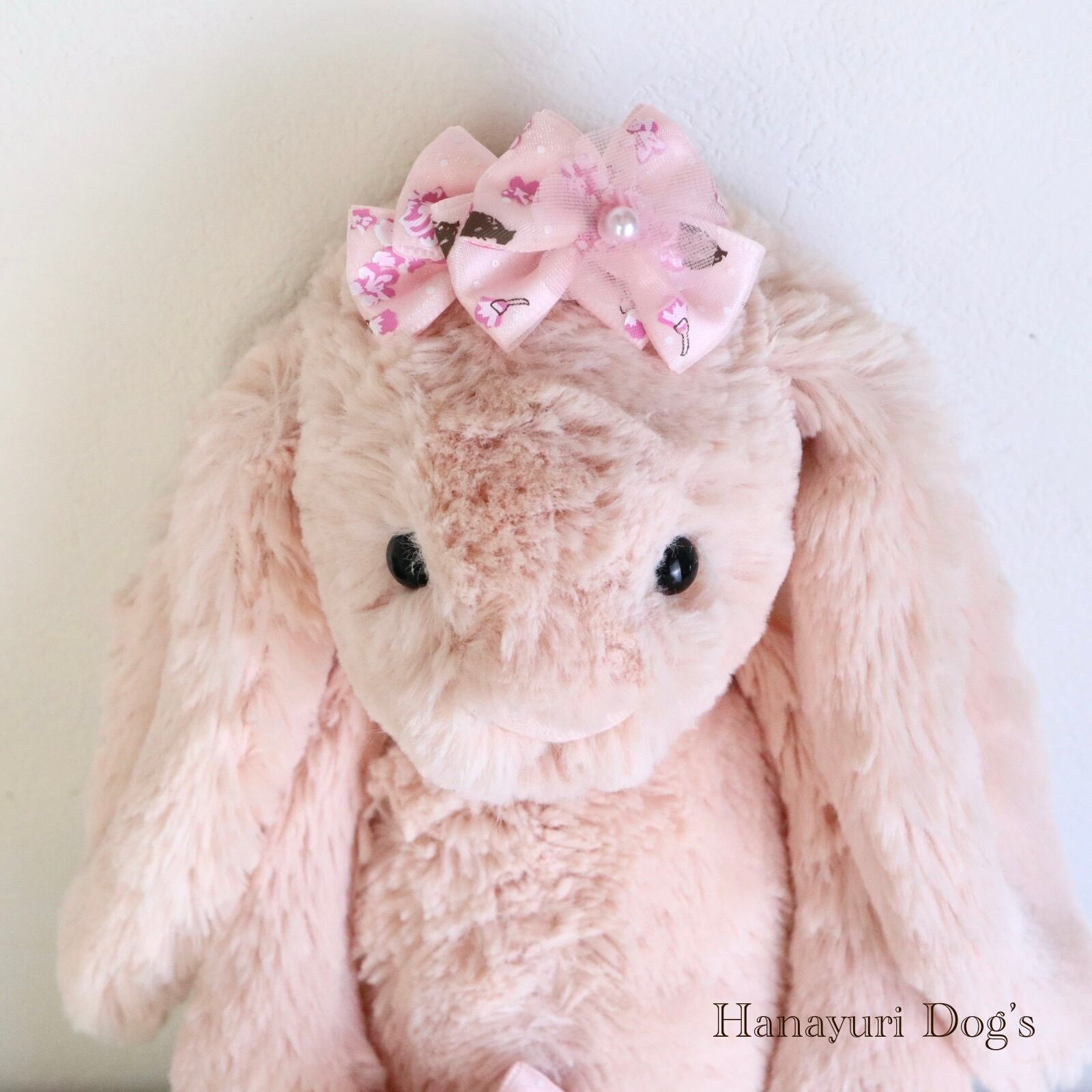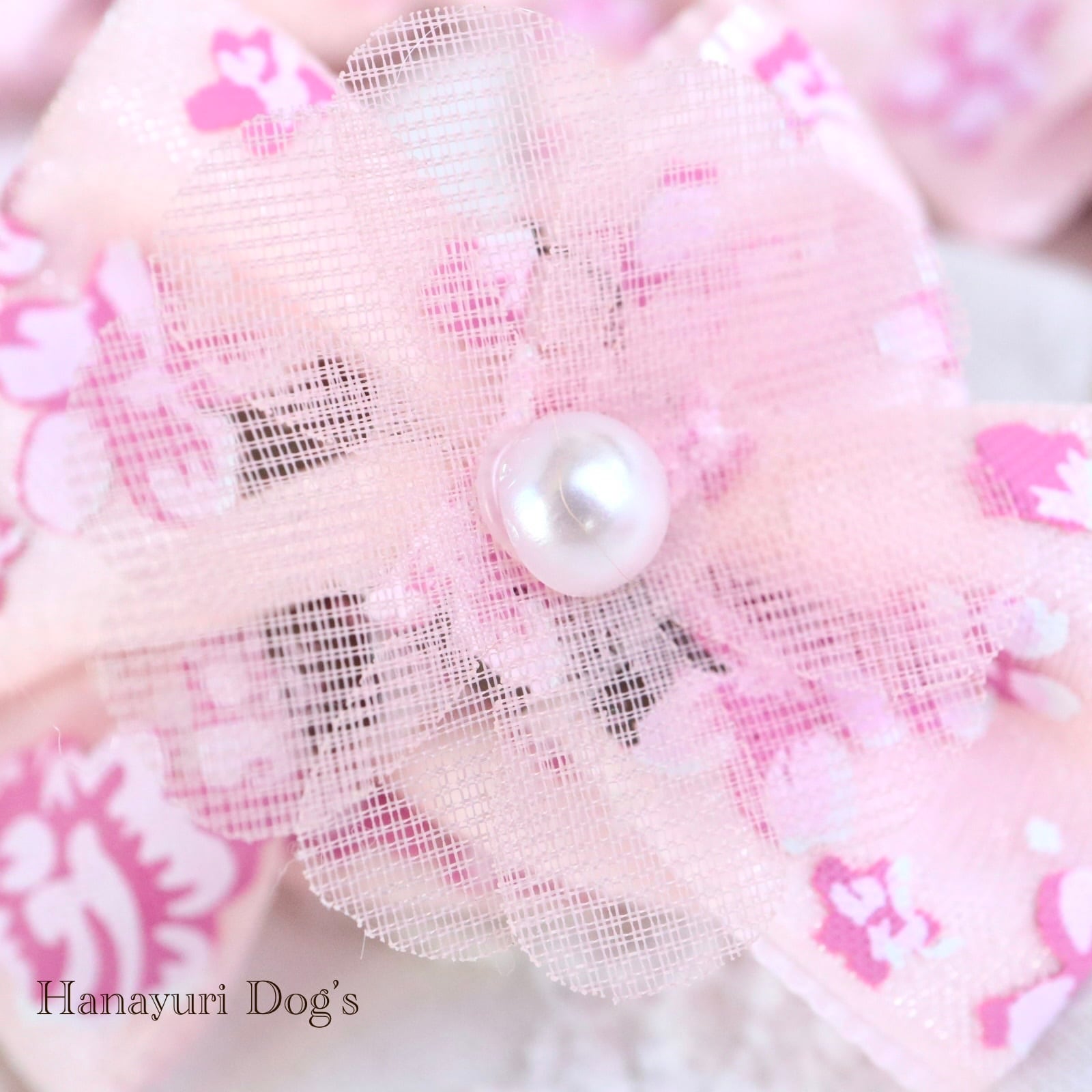さくら桜 チュールの花 和風 ピンク 花 犬バレッタ キッズ・子供リボン ペット ぬいぐるみ ヘアアクセサリー 髪飾り 普段着 うちの子記念日 誕生日 プレゼント オフ会 イベント 撮影