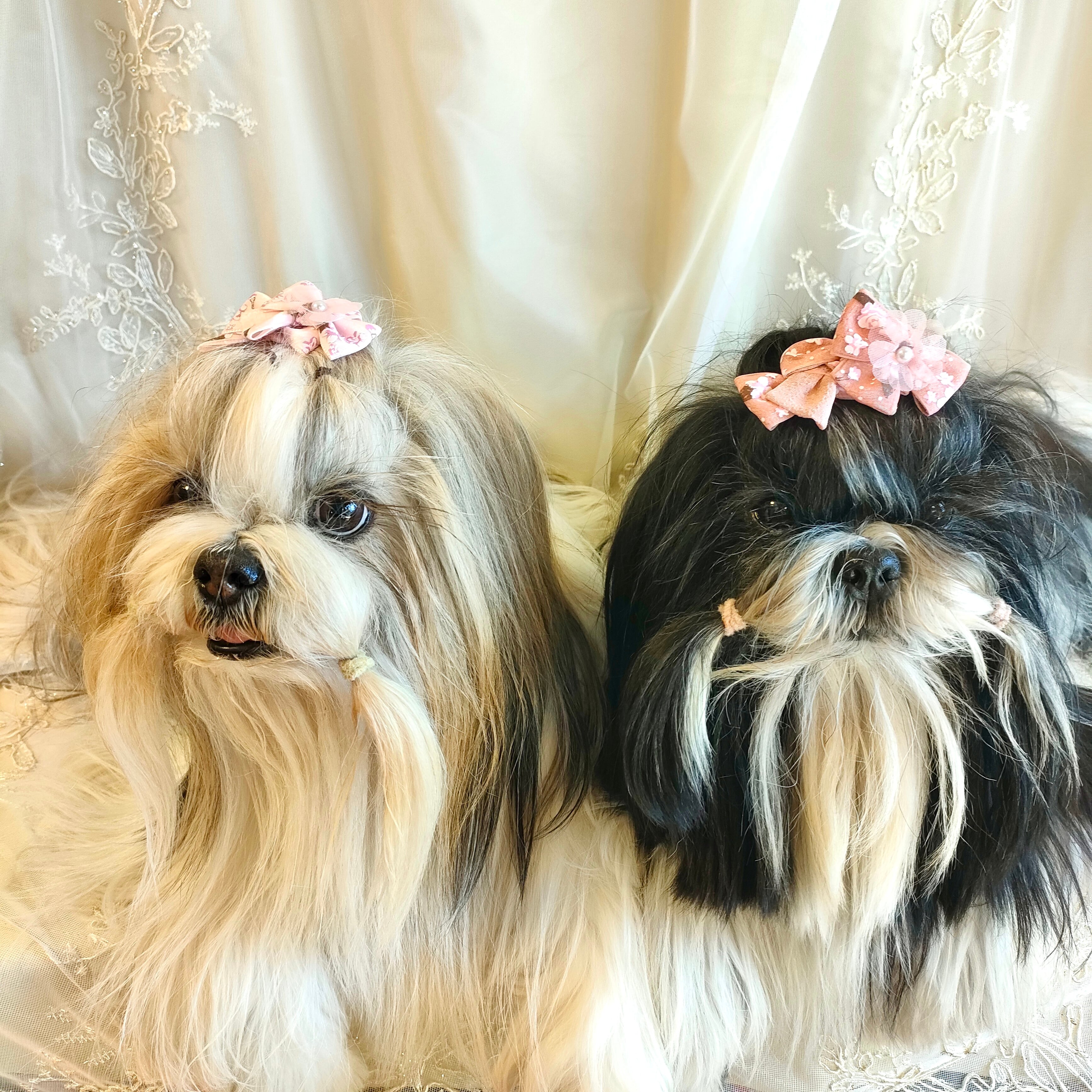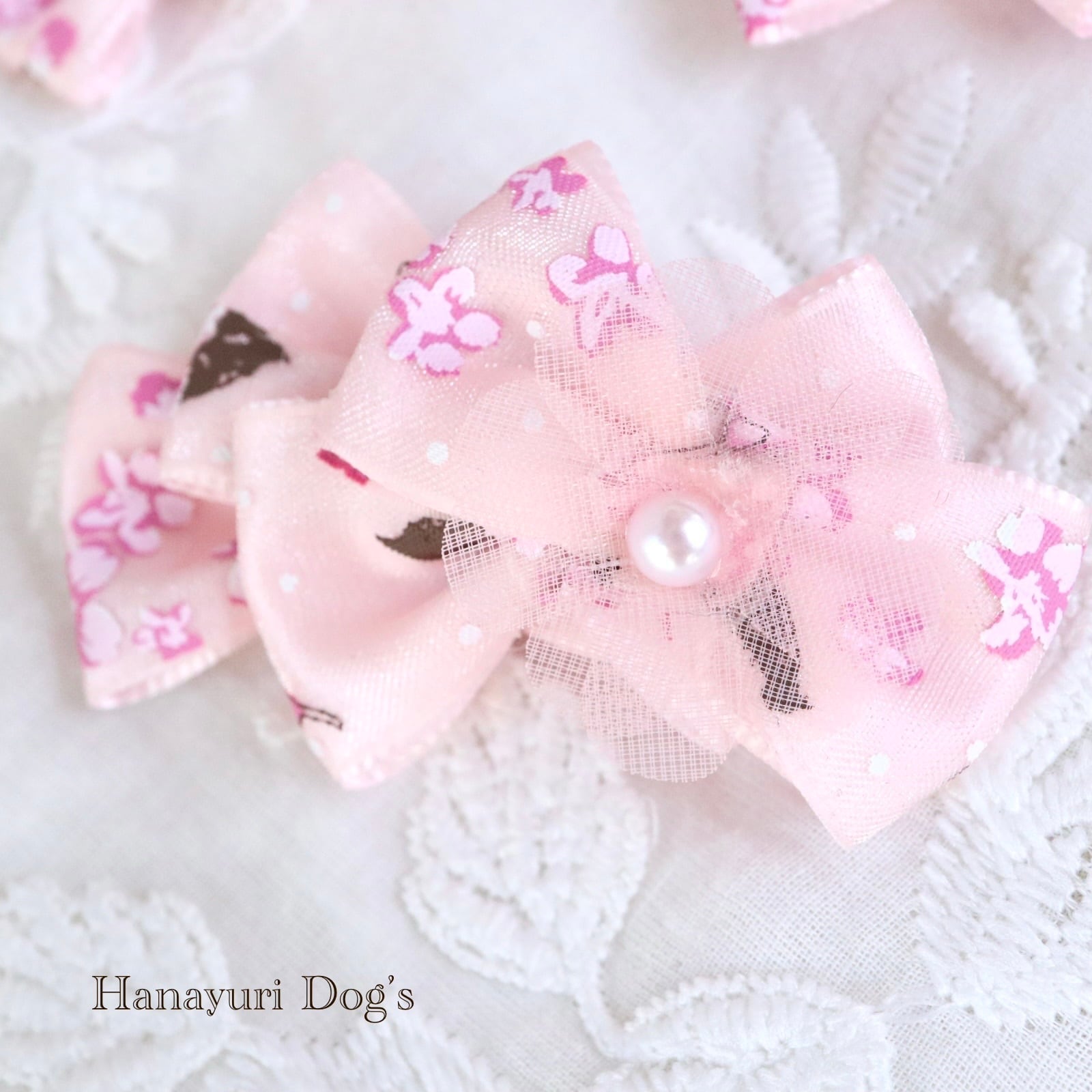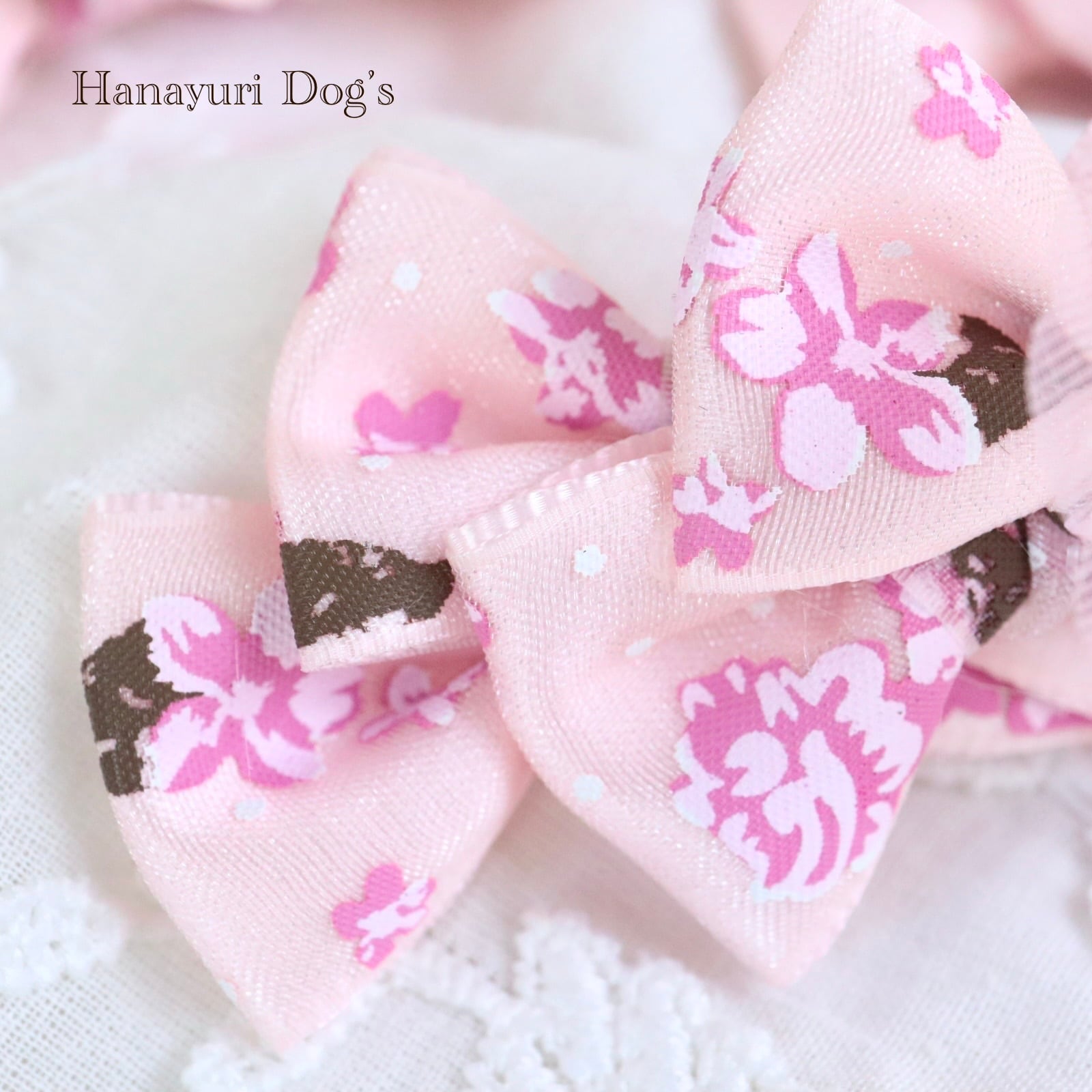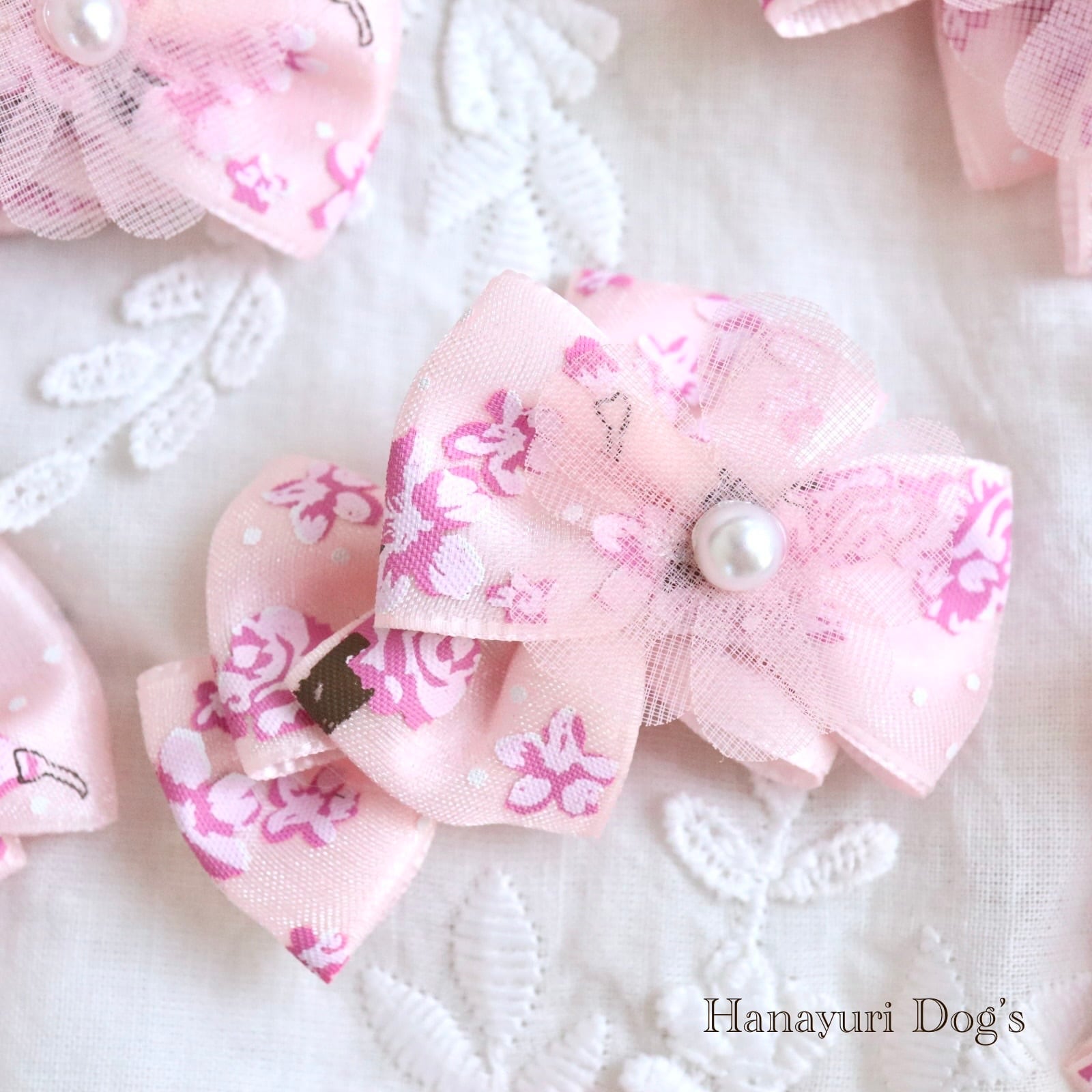 さくら桜 チュールの花 和風 ピンク 花 犬バレッタ キッズ・子供リボン ペット ぬいぐるみ ヘアアクセサリー 髪飾り 普段着 うちの子記念日 誕生日 プレゼント オフ会 イベント 撮影